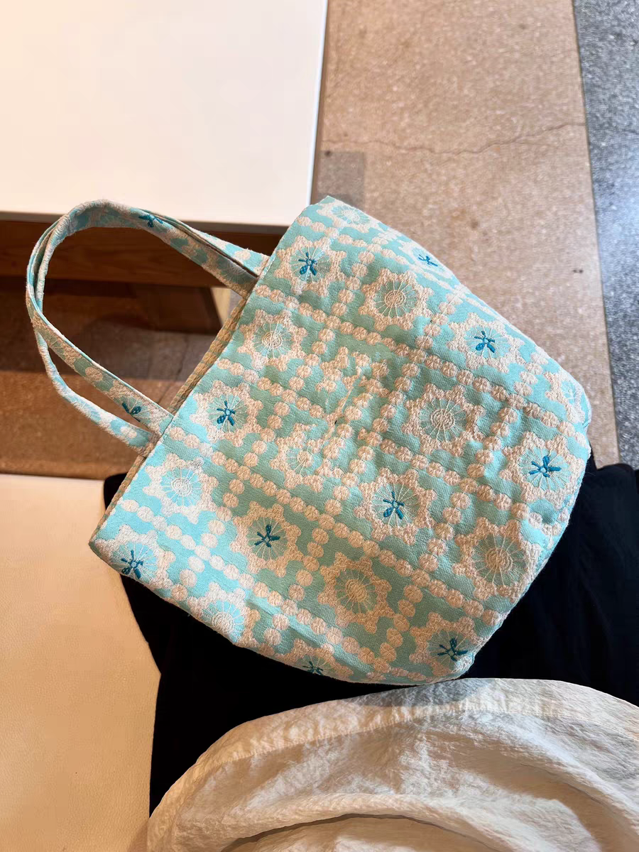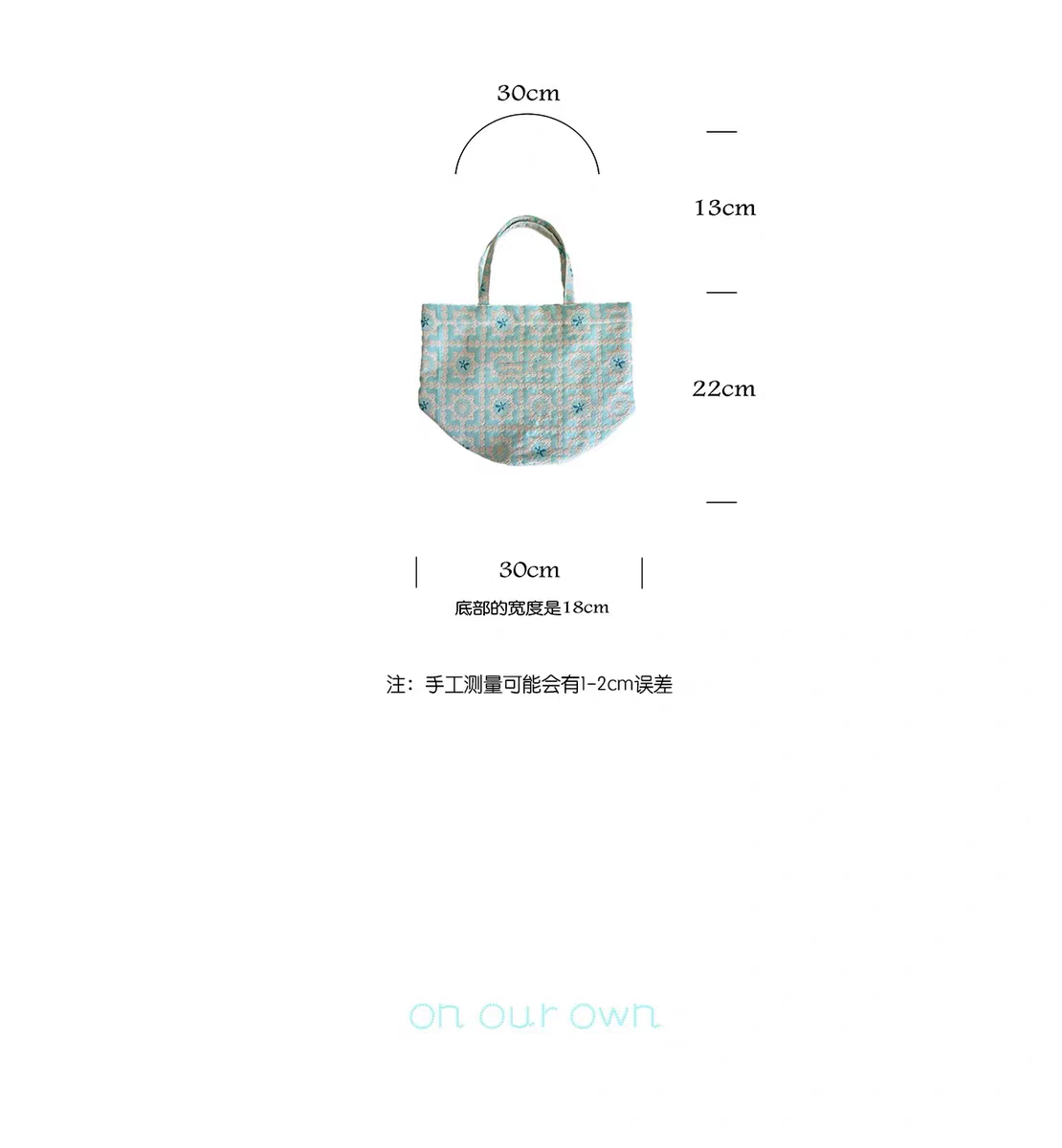Ouonromn Original Japanese Glacier Sky Blue Jacquard Bucket Handbag, Tote Bag, Hand-Carrying Cloth Bag