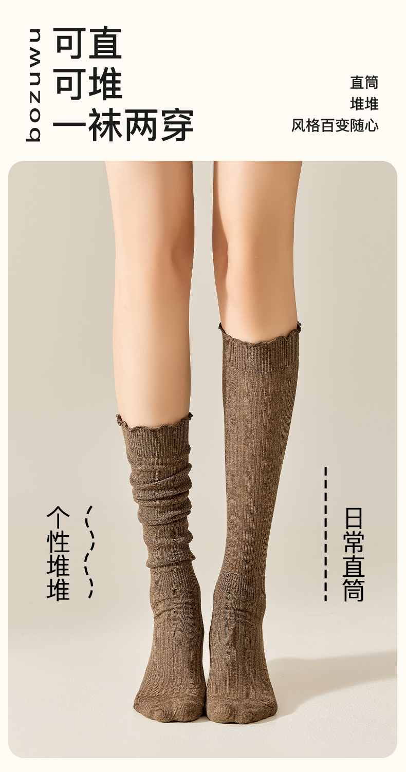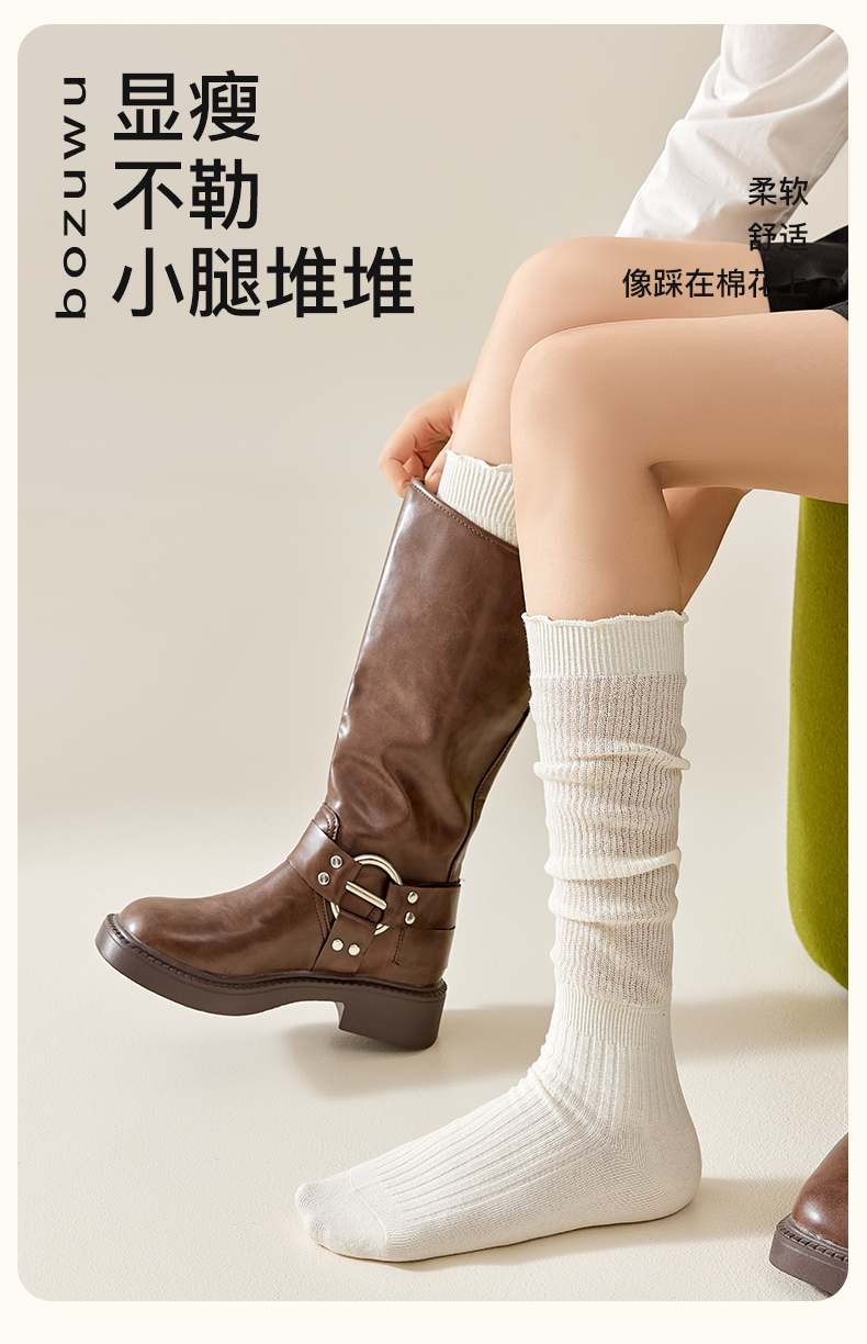 Stacked Socks, Long Socks for Women, Long Socks to Match Boots, Calf Socks, Jk White Pure Cotton Boots, Spring and Autumn Wool Cotton Socks