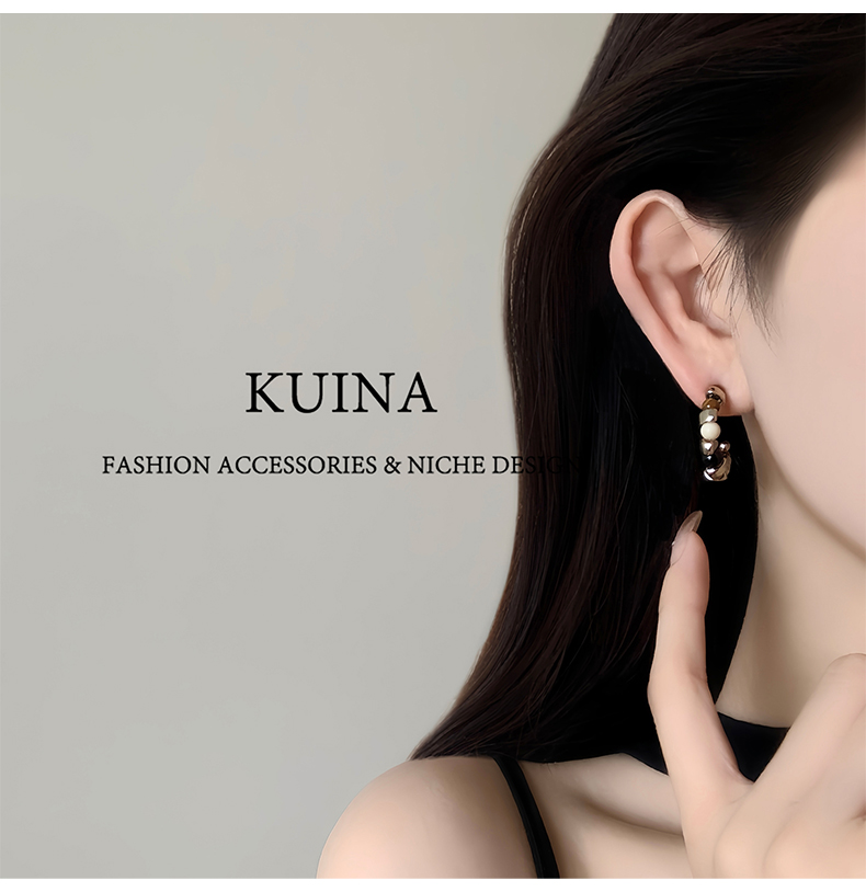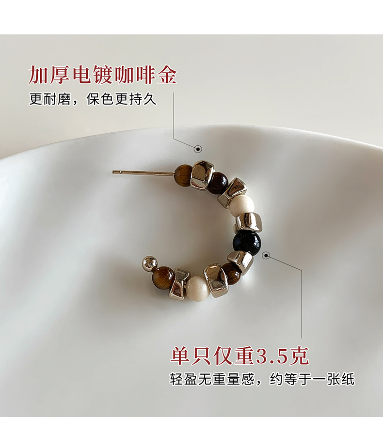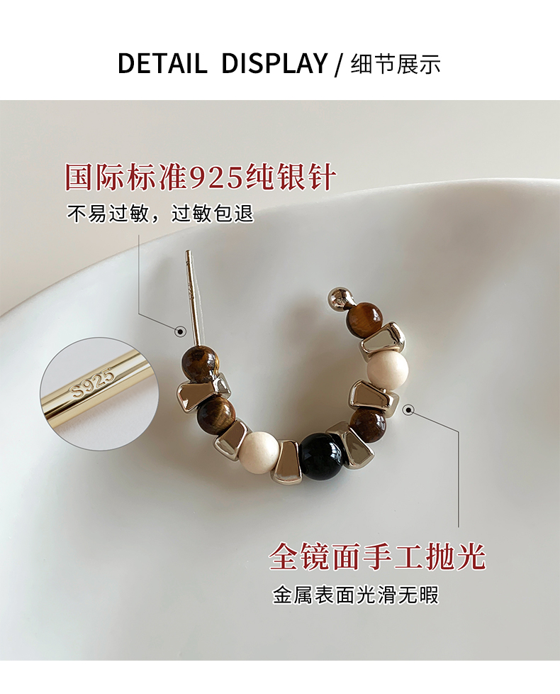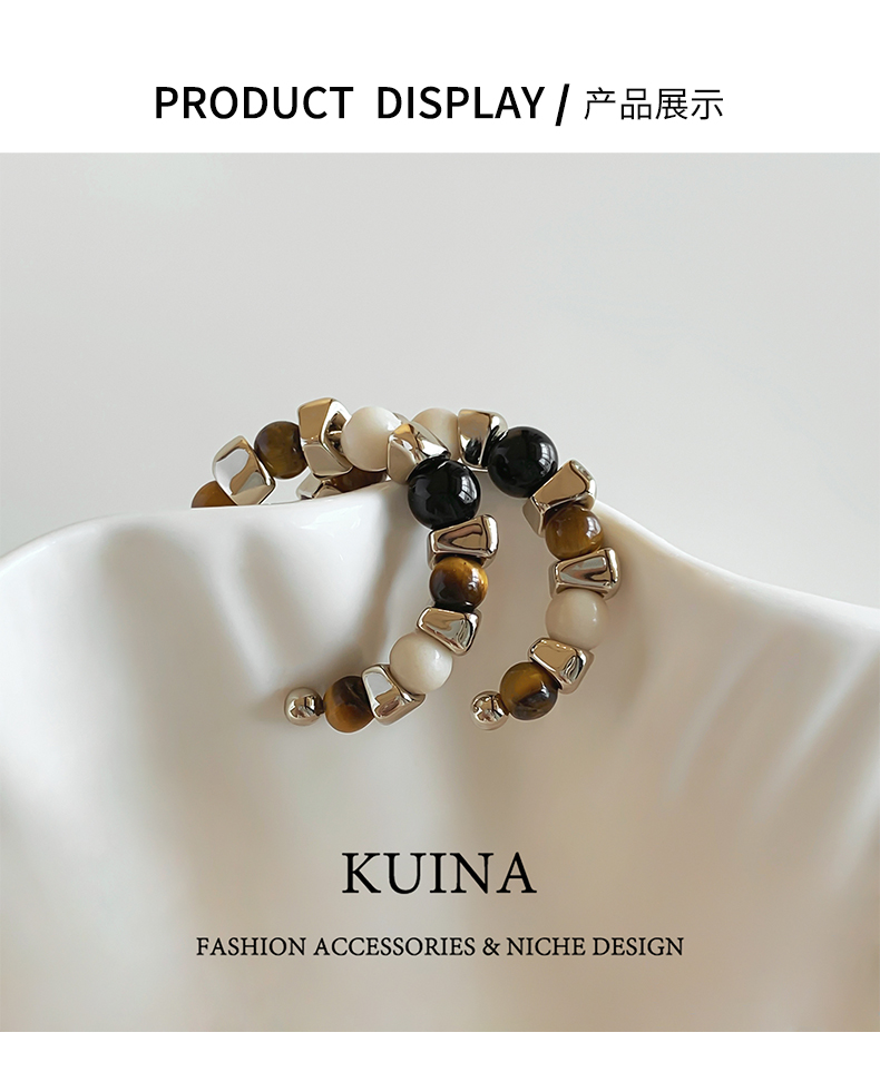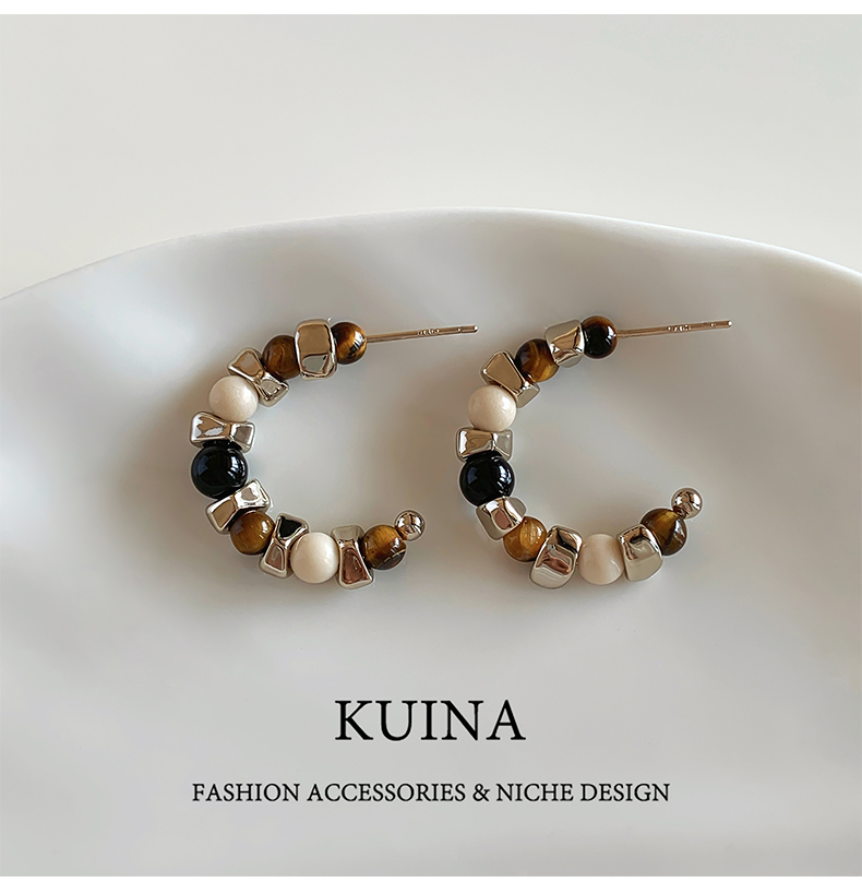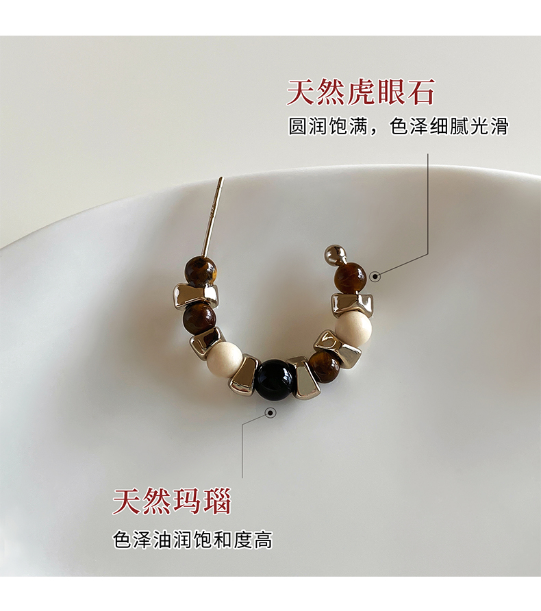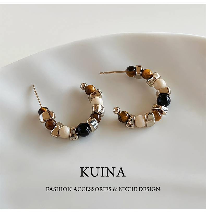 Niche High-End Natural Tiger Eye Stone Hoop Earrings for Women, French Light Luxury Design Earrings