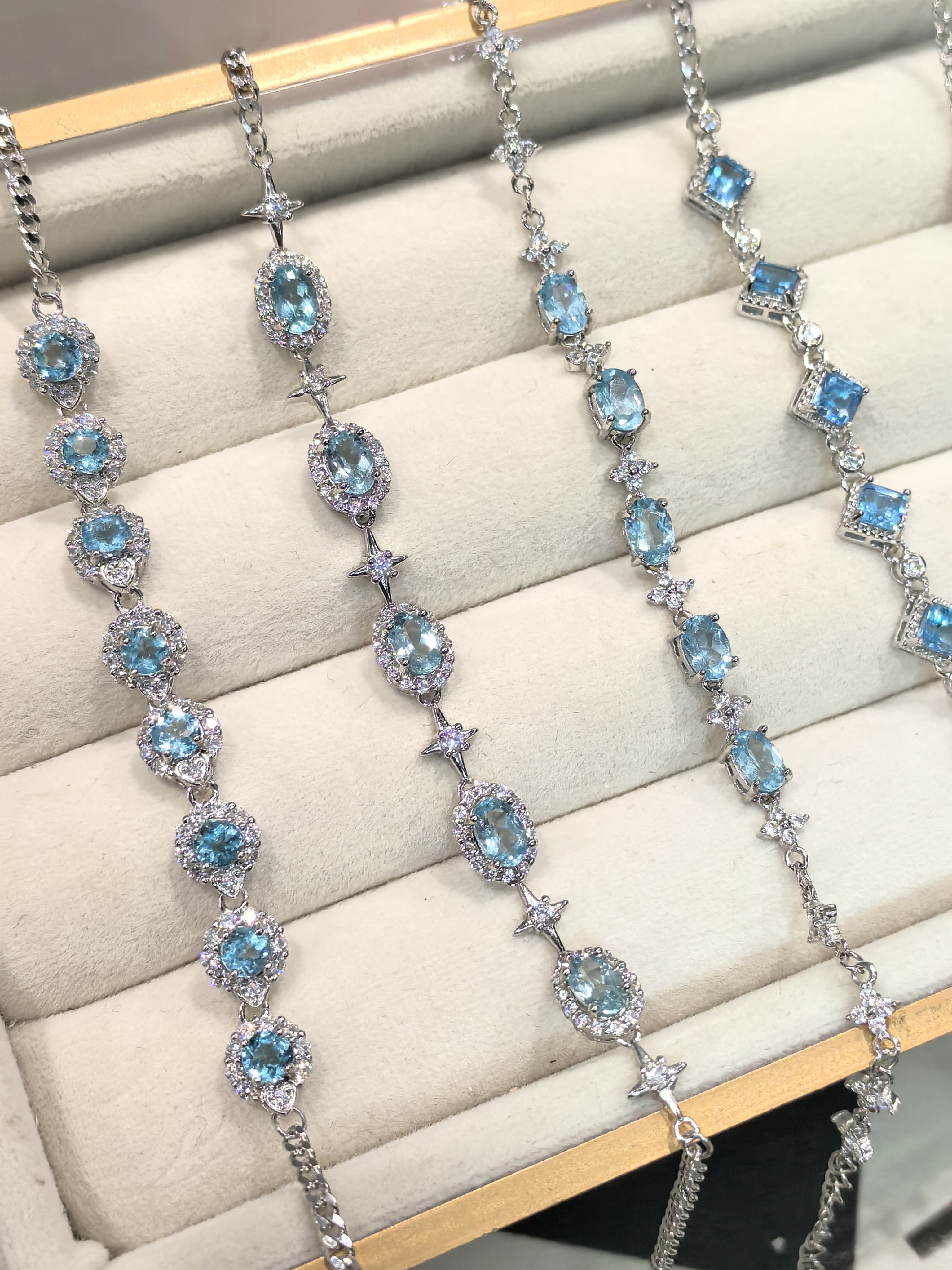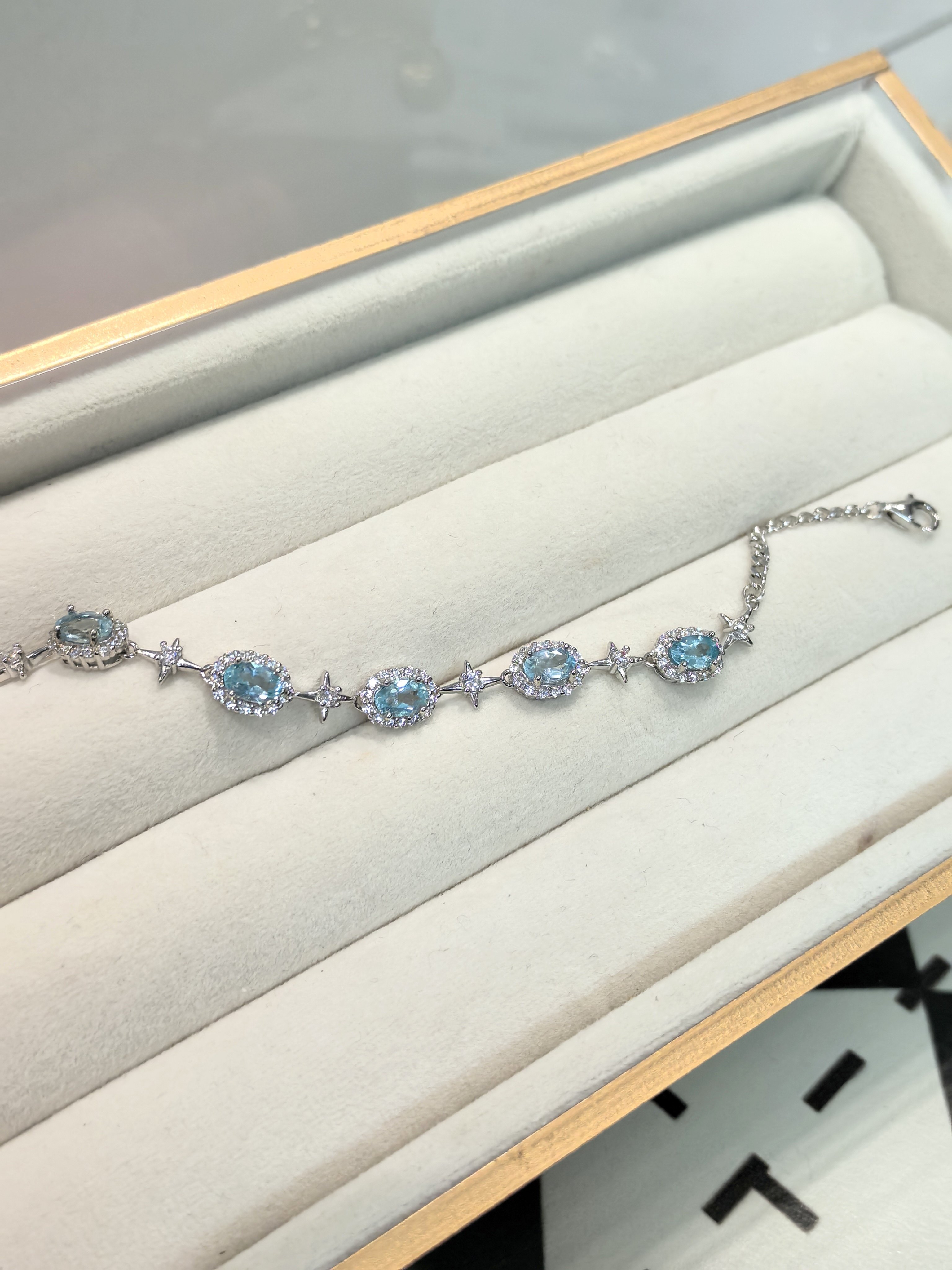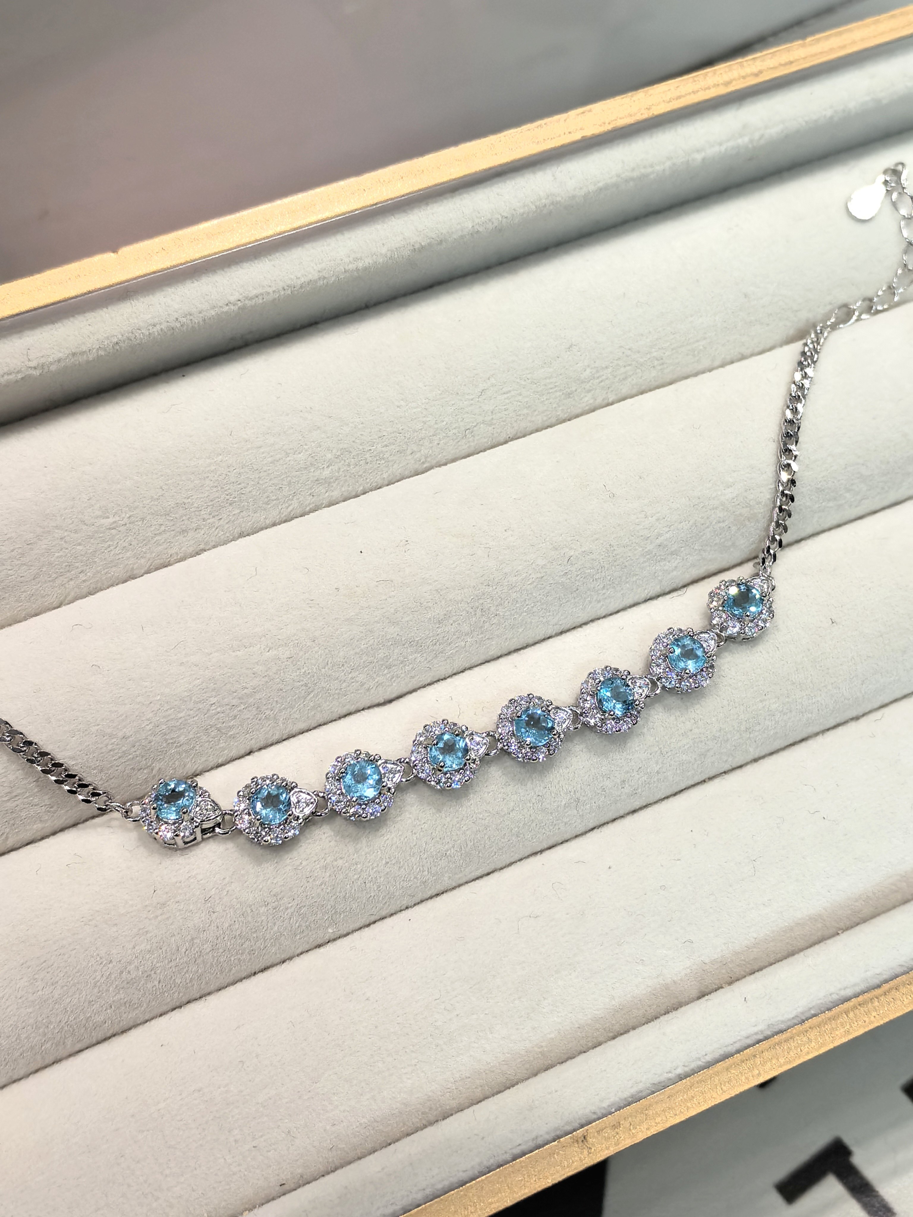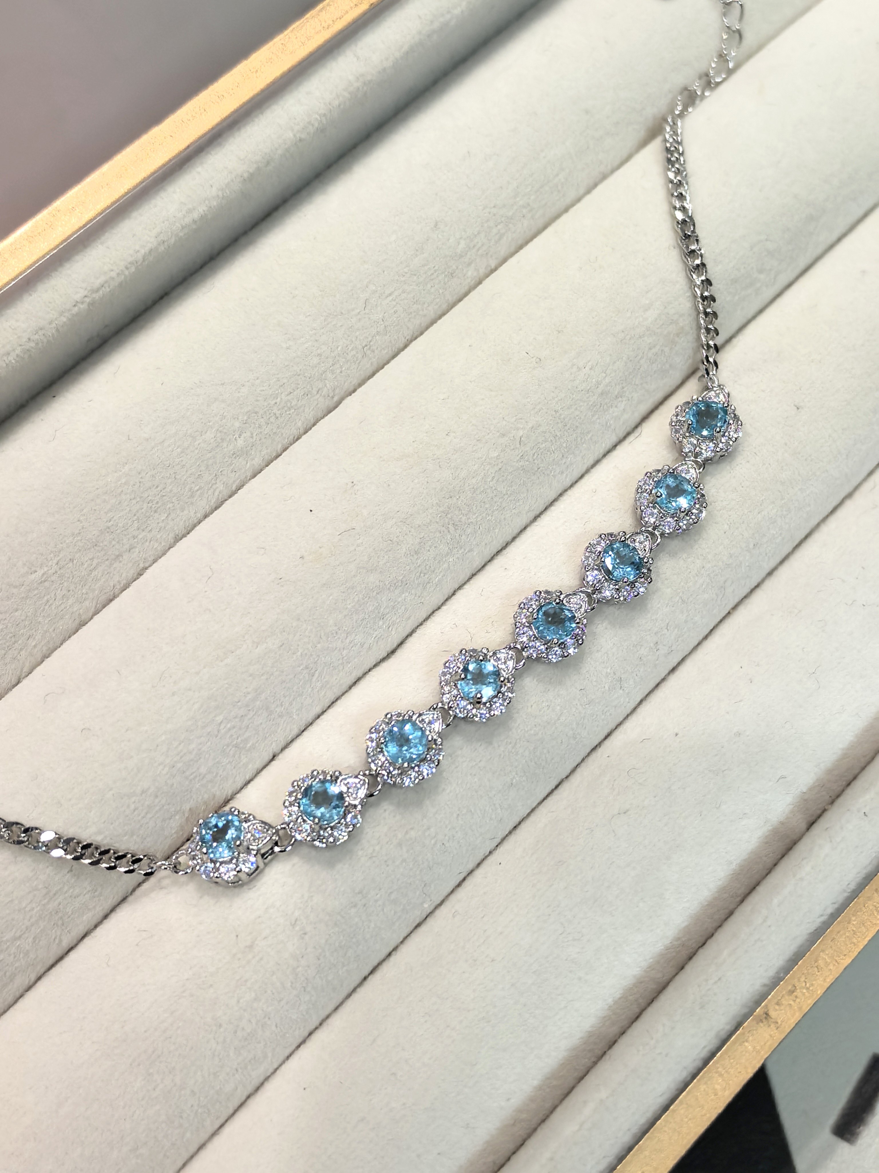 Blue Phosphor Bracelet, Tanzanite Bracelet, Topaz Aquamarine Bracelet, Sterling Silver Light Luxury Full Diamond Natural Gemstone Bracelet
