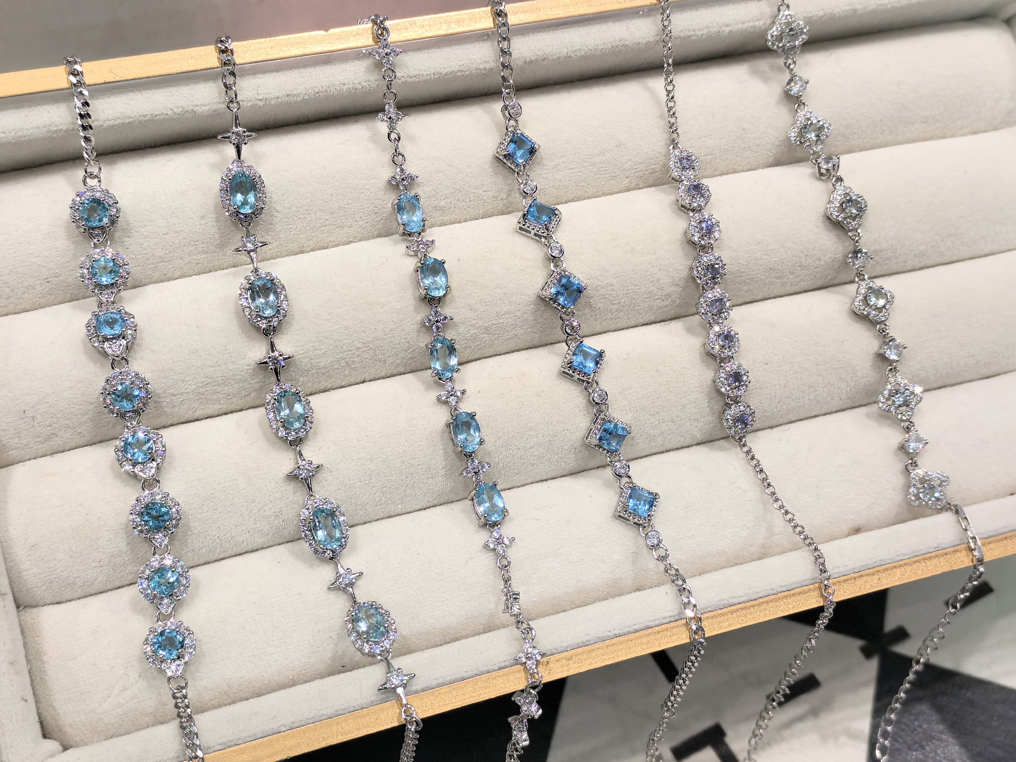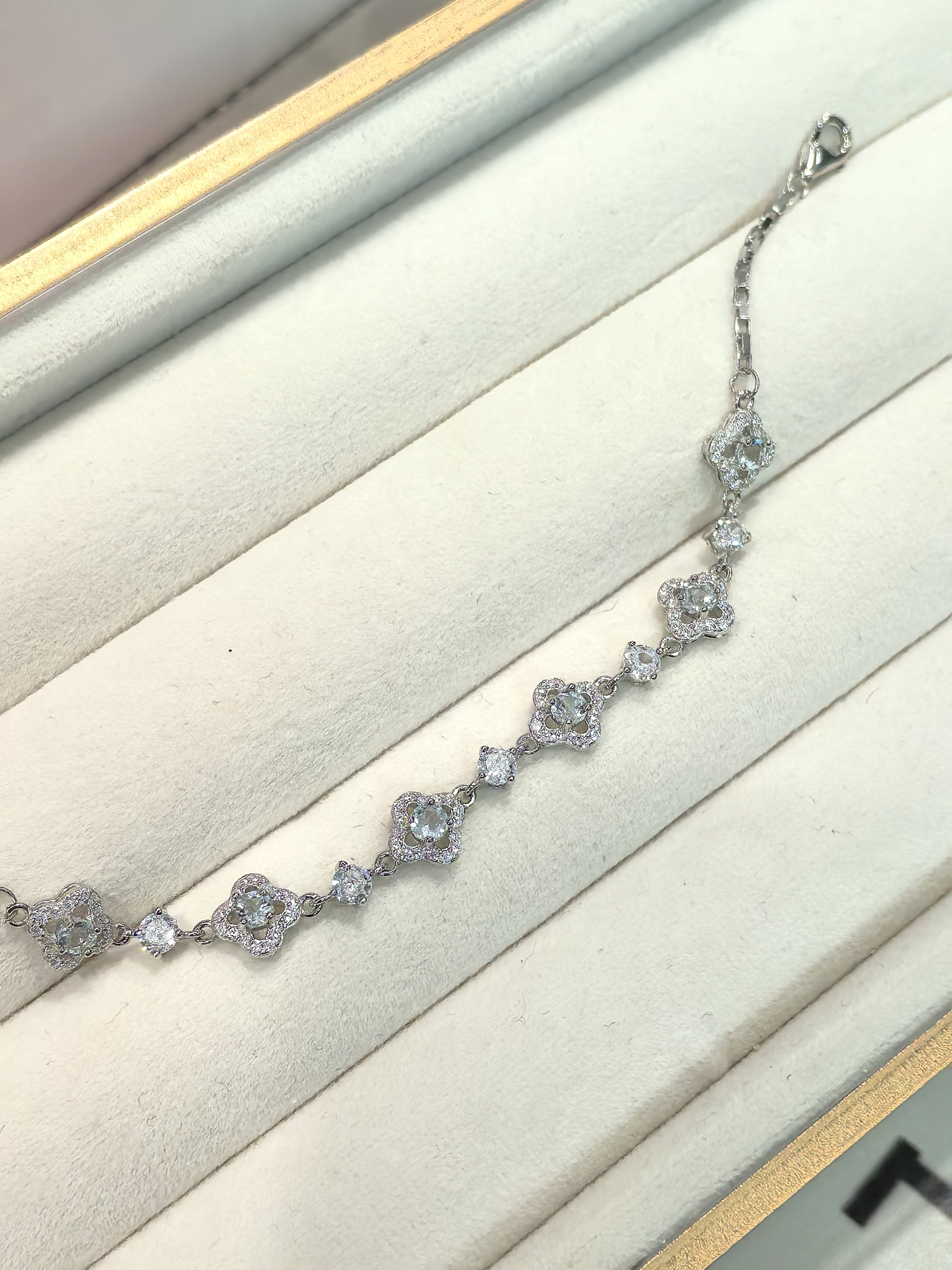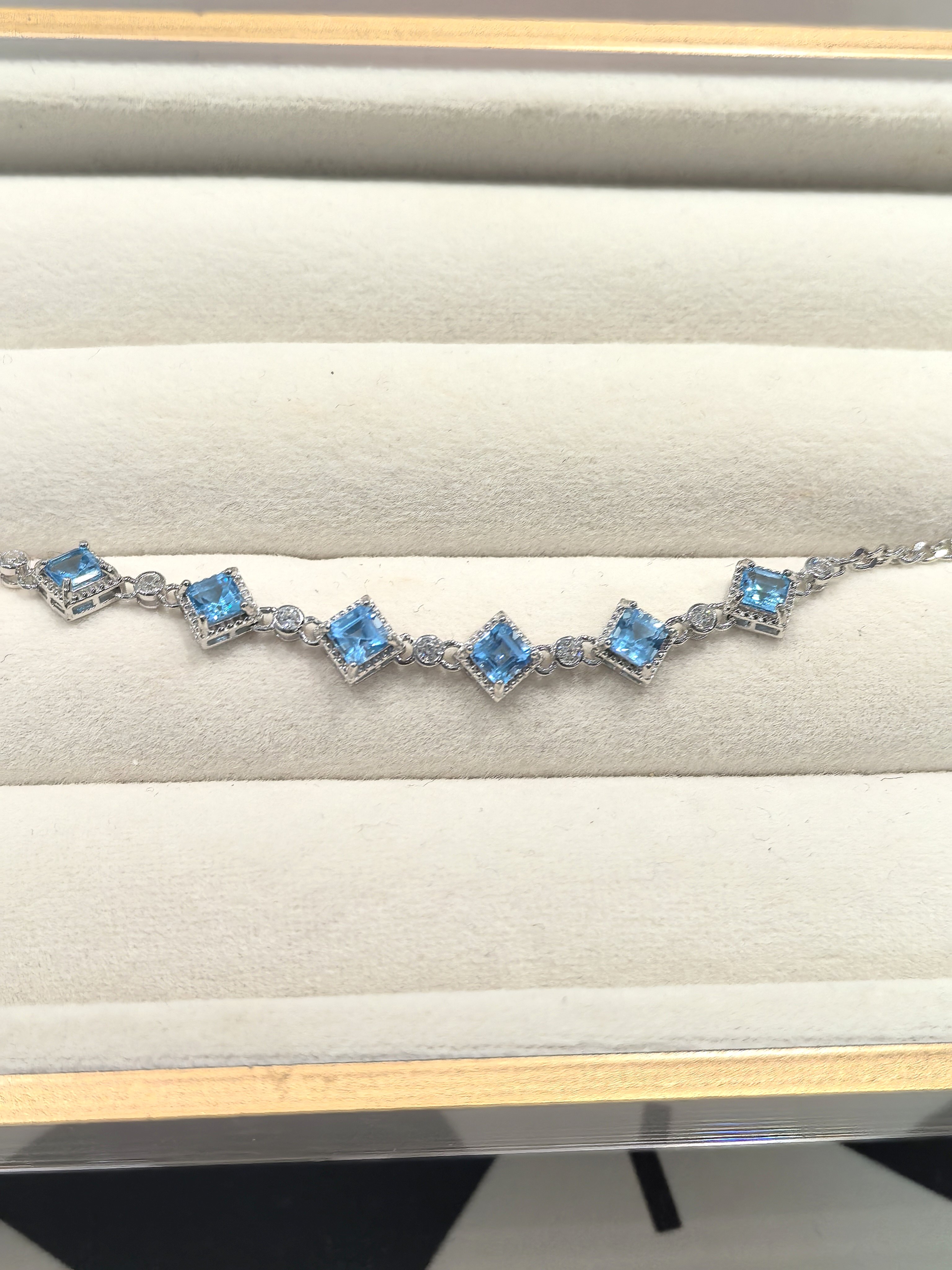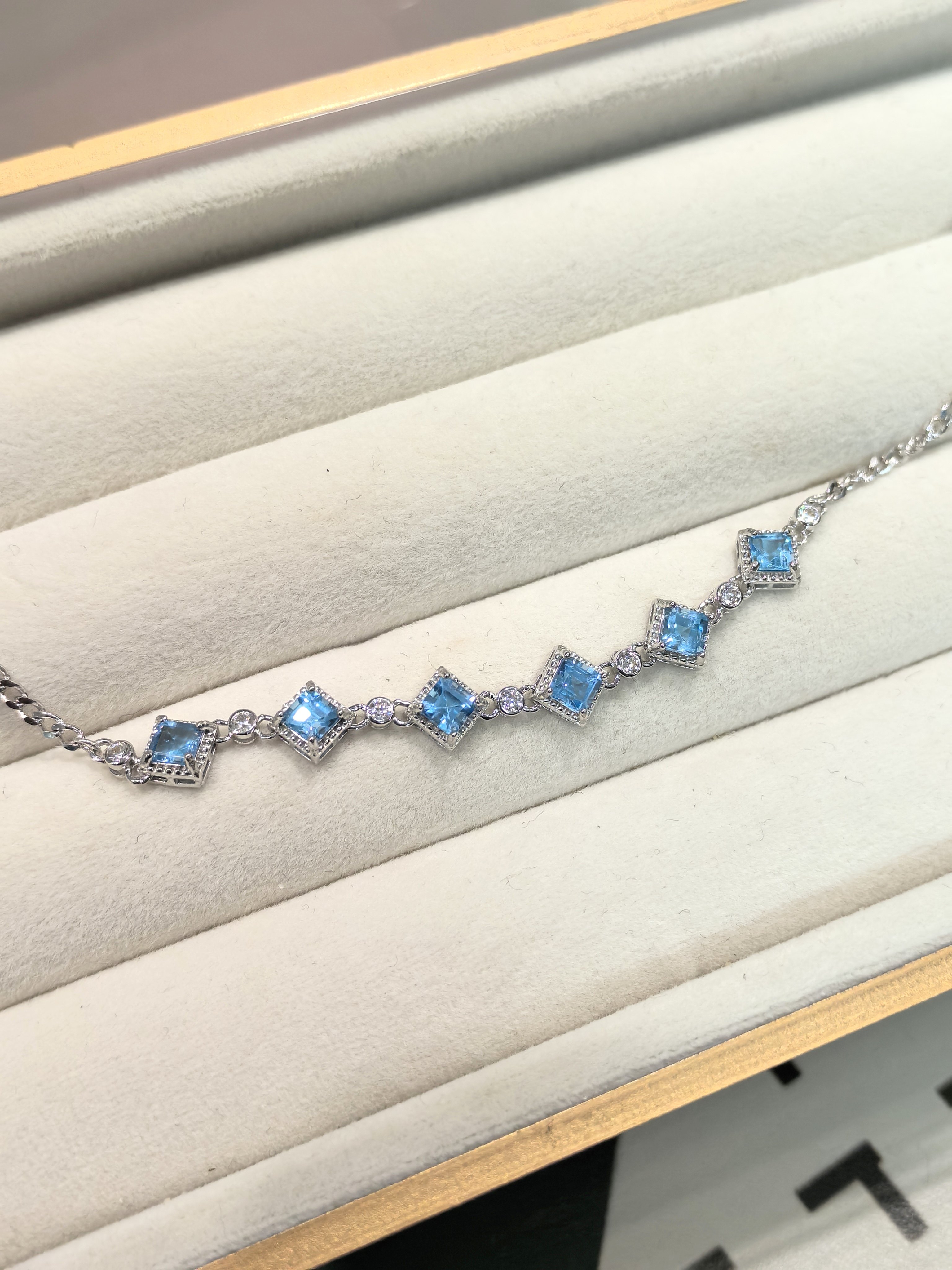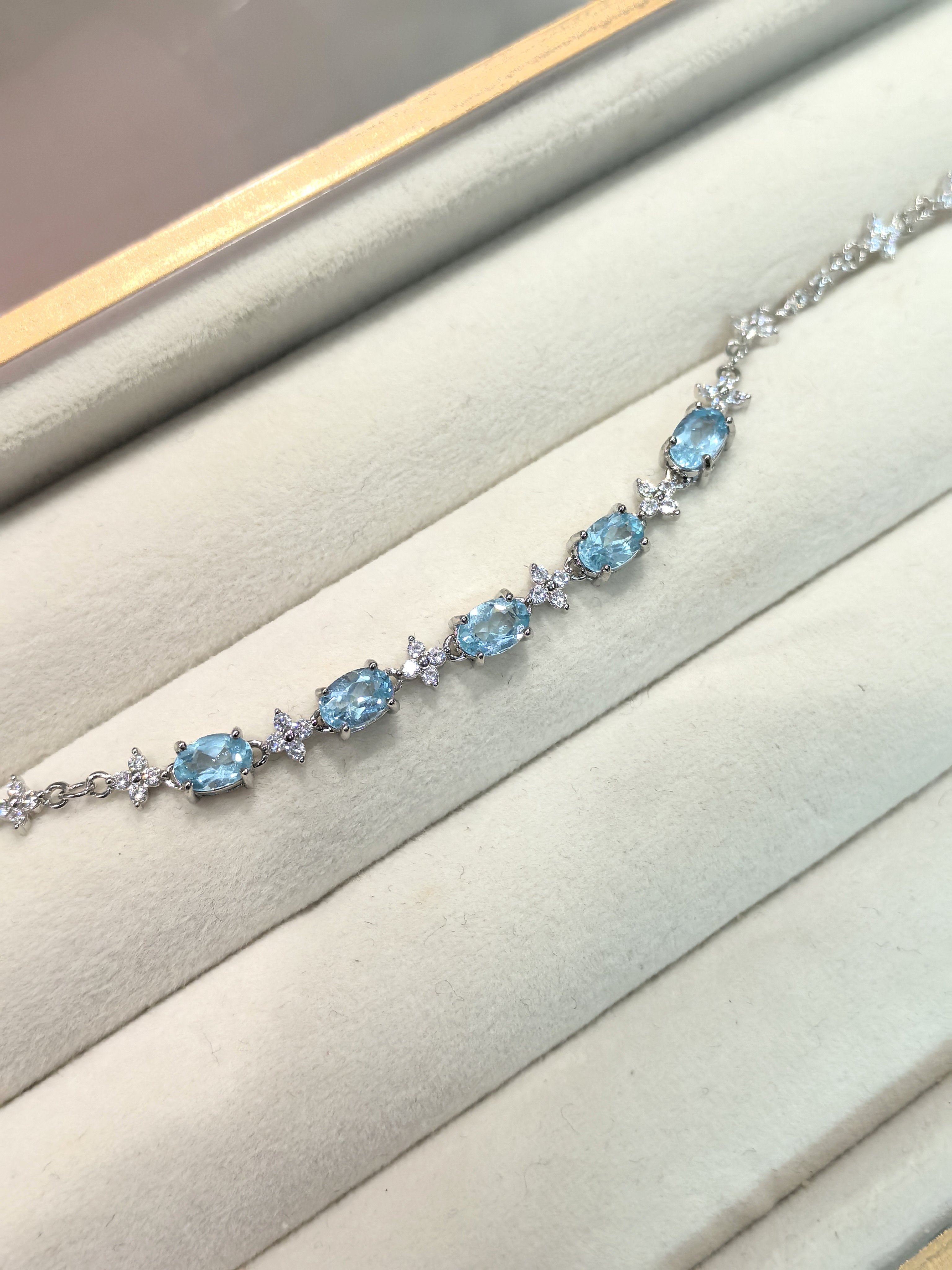 Blue Phosphor Bracelet, Tanzanite Bracelet, Topaz Aquamarine Bracelet, Sterling Silver Light Luxury Full Diamond Natural Gemstone Bracelet