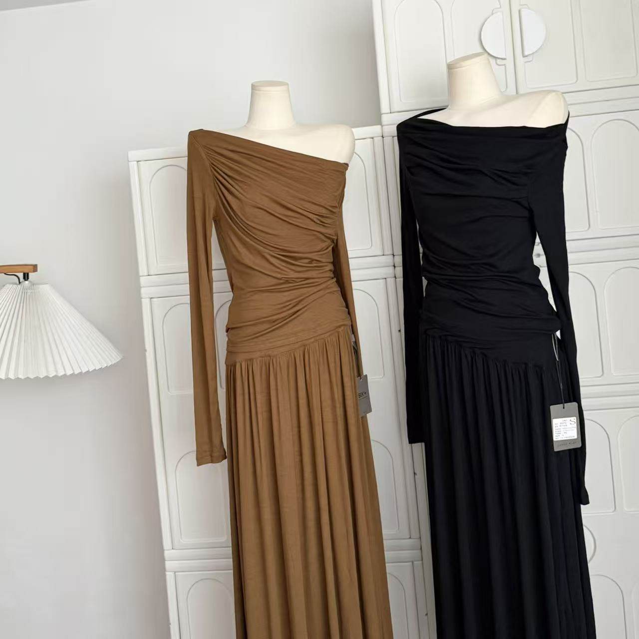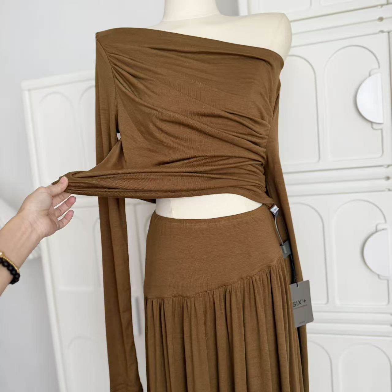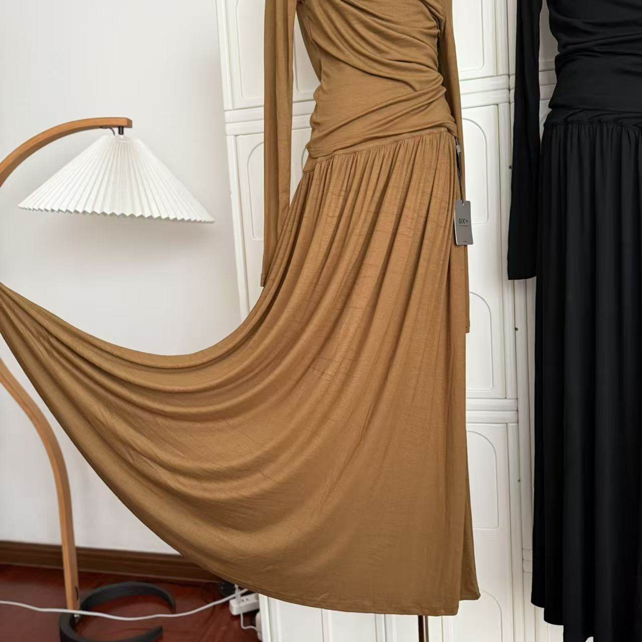 Peach LAOSHU - Designed Pleated Long-Sleeved T-Shirt Set, Light and Sophisticated, Niche Atmosphere, Two-Piece Skirt Set