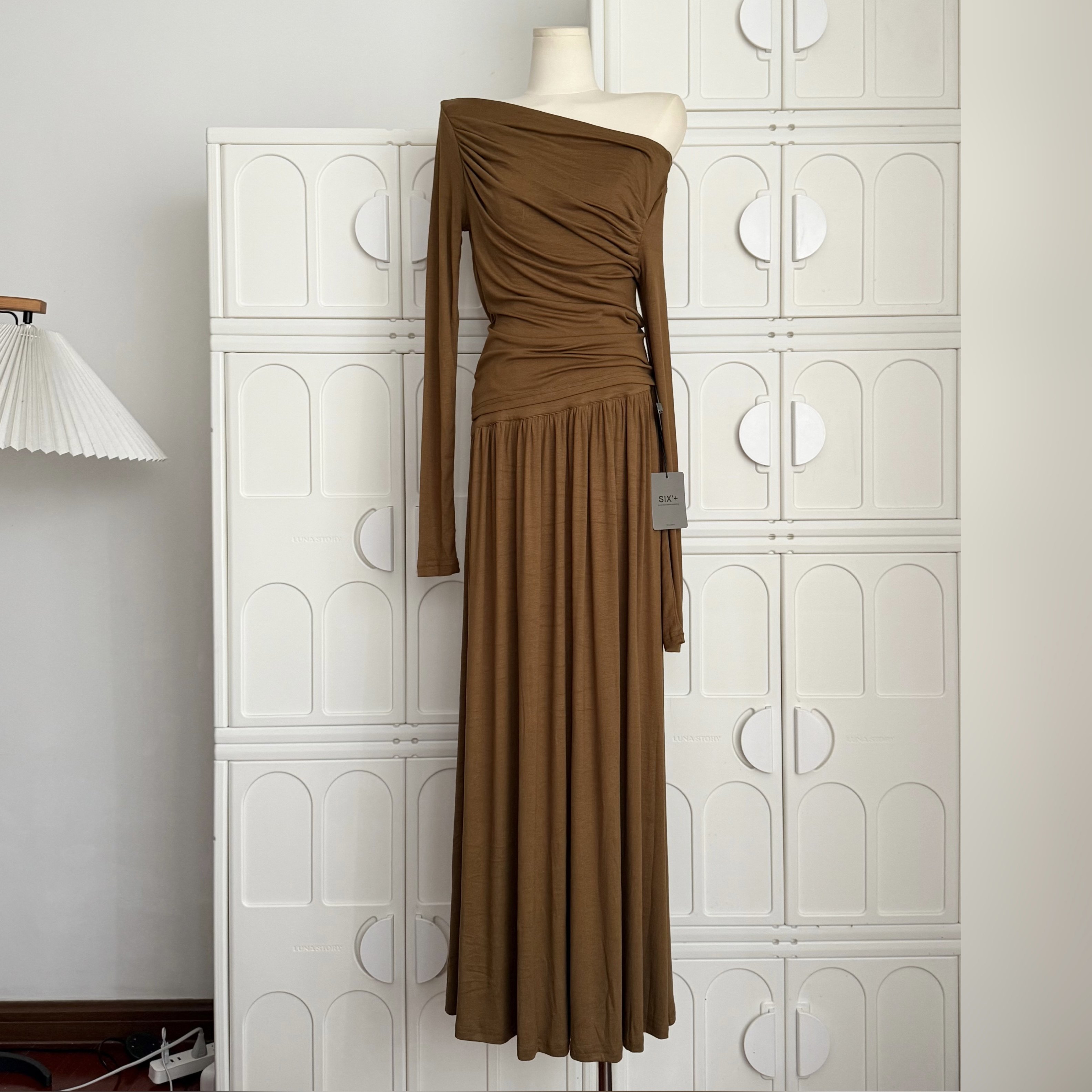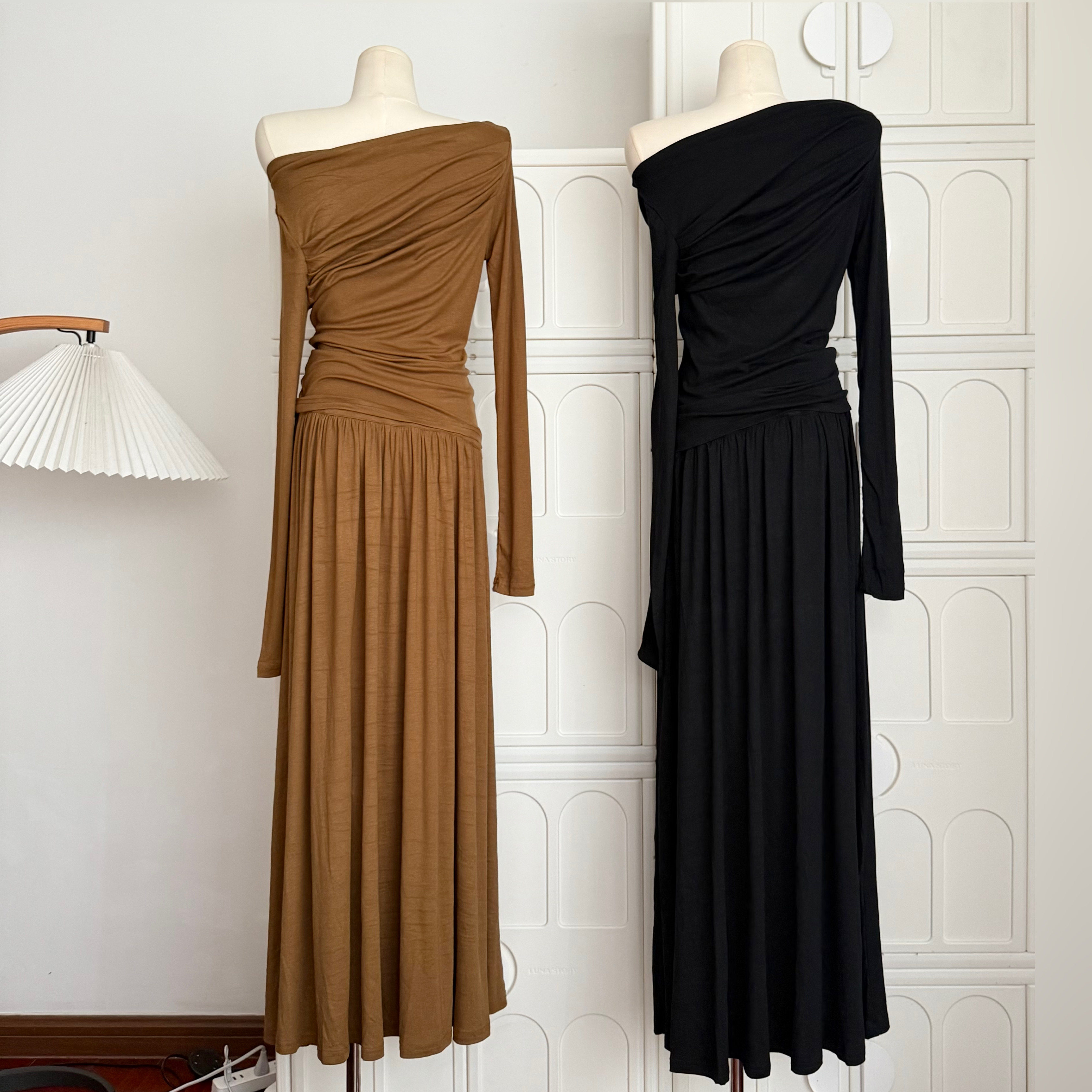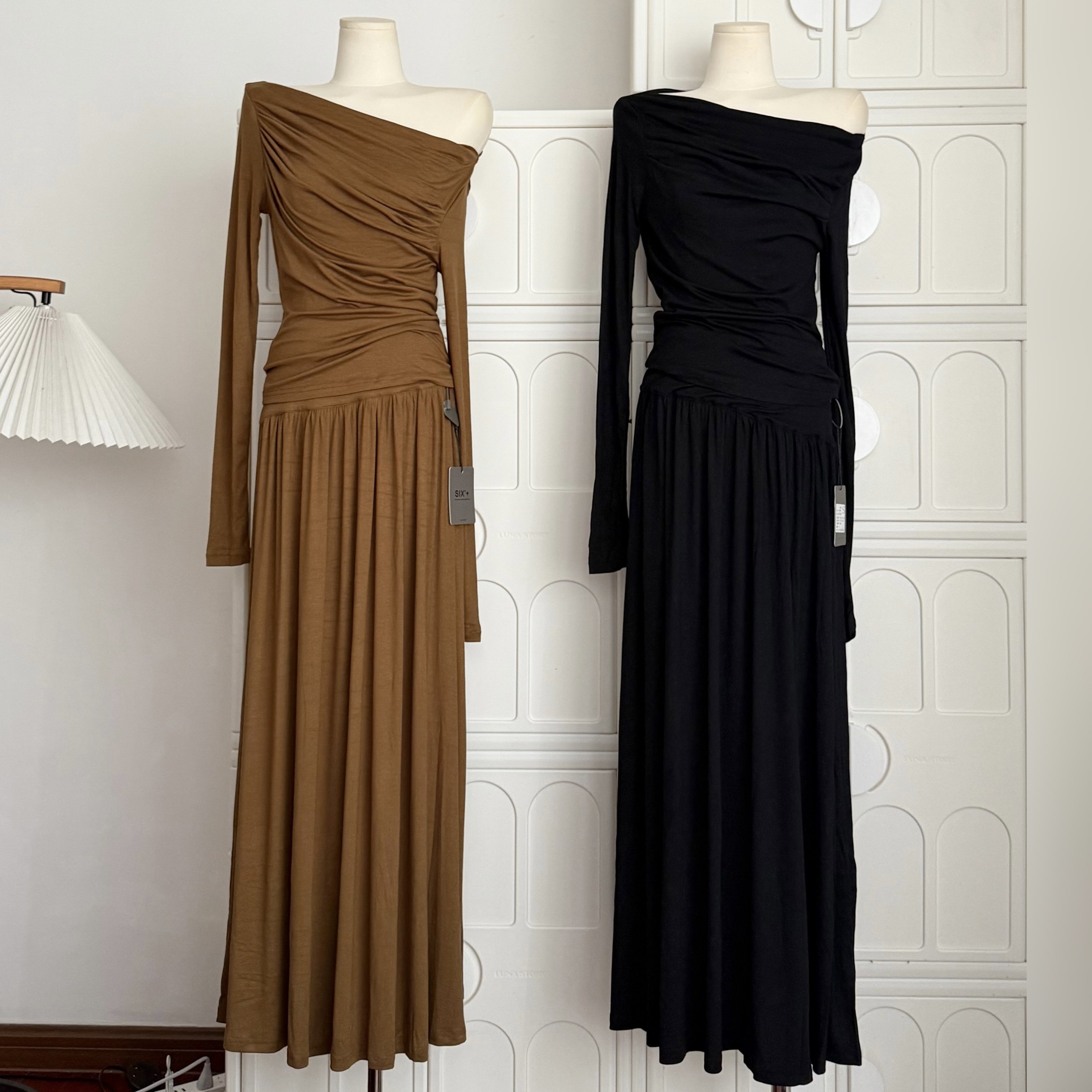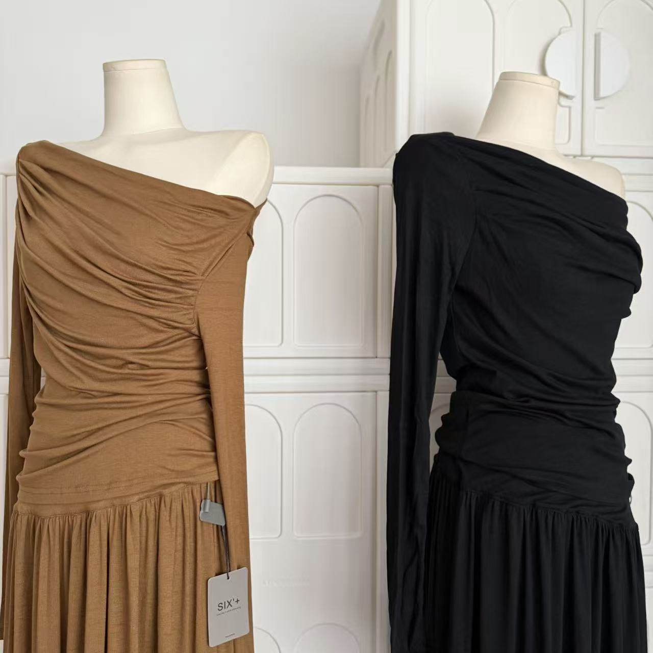Peach LAOSHU - Designed Pleated Long-Sleeved T-Shirt Set, Light and Sophisticated, Niche Atmosphere, Two-Piece Skirt Set