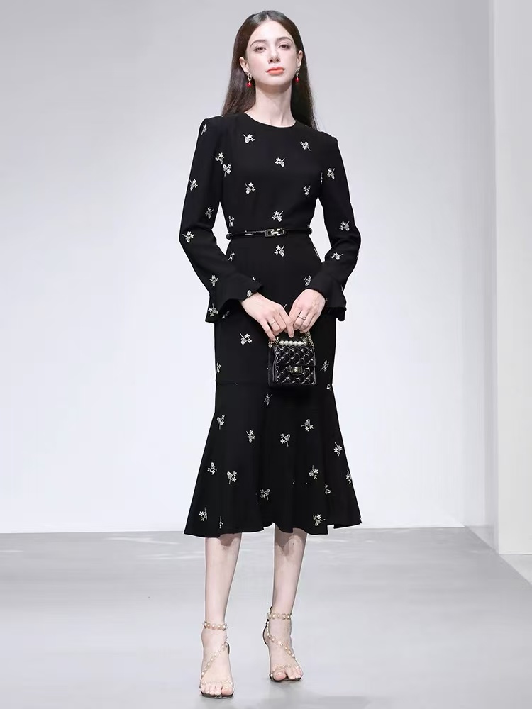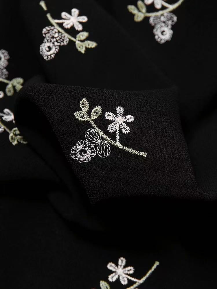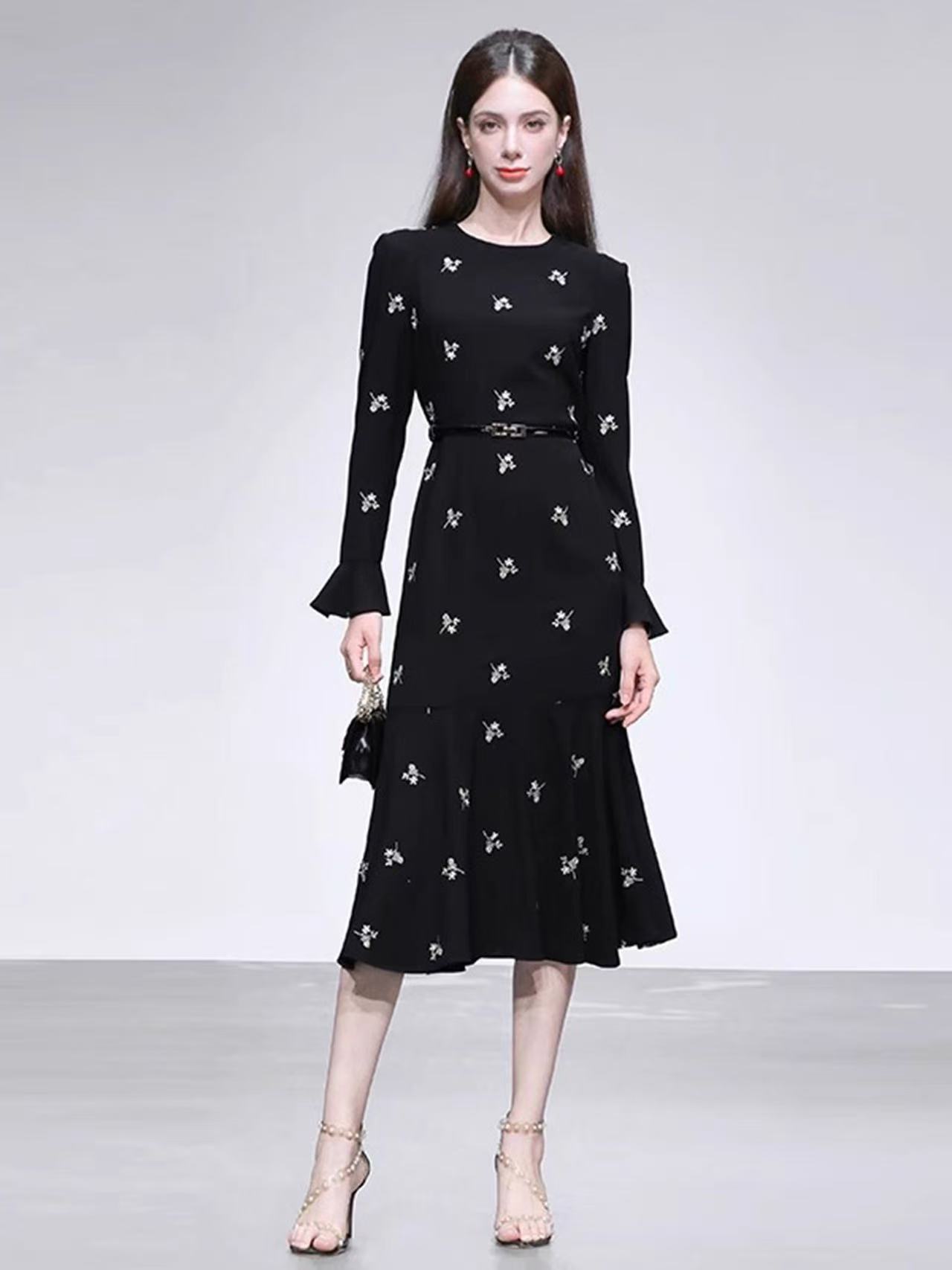 Hanfu, a Traditional Chinese Dress, Has a New Autum Style with a Ladylike Elegant, Round Neck, Long Sleeves, Waist-Cinching, Slimming, Ruffled, Embroidered Dress for Women
