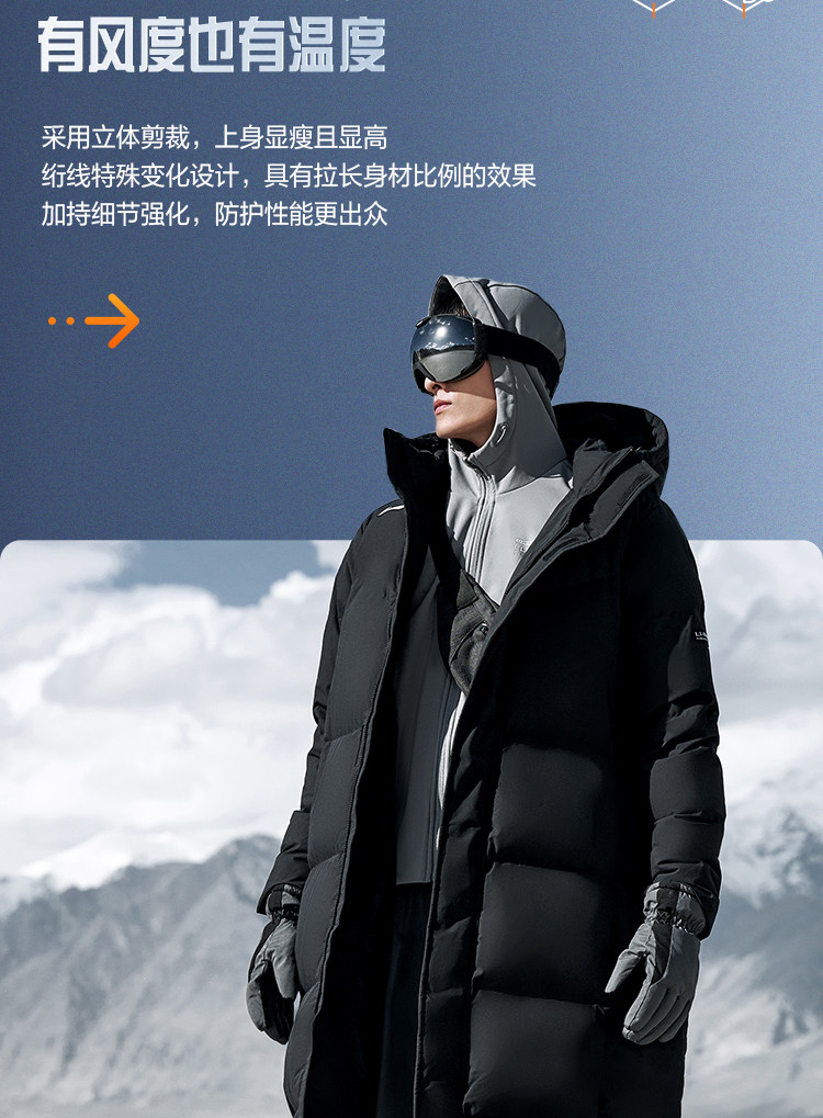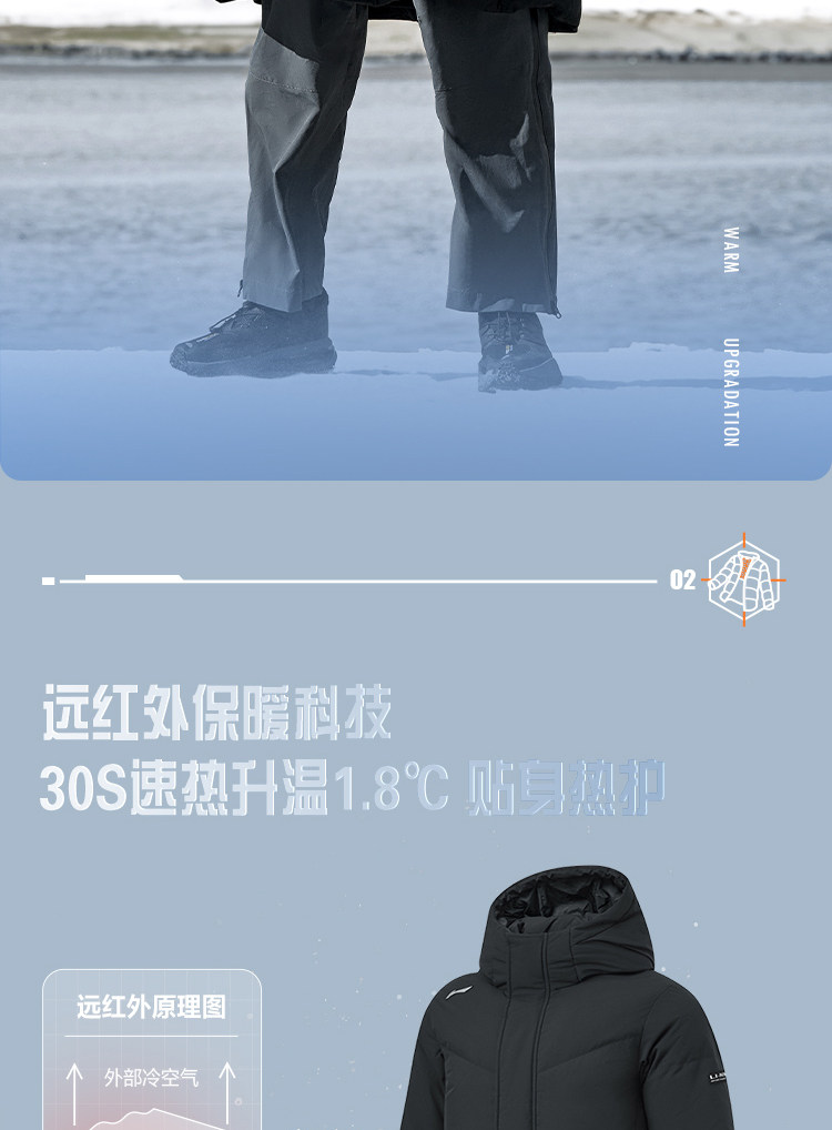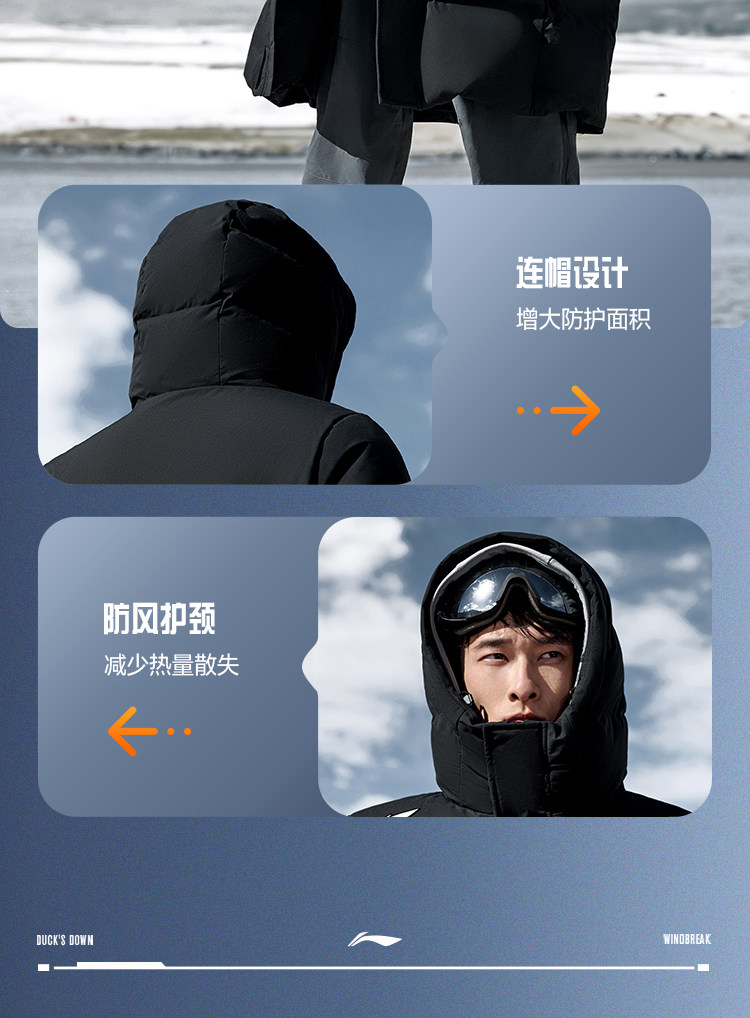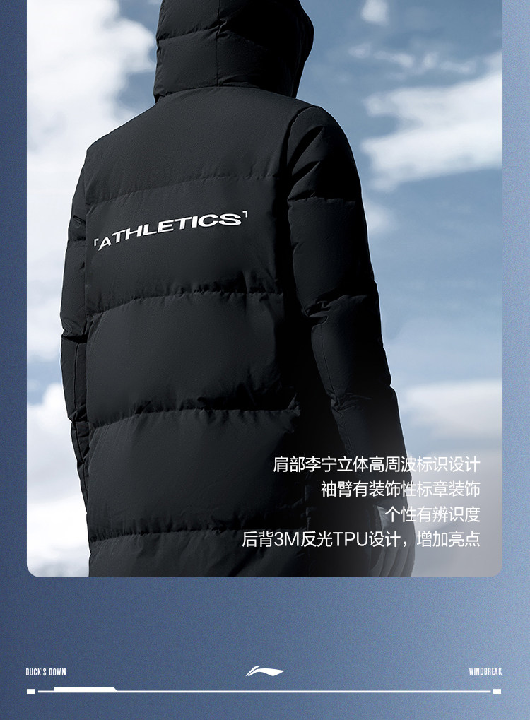 Li-Ning Hot Pot down Jacket | Men's Winter Duck down Thickened Outdoor Hooded Long Sports Coat