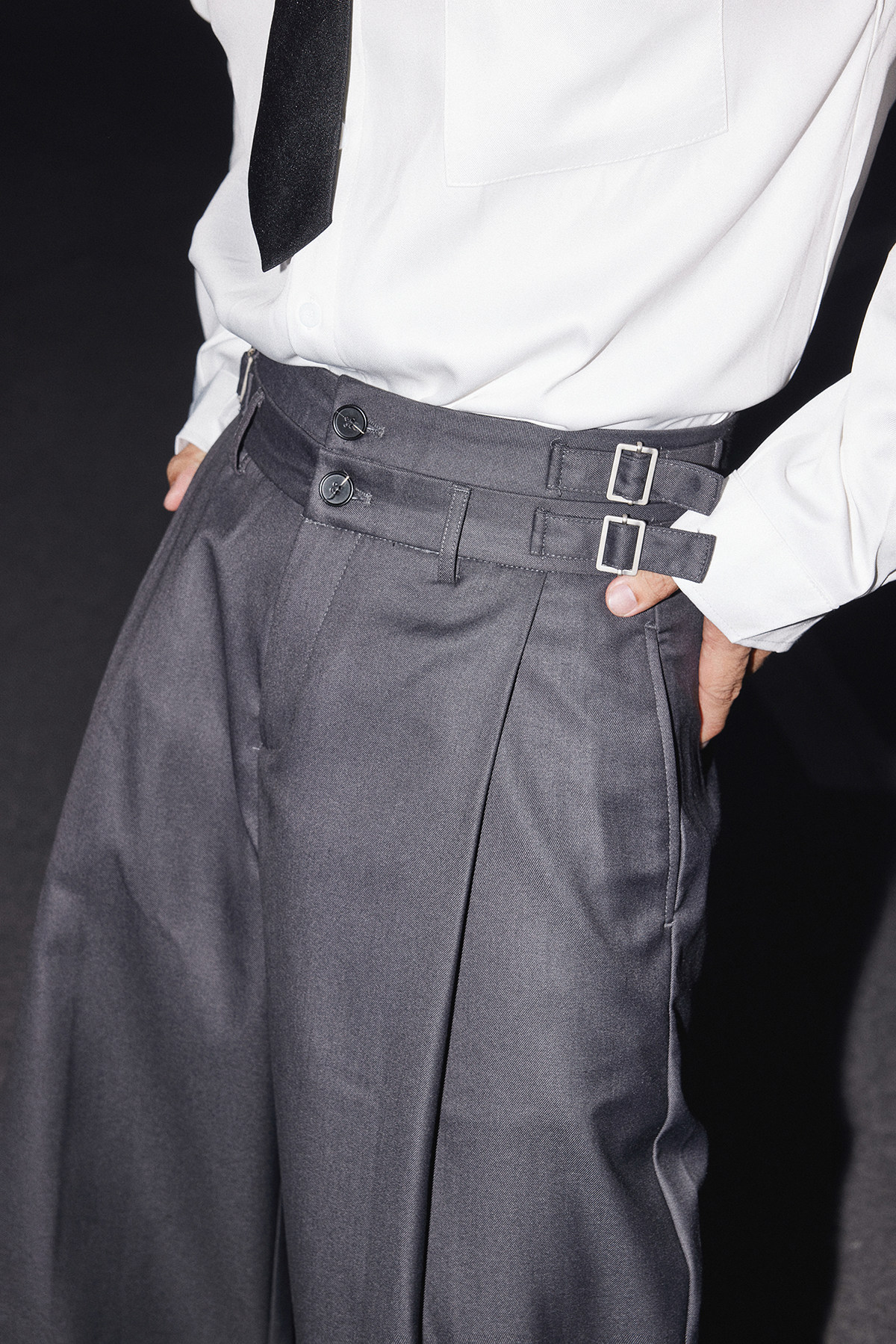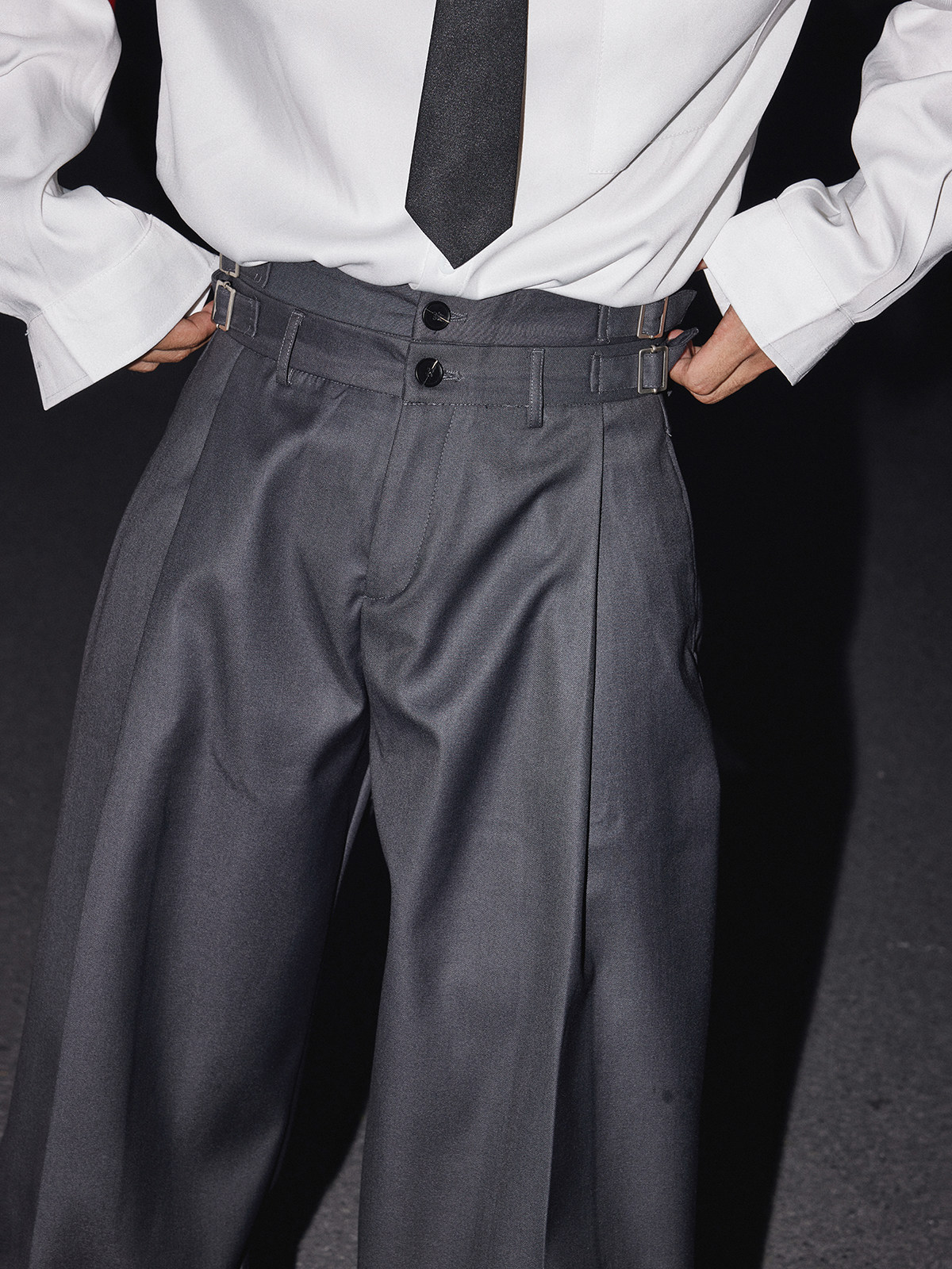 Papaslilmonster【Pleated Draping】Fake Two-Piece Double Waistband High-End Design Casual Long Pants for Men