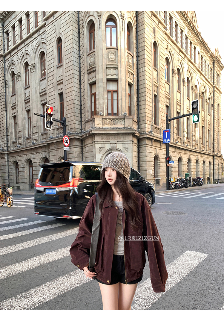 经典翻领茧型夹克外套 版型宽松有廓形感