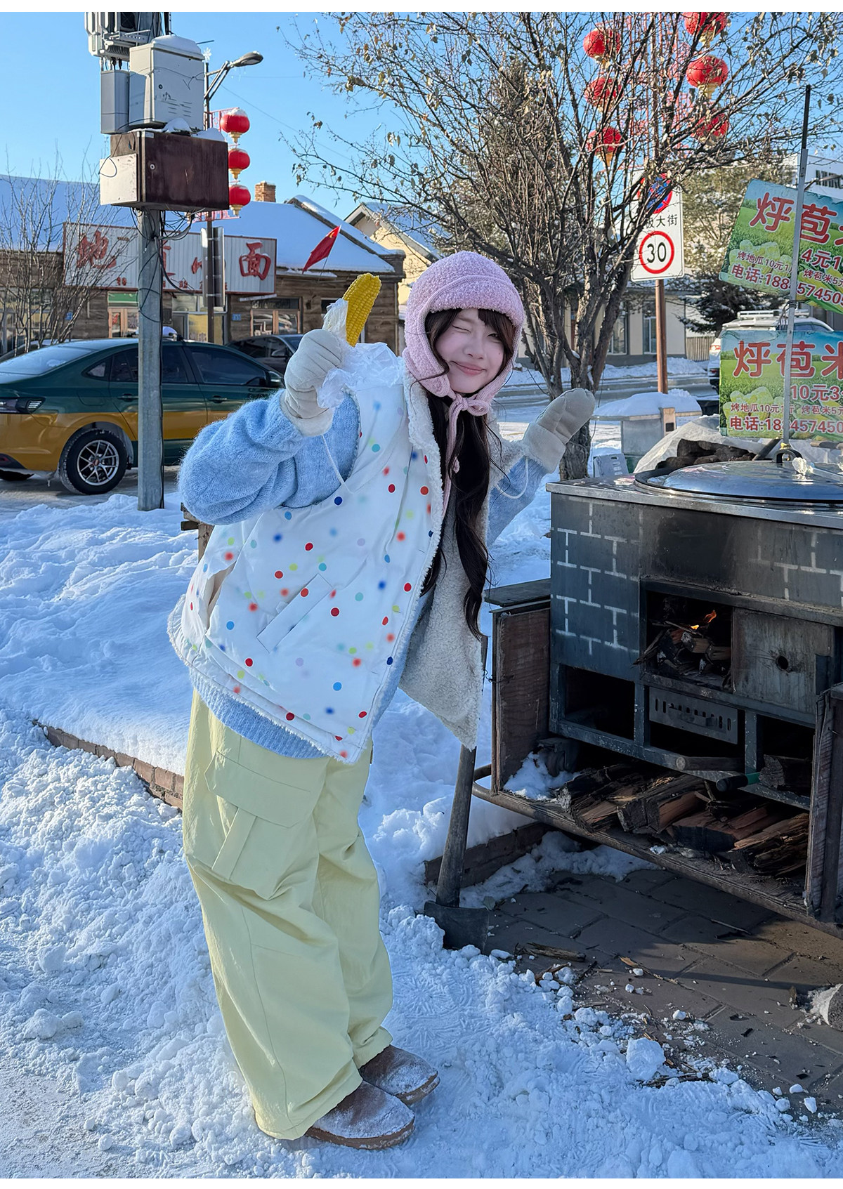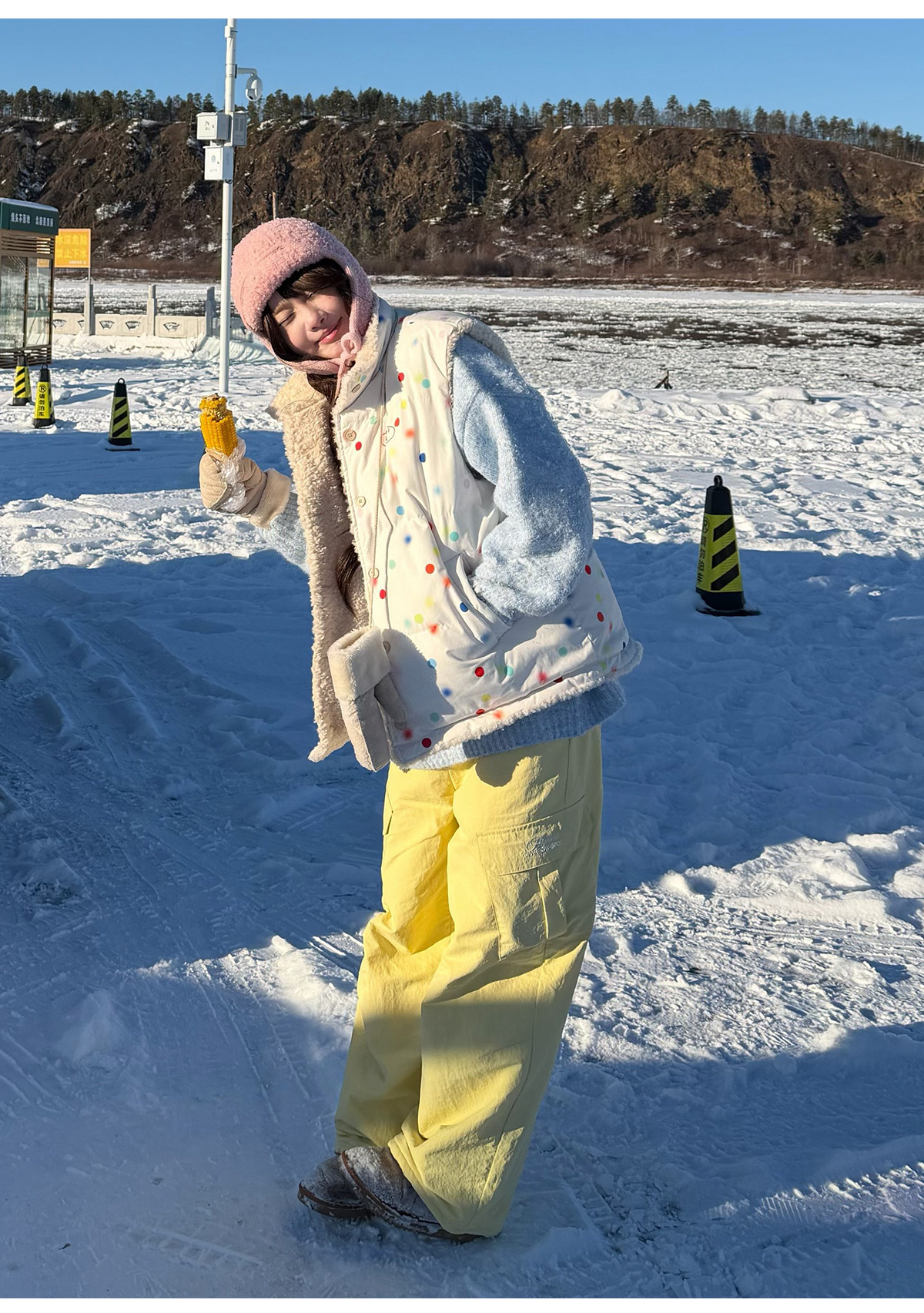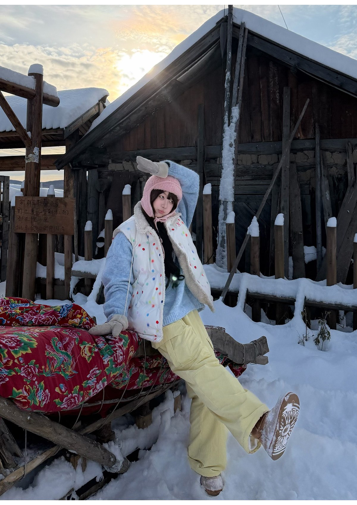 R1Dge Autumn/Winter LAOSHU American-Style Lamb Wool Reversible Polka Dot Cotton Vest for Men and Women, Casual Versatile Warm Jacket