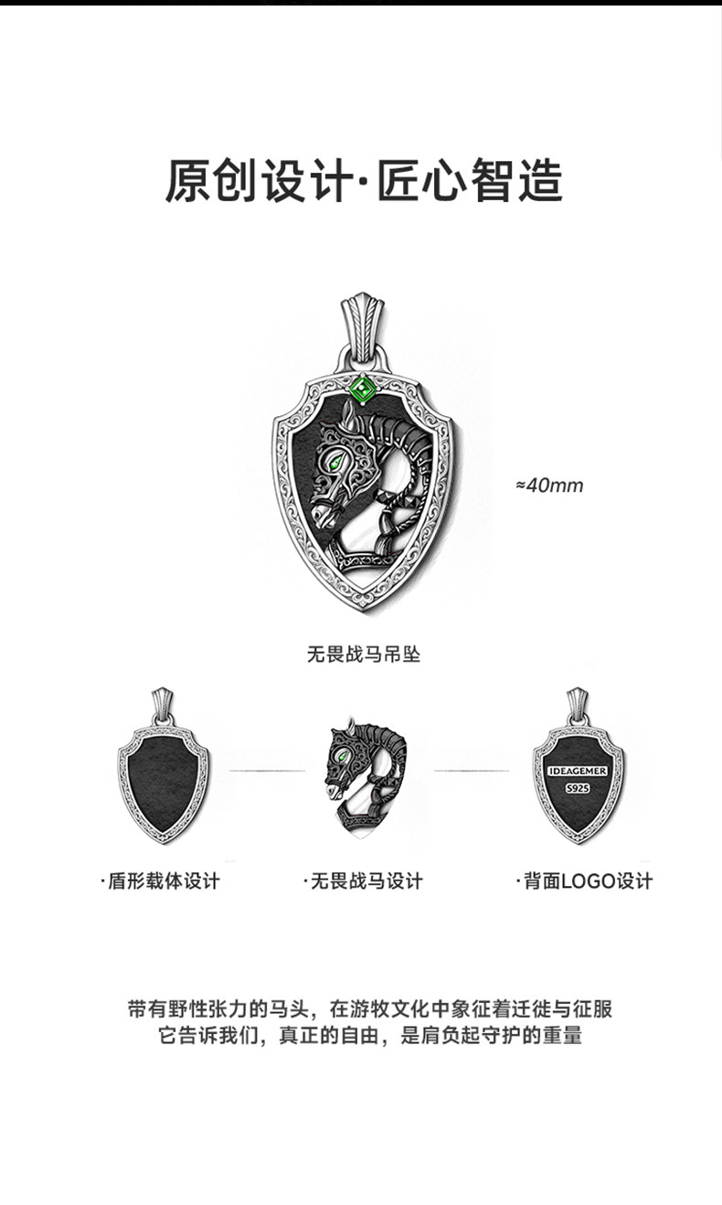 Ideagemer 【Instant Success】 Necklace for Men, High-End Cool Pendant, Trendy Year of the Horse Zodiac Year Gift
