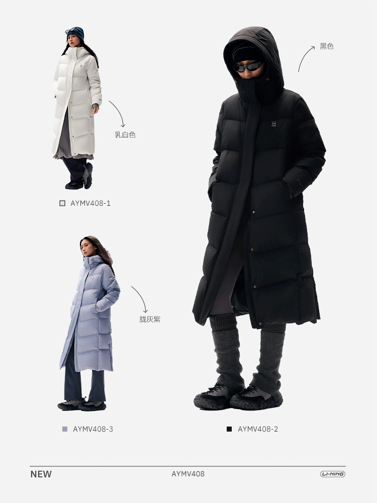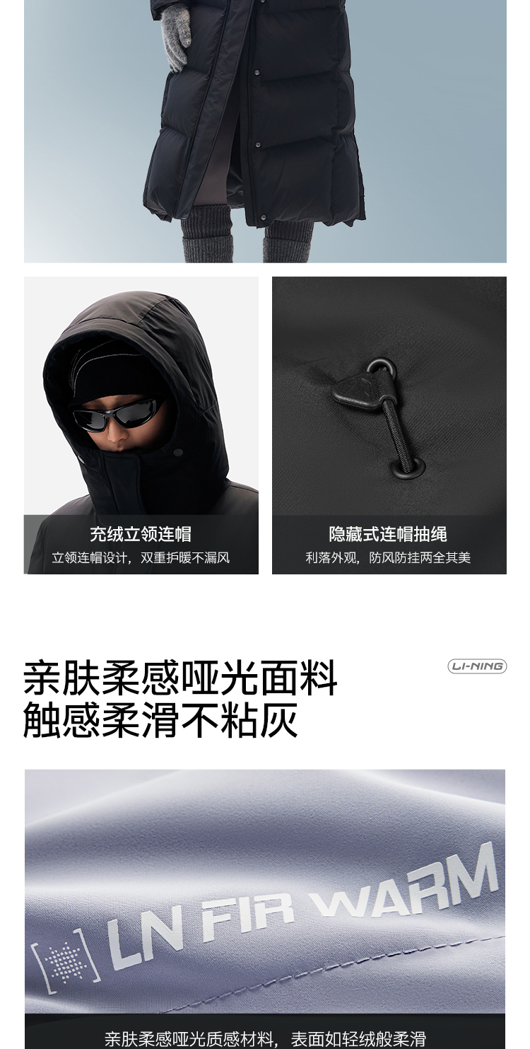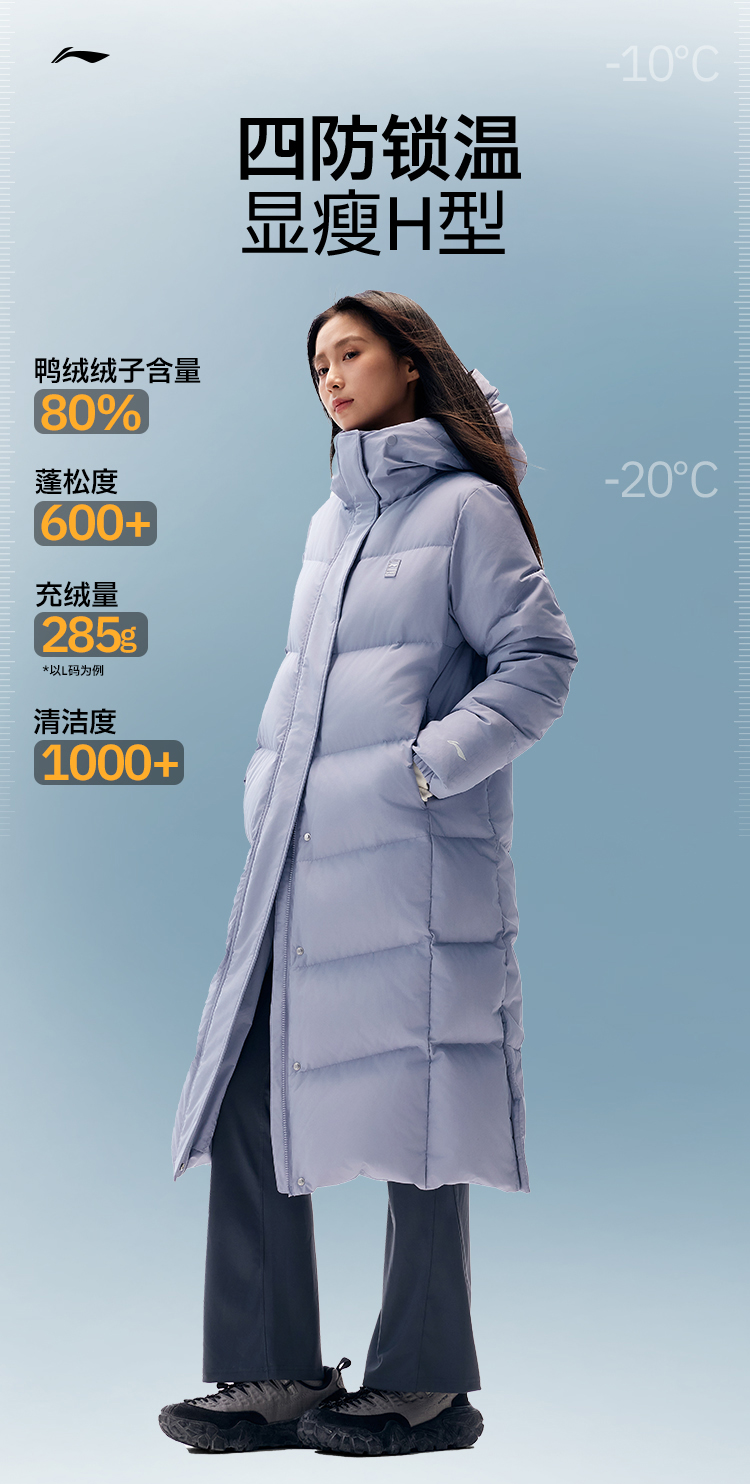 Li-Ning Hot Pot down Jacket | Women's Winter Duck down Long Coat Warm Outdoor Clothing Hooded Sports Jacket for Women
