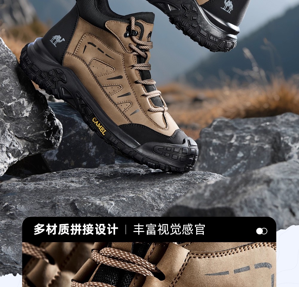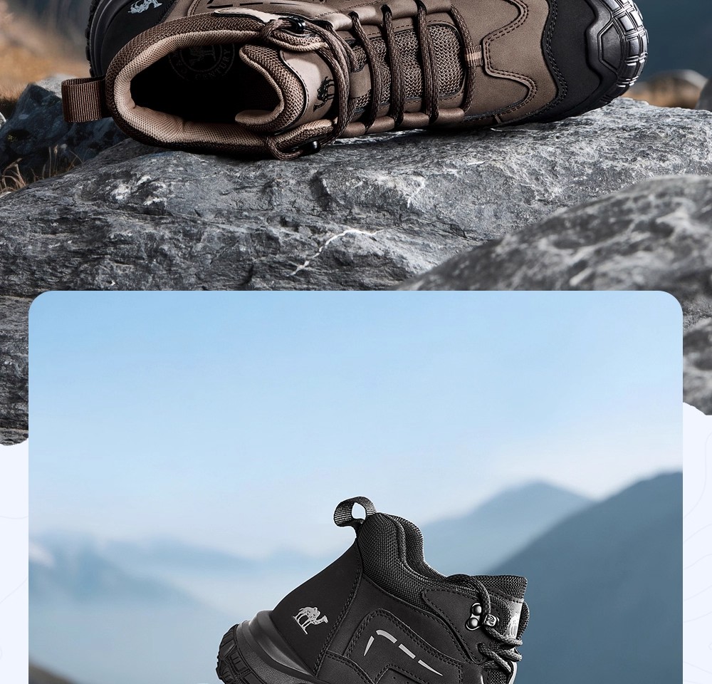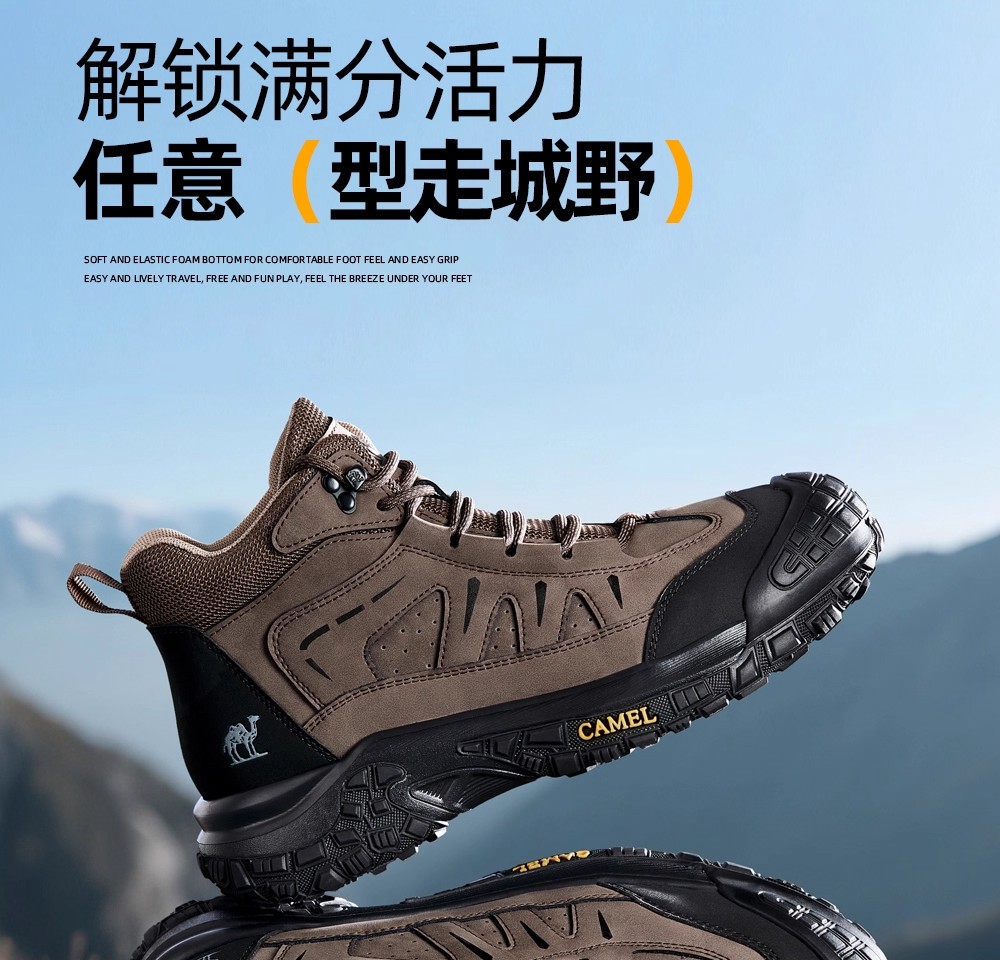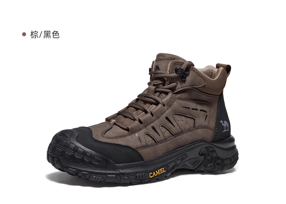 Camel Men's High-Top Shoes 2025 Winter New Style Fleece-Lined Non-Slip Outdoor Hiking Shoes Wear-Resistant Sports Shoes for Men