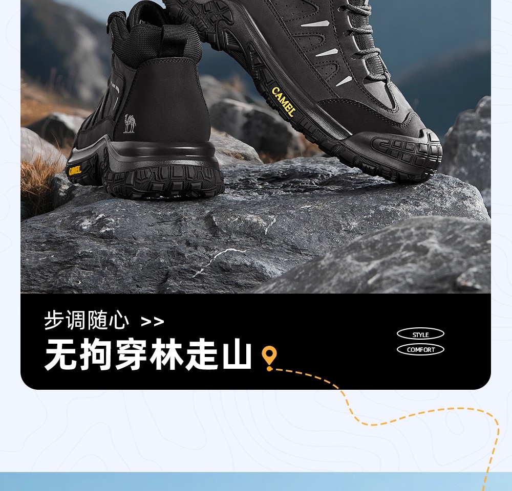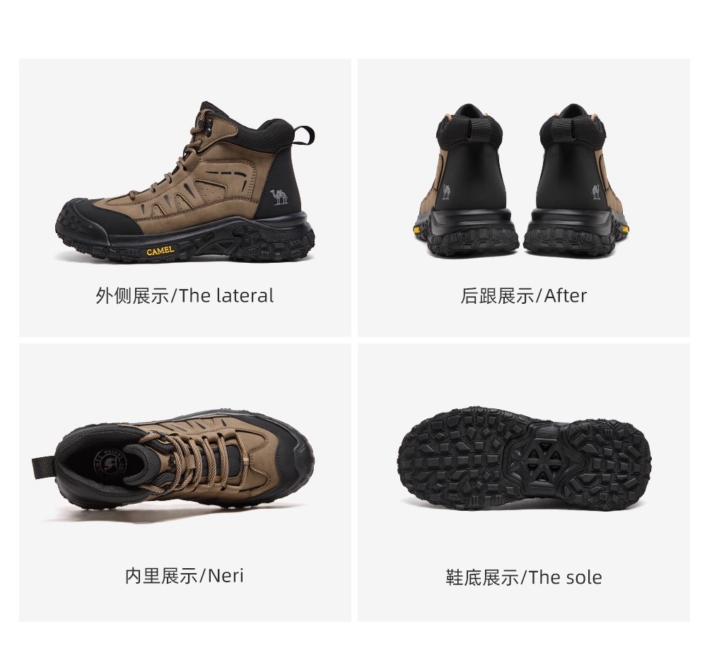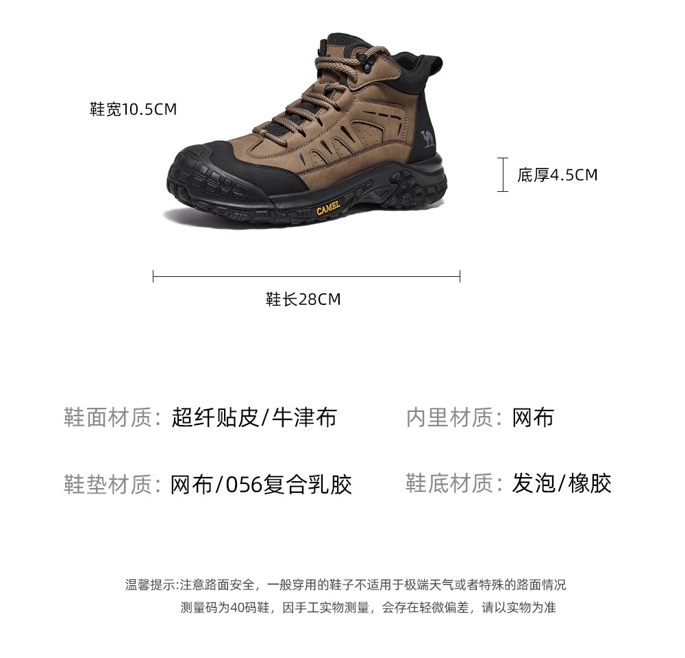 Camel Men's High-Top Shoes 2025 Winter New Style Fleece-Lined Non-Slip Outdoor Hiking Shoes Wear-Resistant Sports Shoes for Men