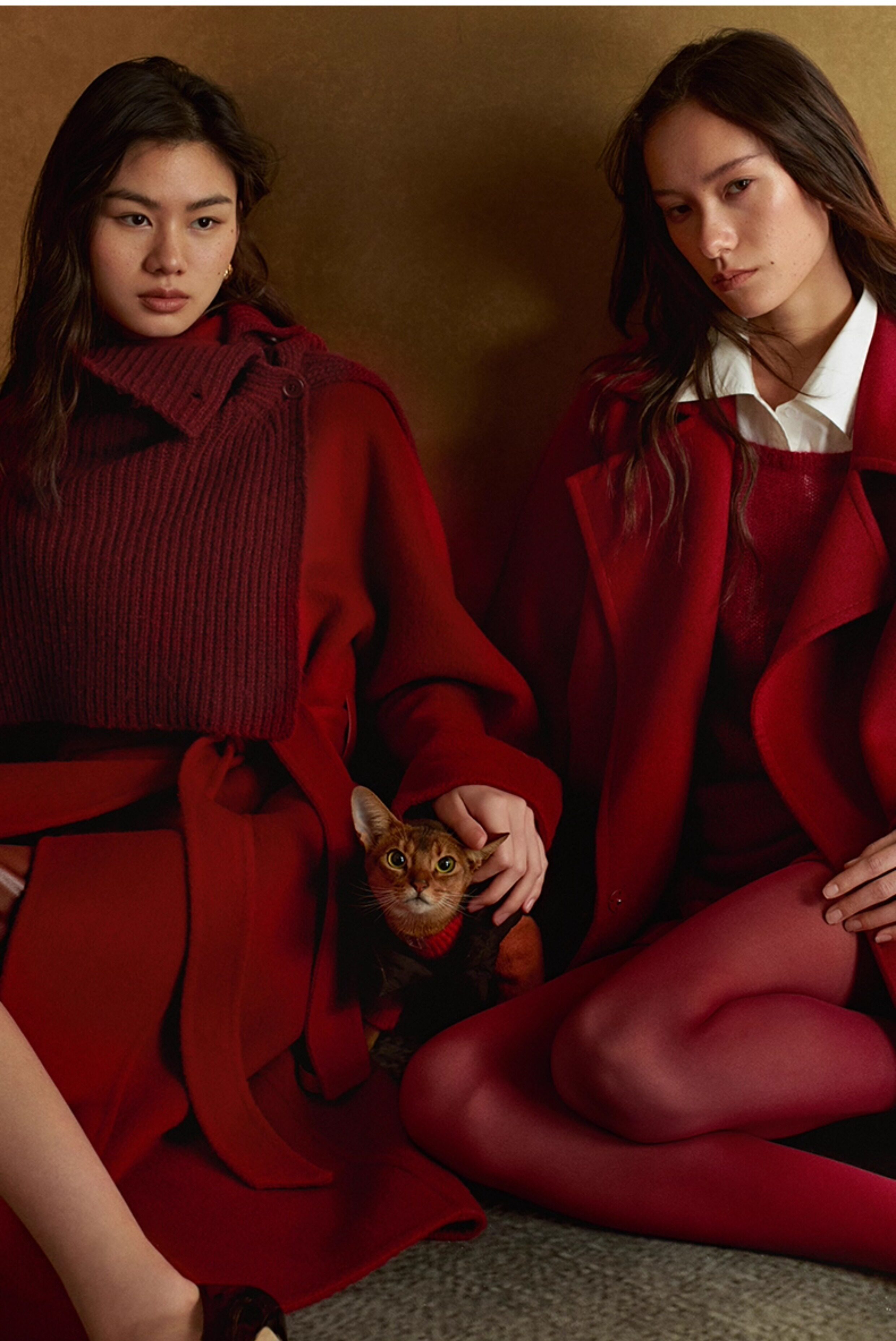 【Celebrity Style】Zhizhi Shihu Xian Yak Wool Long Red Coat with Good Luck Charm, Romantic Style