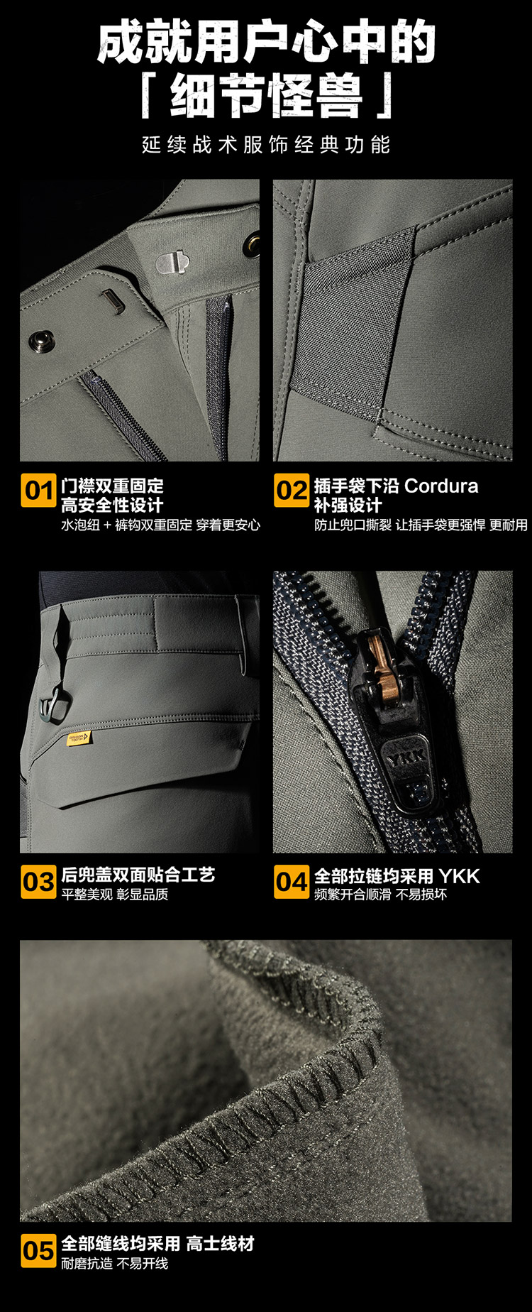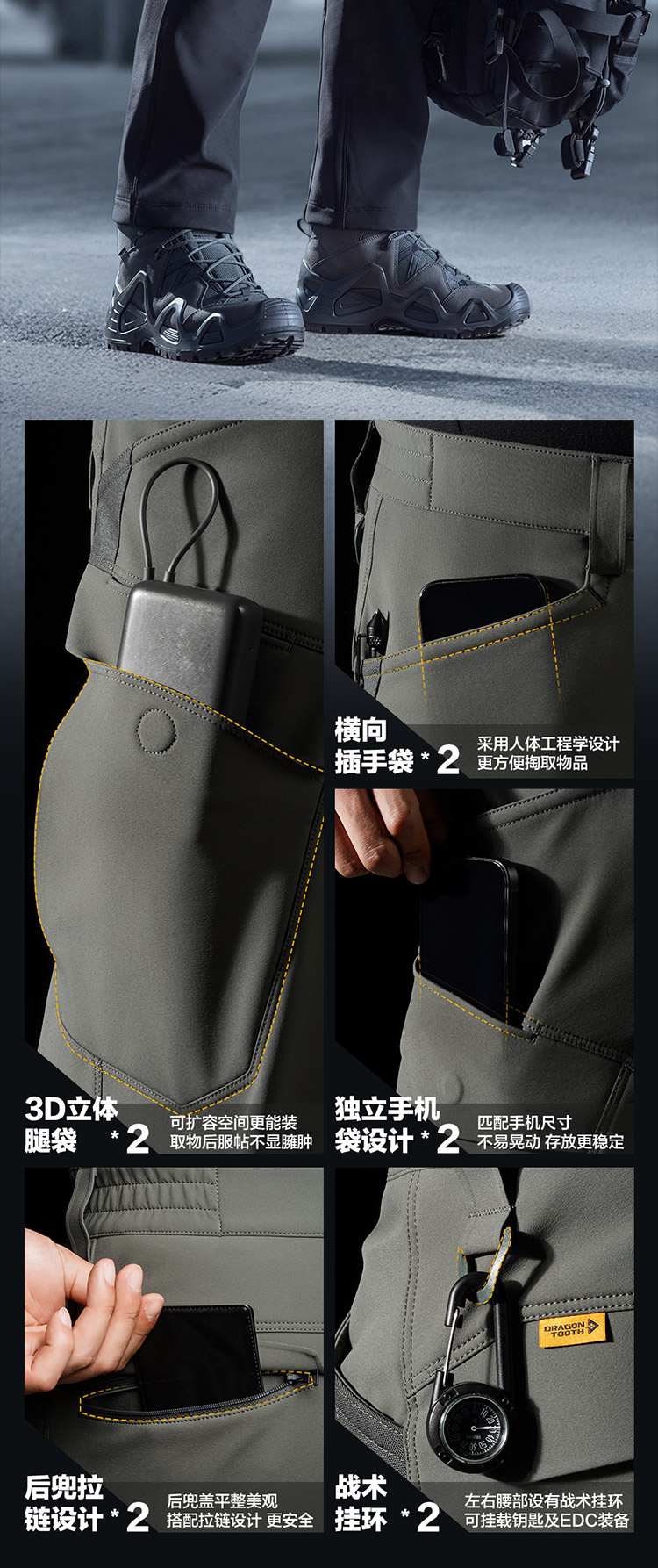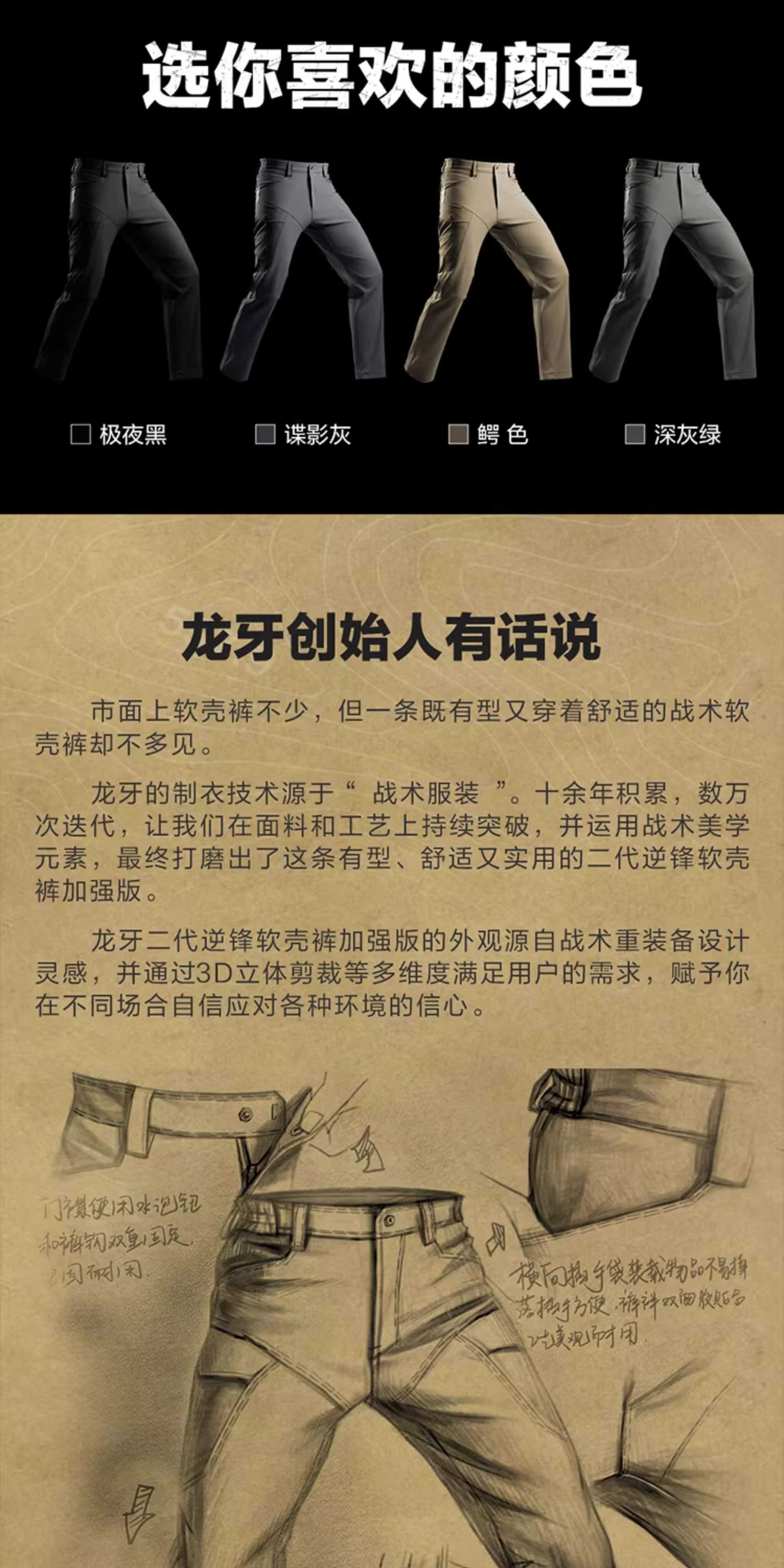 [Same Style as Zhang Yi] Longya Second Generation Reverse Edge Soft Shell Pants Enhanced Edition Men's Windproof Pants Thickened Fleece Outdoor Pants