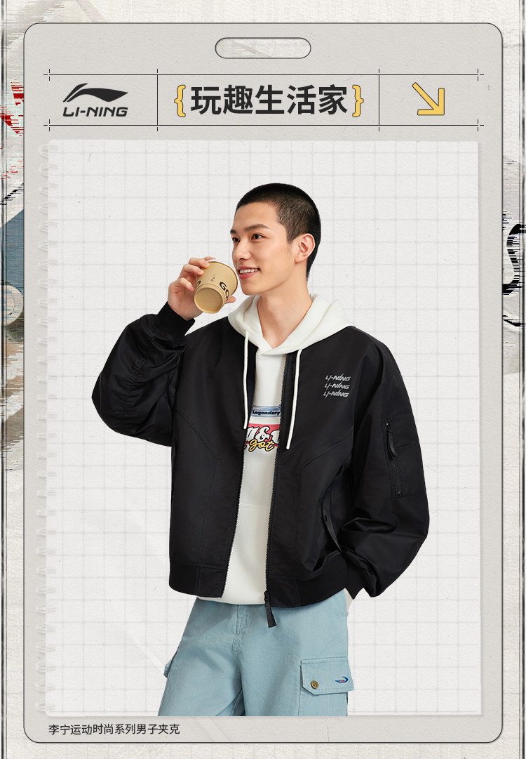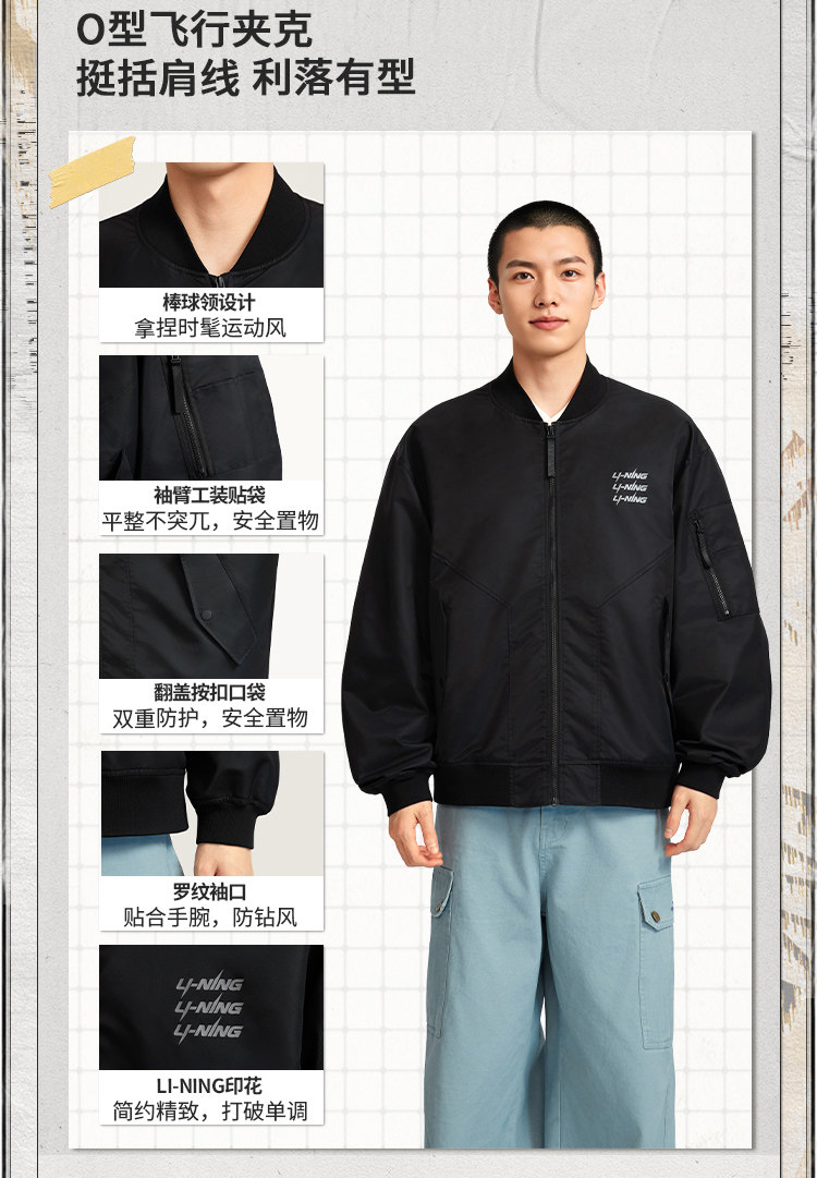 Li-Ning Flight Jacket for Men, New Winter Vintage Workwear, Loose Baseball Jacket, Sweatshirt, Loose Windproof Sports Coat