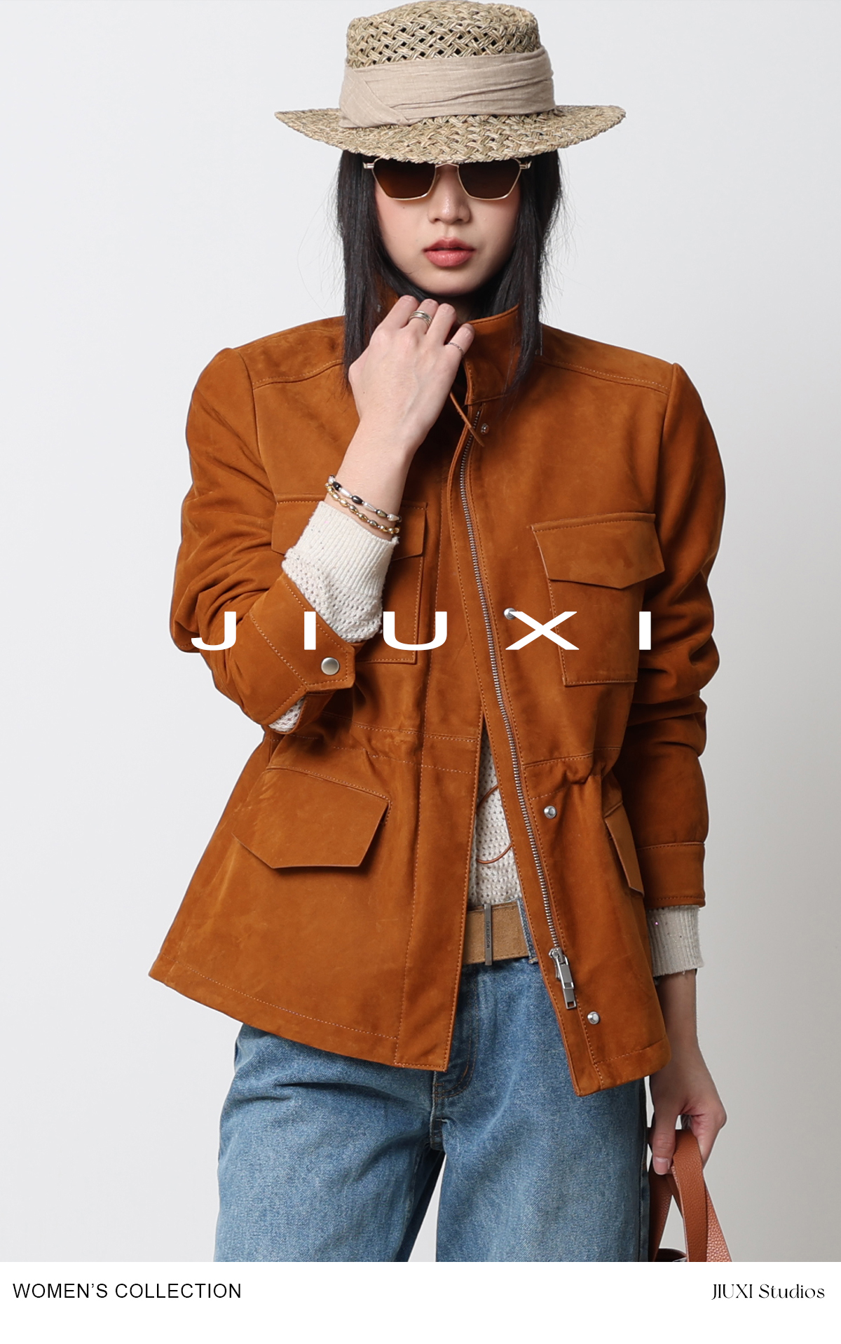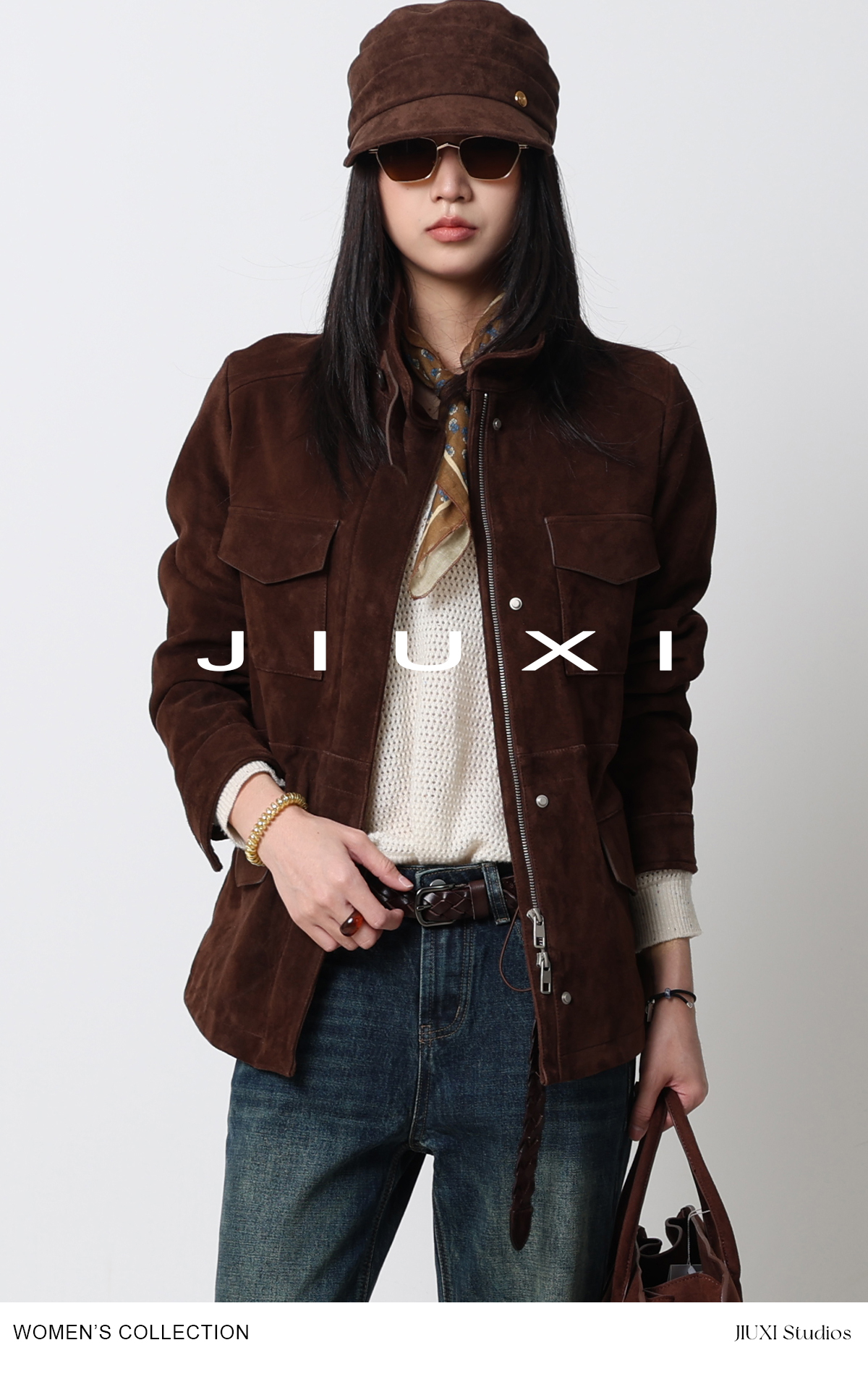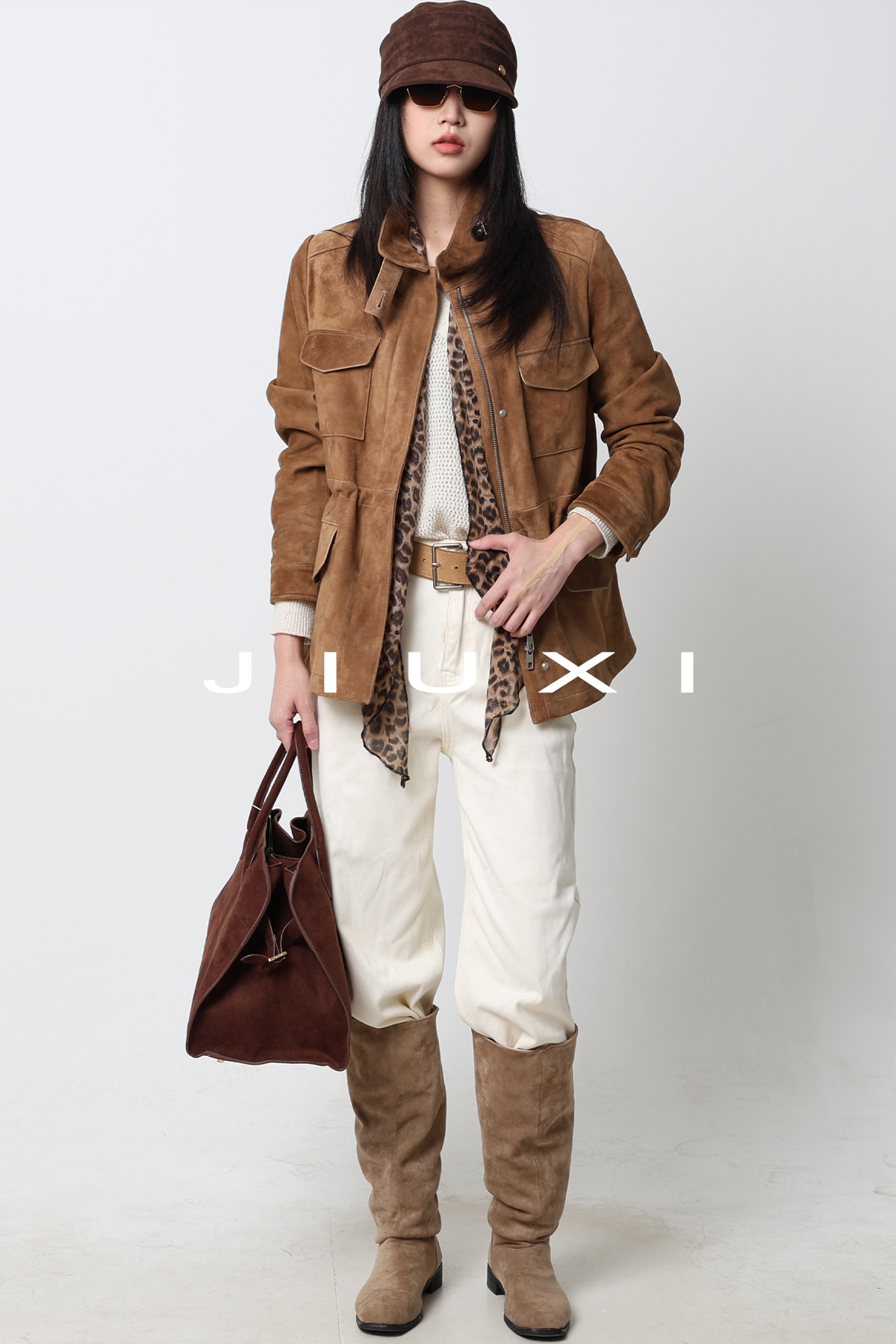 2025 Autumn/Winter New Traveler Leather Jacket Imported Goat Suede Genuine Leather Stand Collar Old Money Style Coat for Women