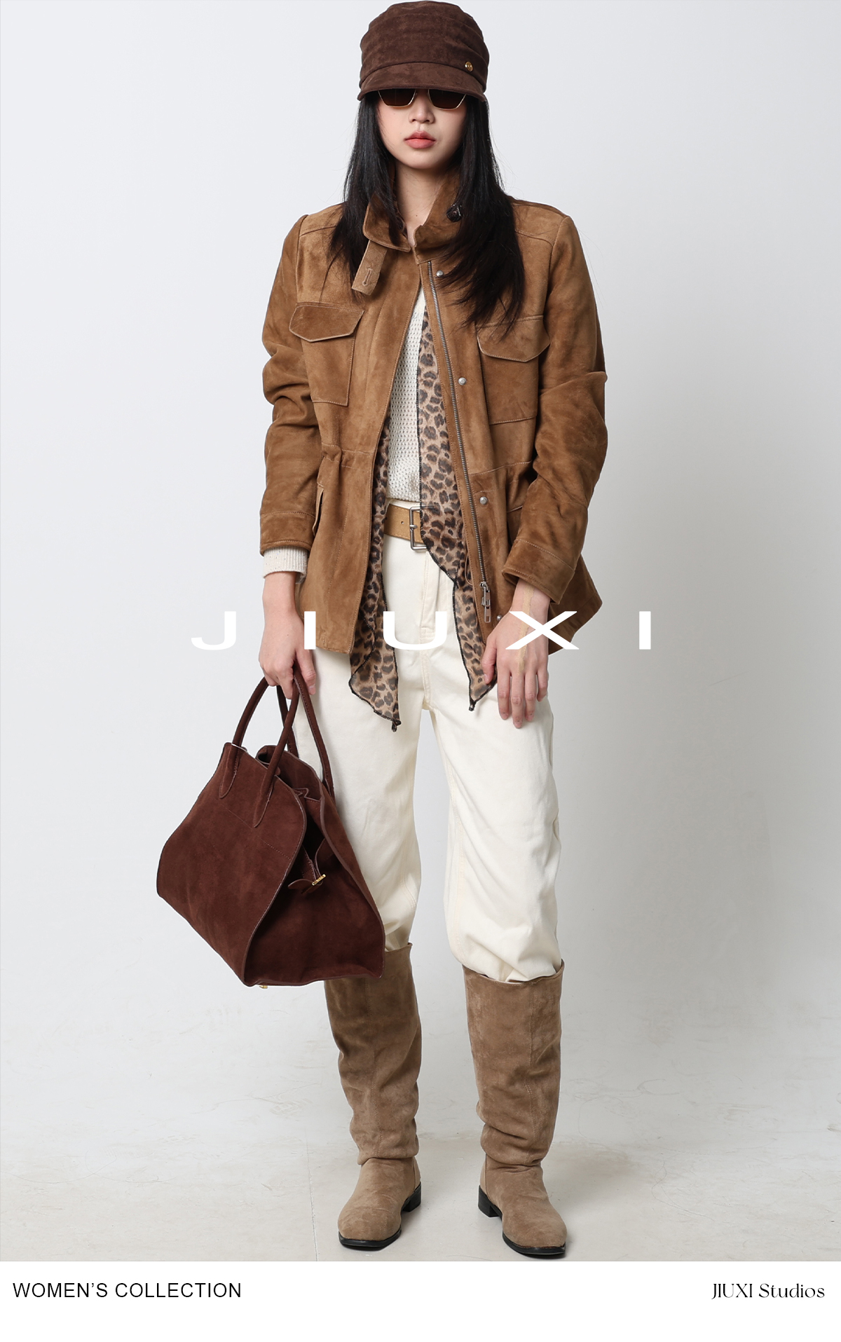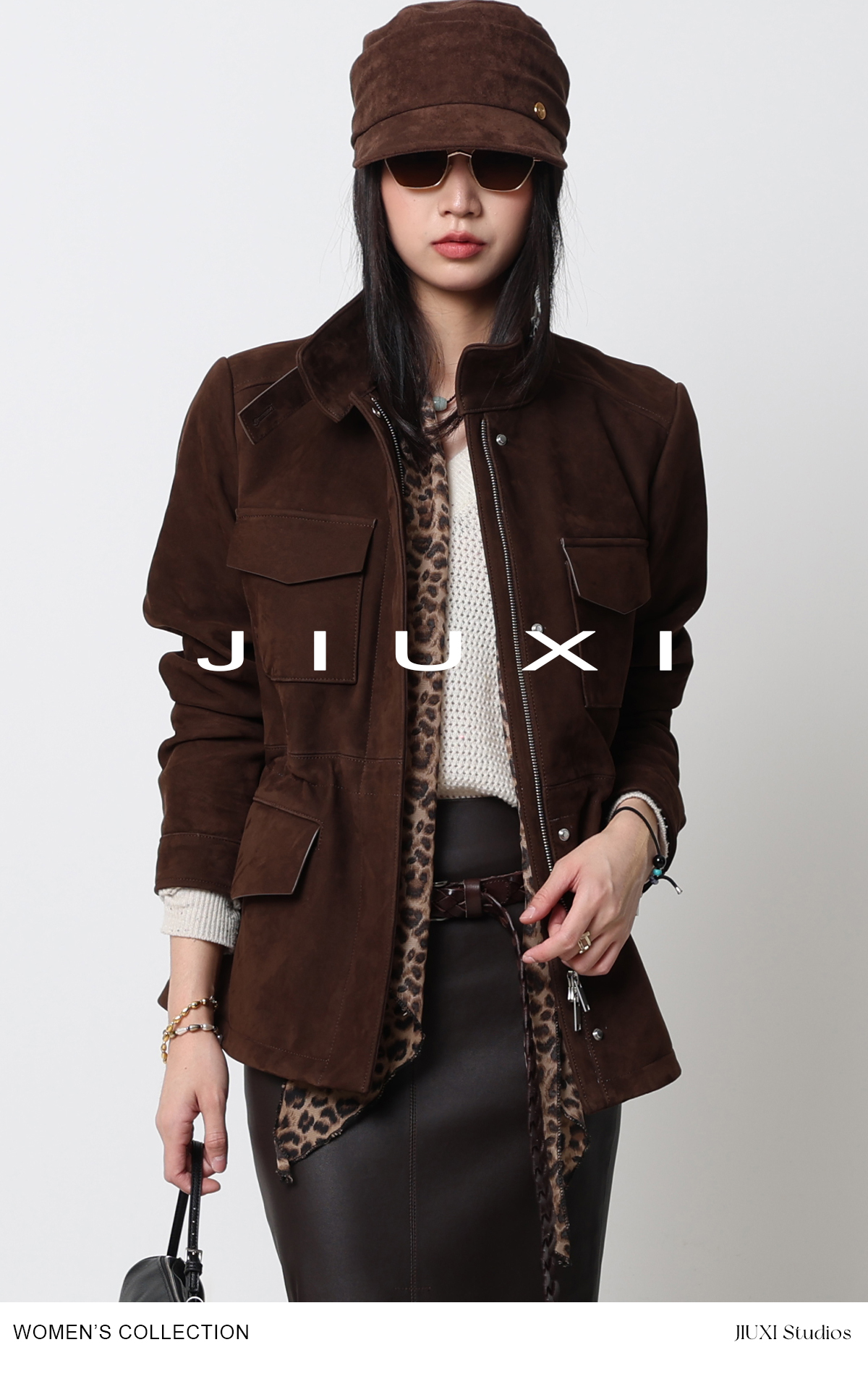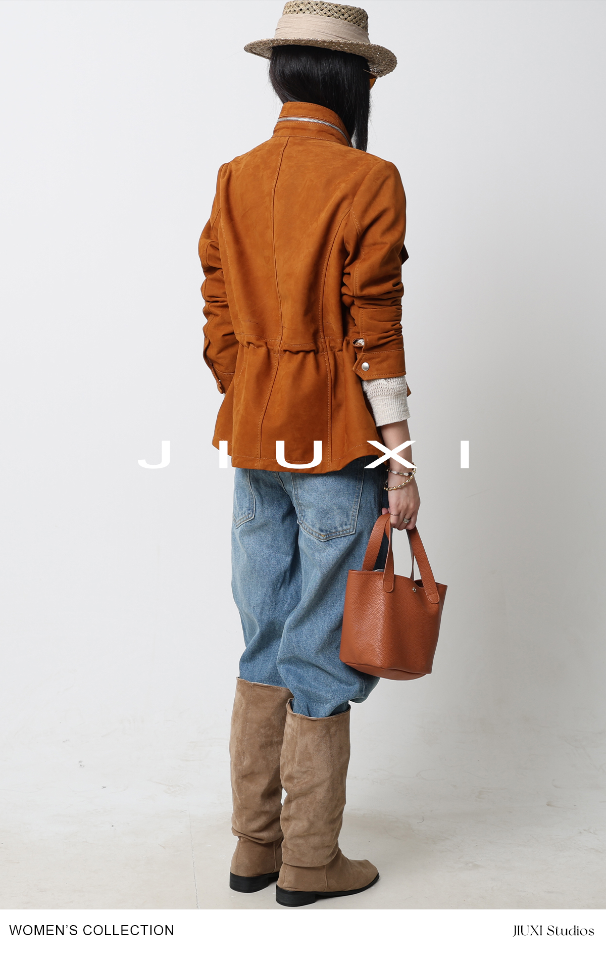 2025 Autumn/Winter New Traveler Leather Jacket Imported Goat Suede Genuine Leather Stand Collar Old Money Style Coat for Women