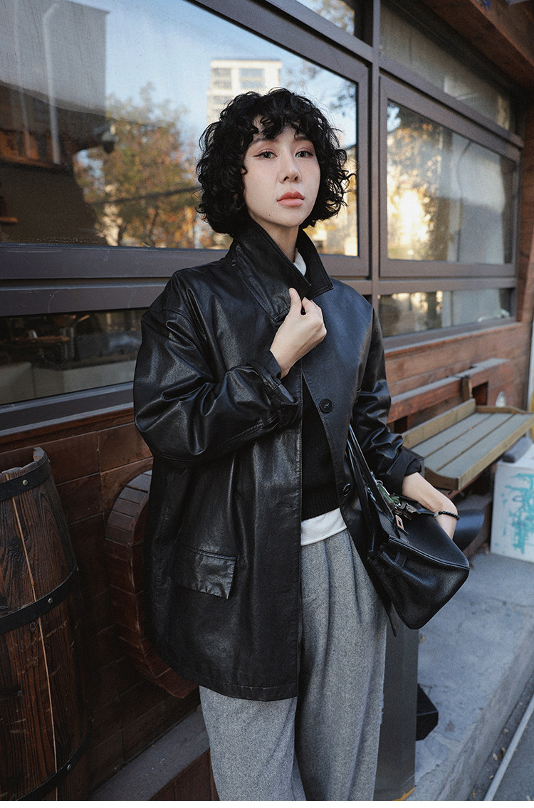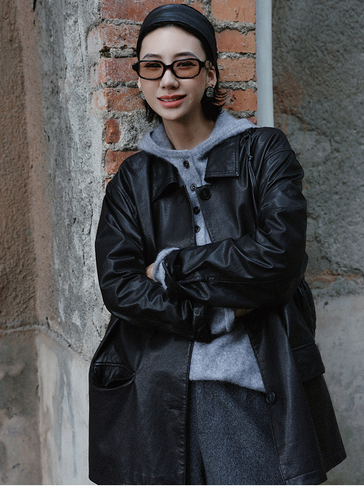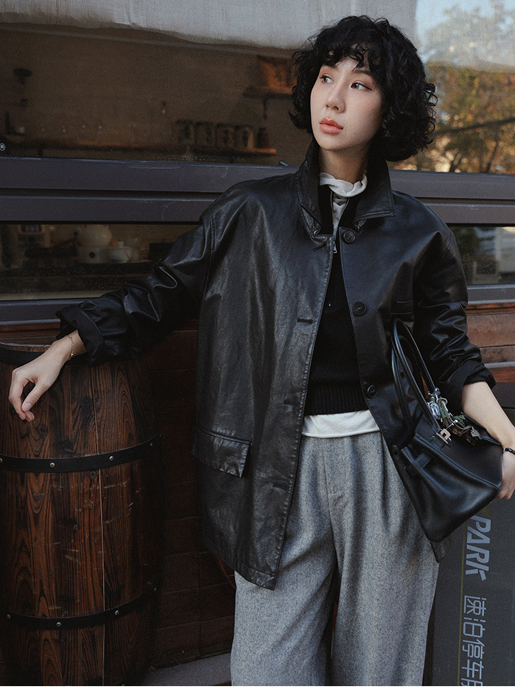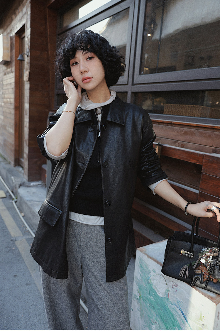 Tt Designer [Phantom] Mid-Length Sheepskin Blazer Spring and Autumn 2026 New Ultra-Soft Genuine Leather Jacket