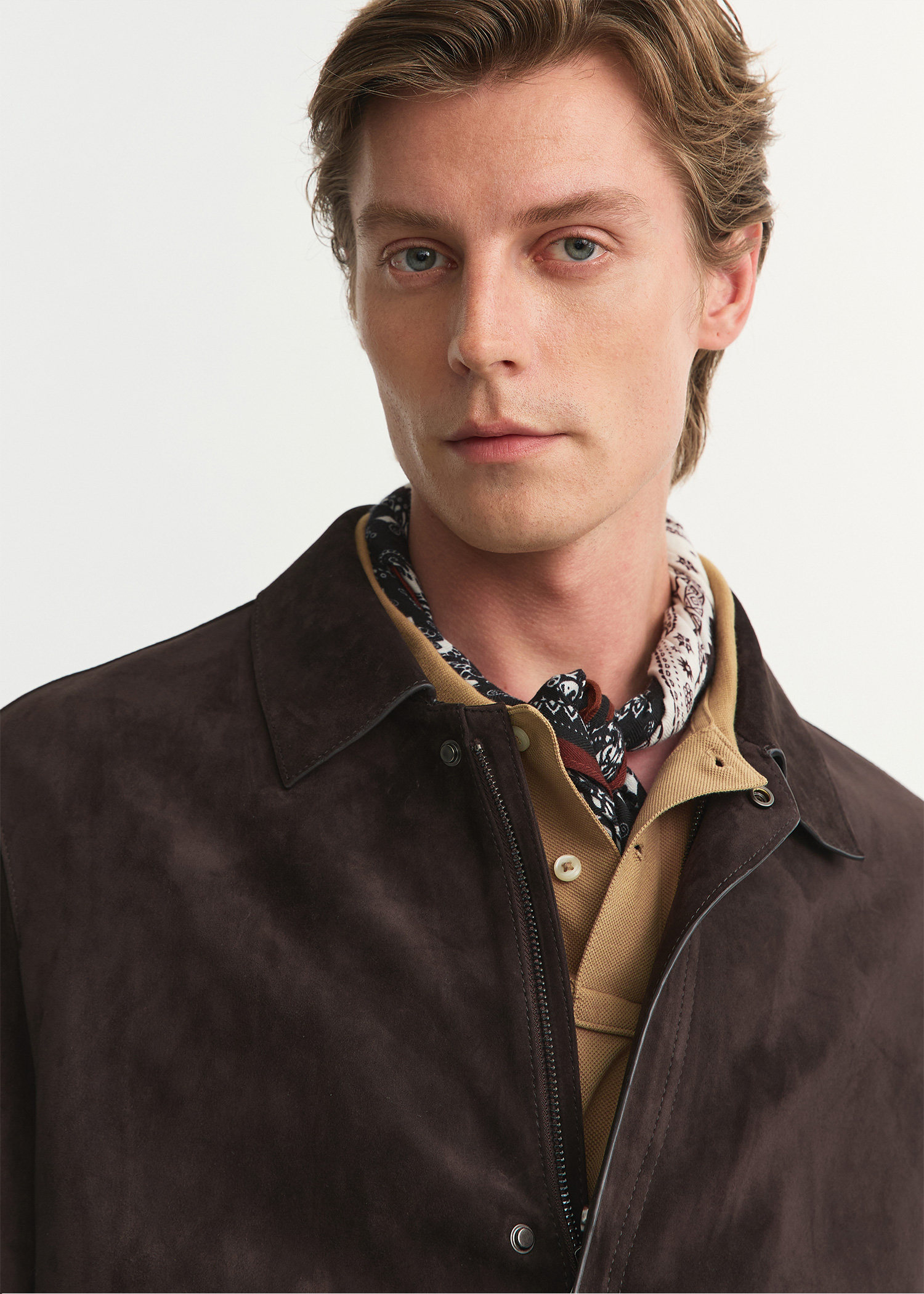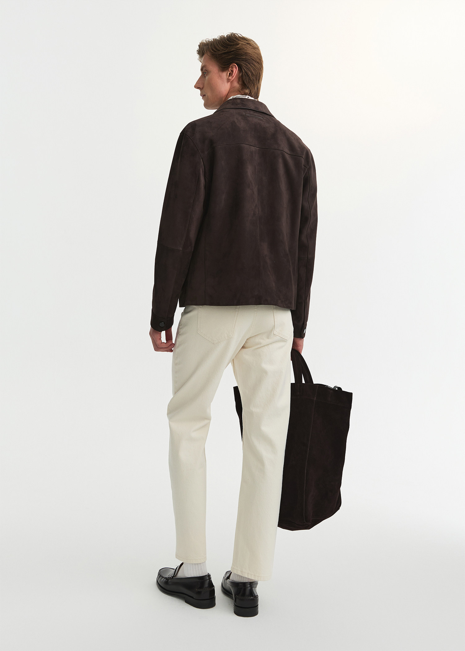 Andrea Moore/Andre Moore Men's Genuine Leather Jacket Suede Sheepskin Jacket with Lapel Casual