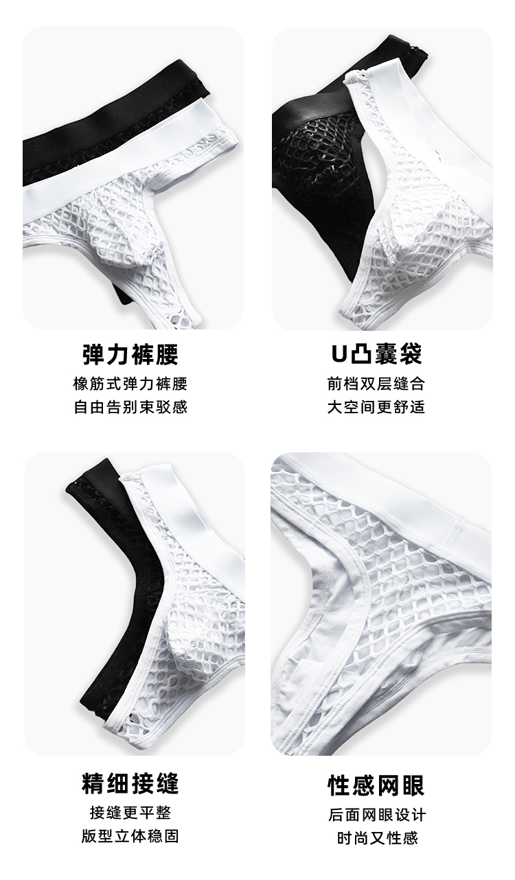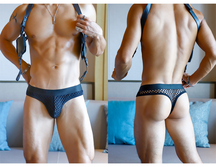 2 Pieces of Yanye Men's Single-Layer Underwear, Men's Large T-Back Thong, Sexy Mesh Hollow-Out Breathable Triangle Low-Rise Trendy