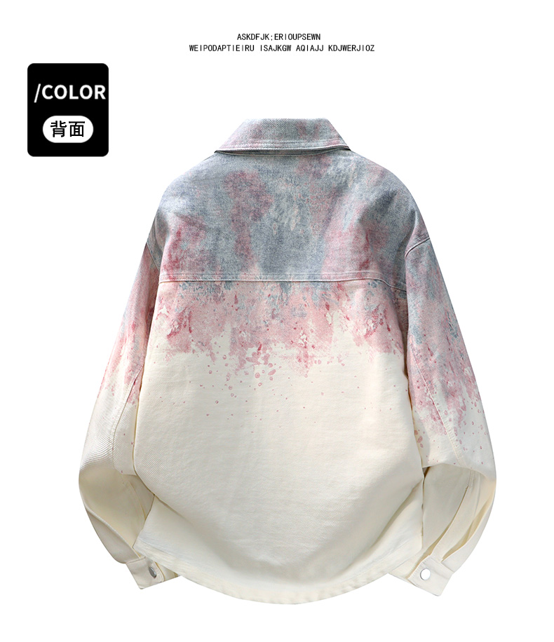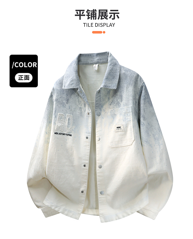 Nasa Co-Branded American-Style Fleece-Lined Gradient Color Printed Denim Jacket for Men, Spring and Autumn Youth Long-Sleeved Shirt Jacket