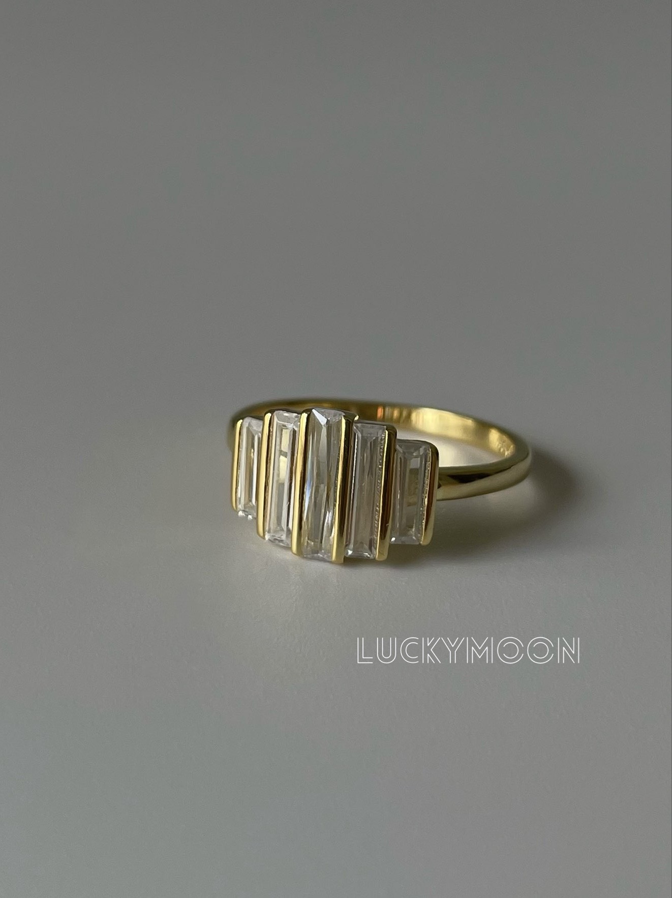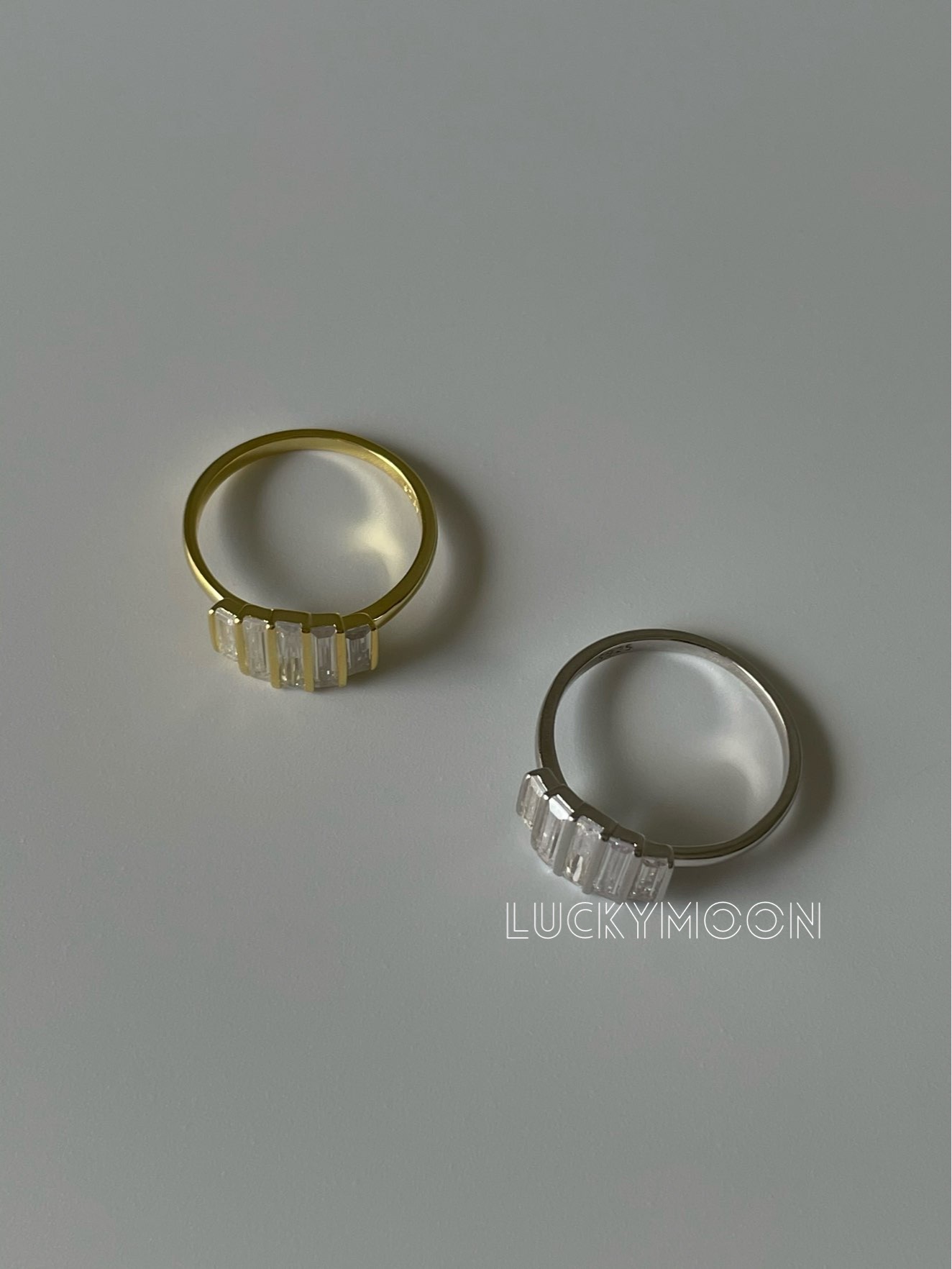 Luckymoon Elegant and Gorgeous Bar-Shaped Diamond Inlaid Open Ring S925 All-Over Sterling Silver R291