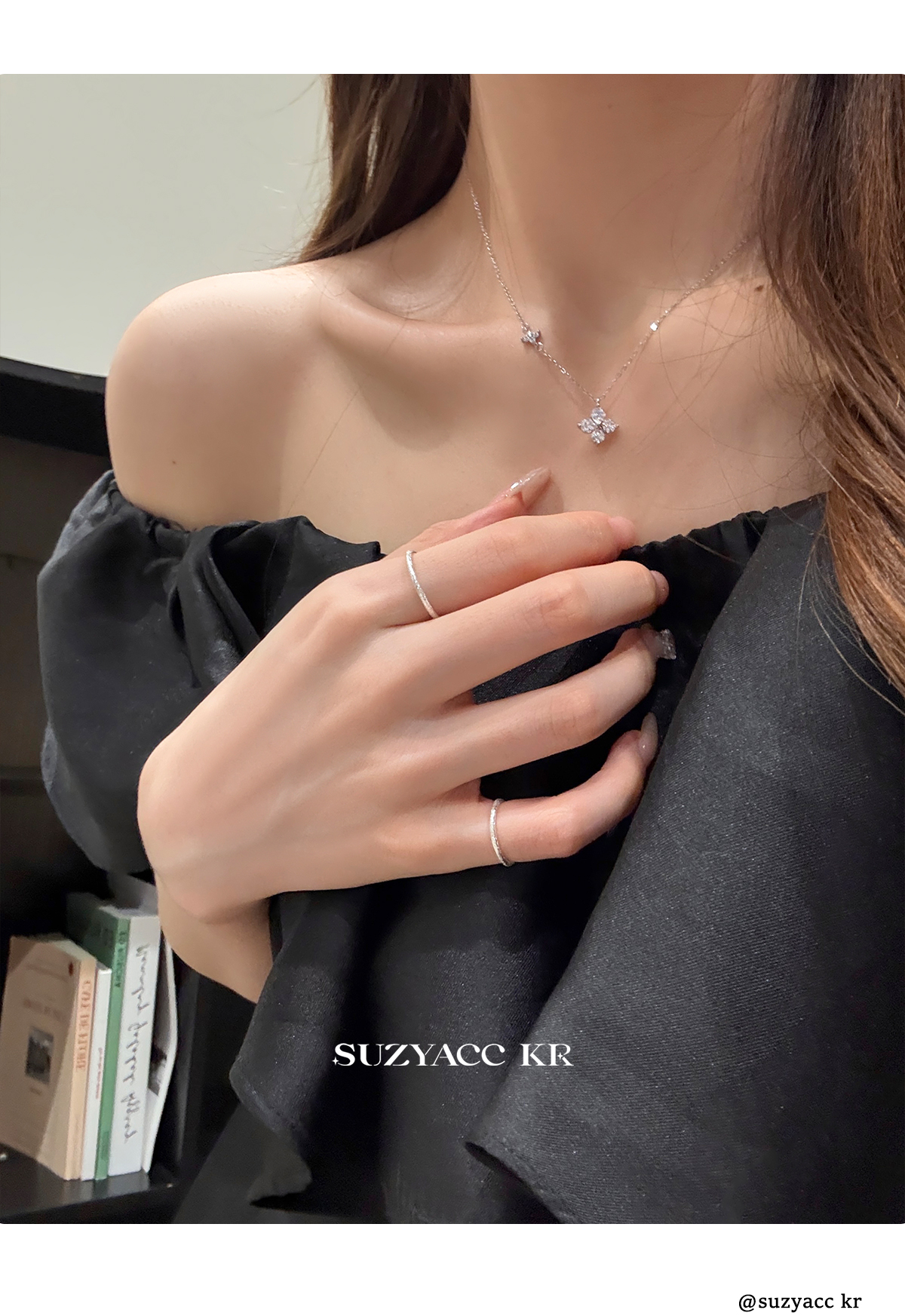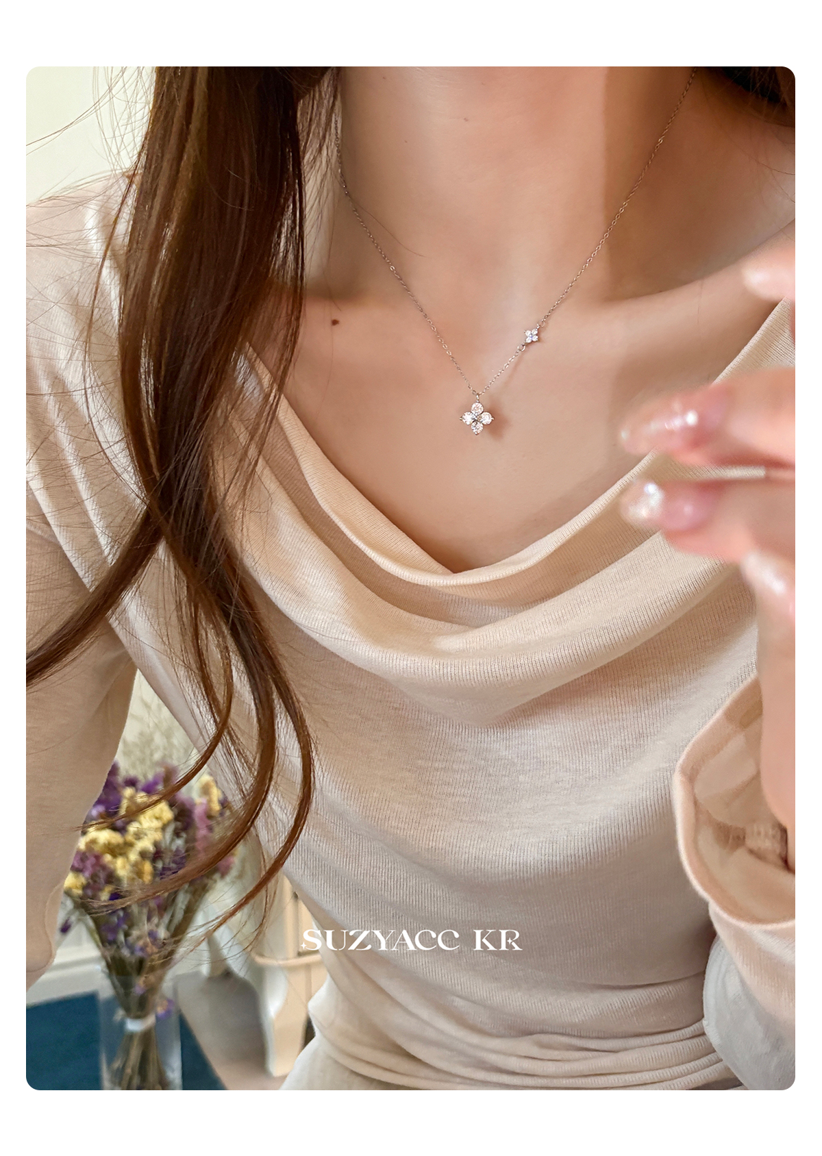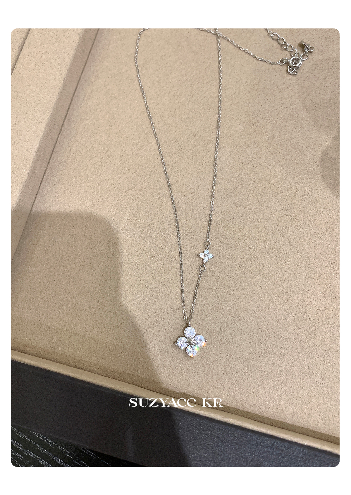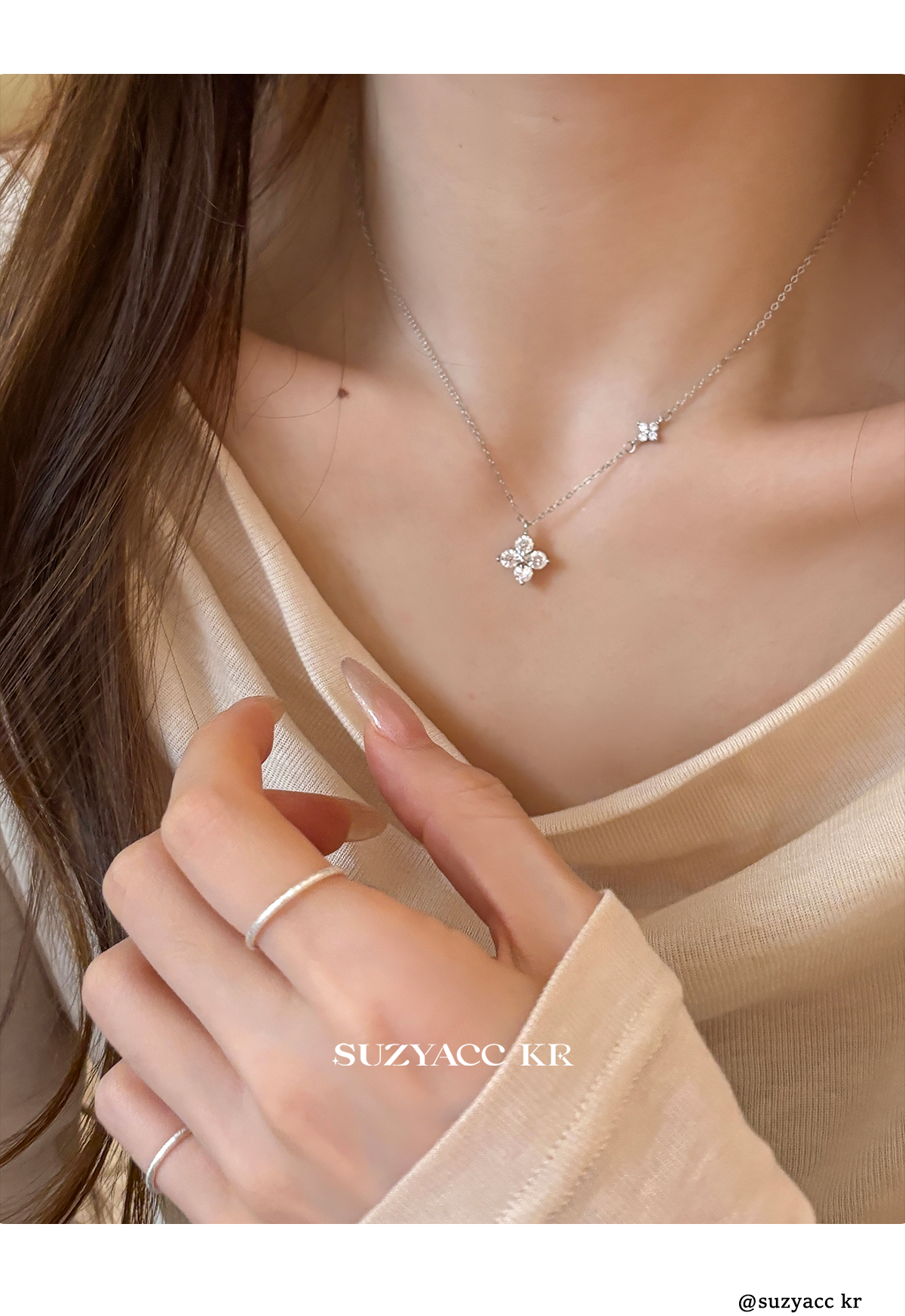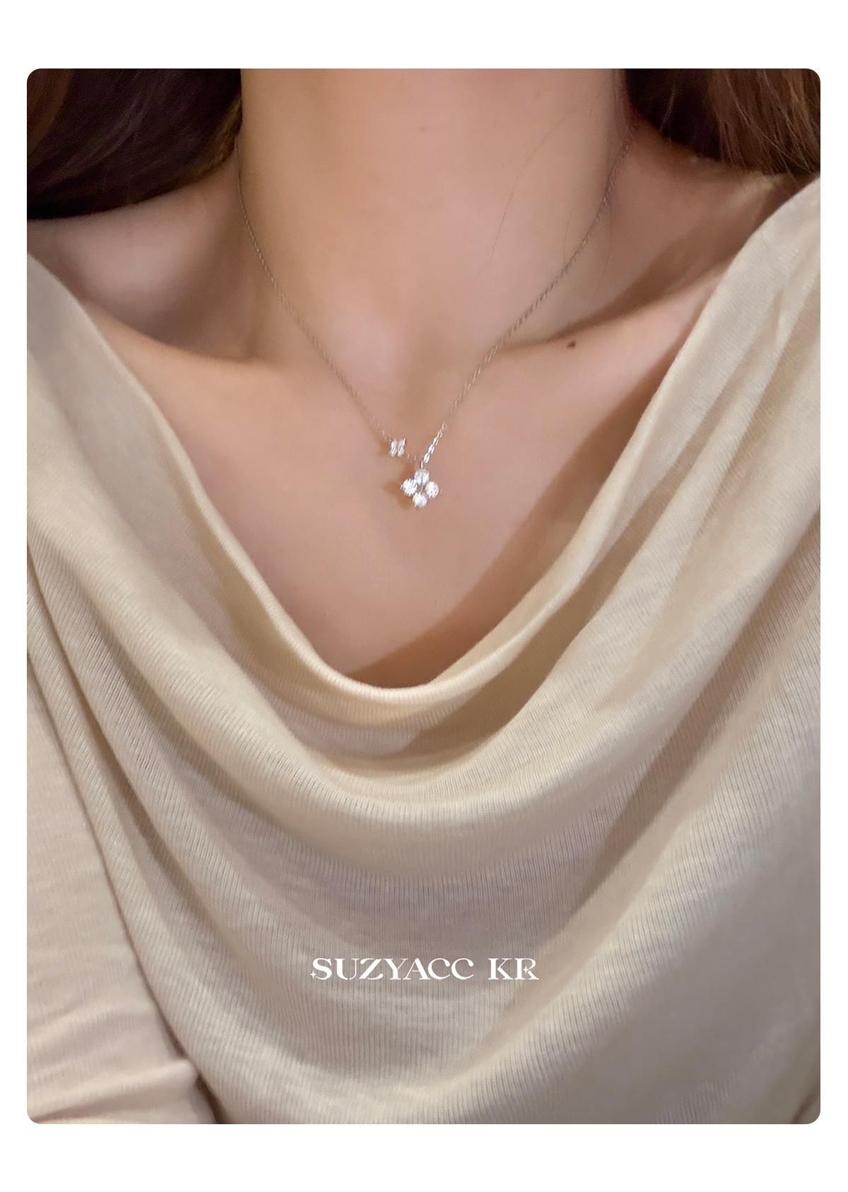 Suzyacc Kr 999 Pure Silver Four-Leaf Clover Synthetic Zircon Necklace Light Luxury Elegant High-End Sweater Chain Clavicle Chain