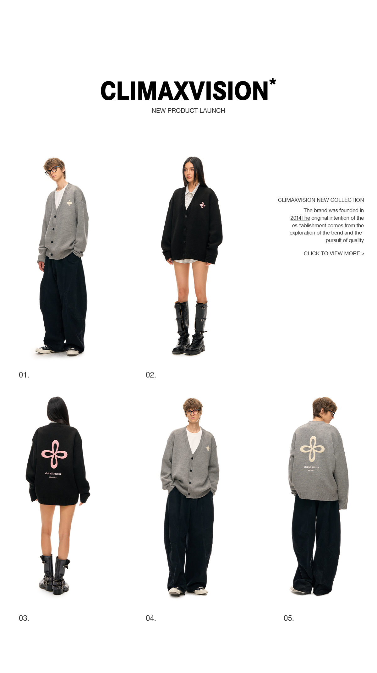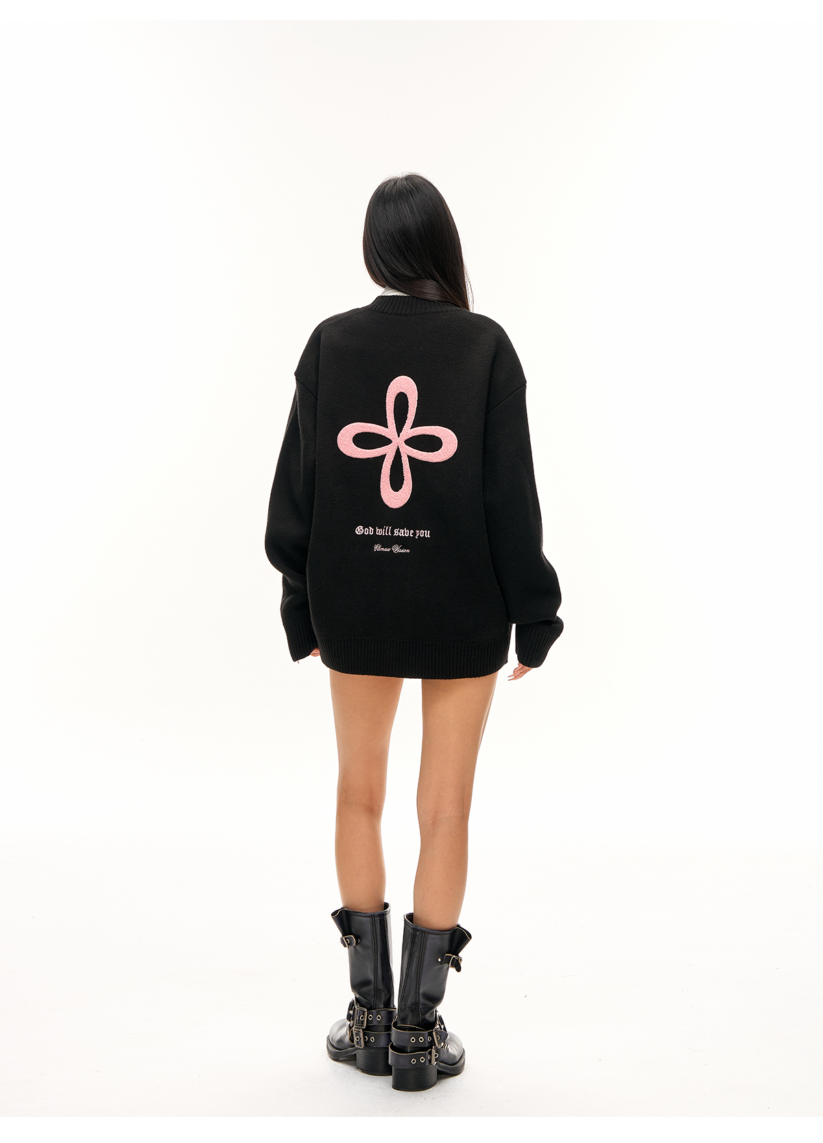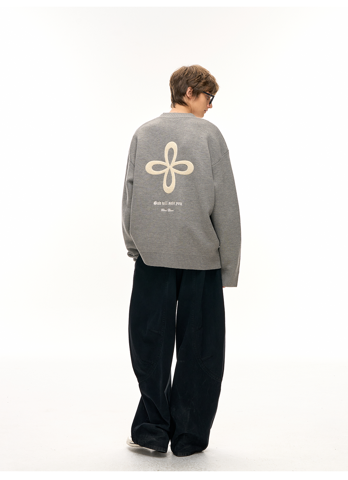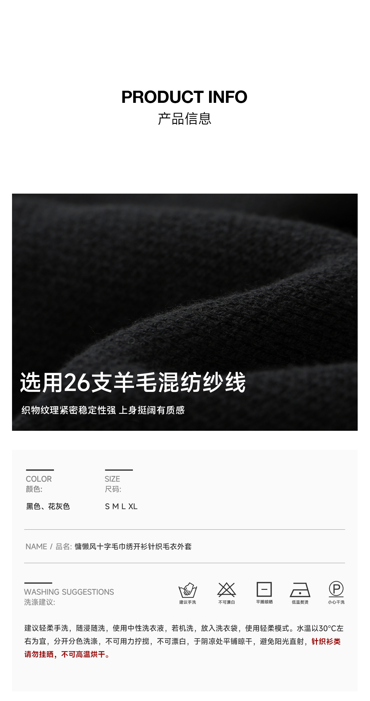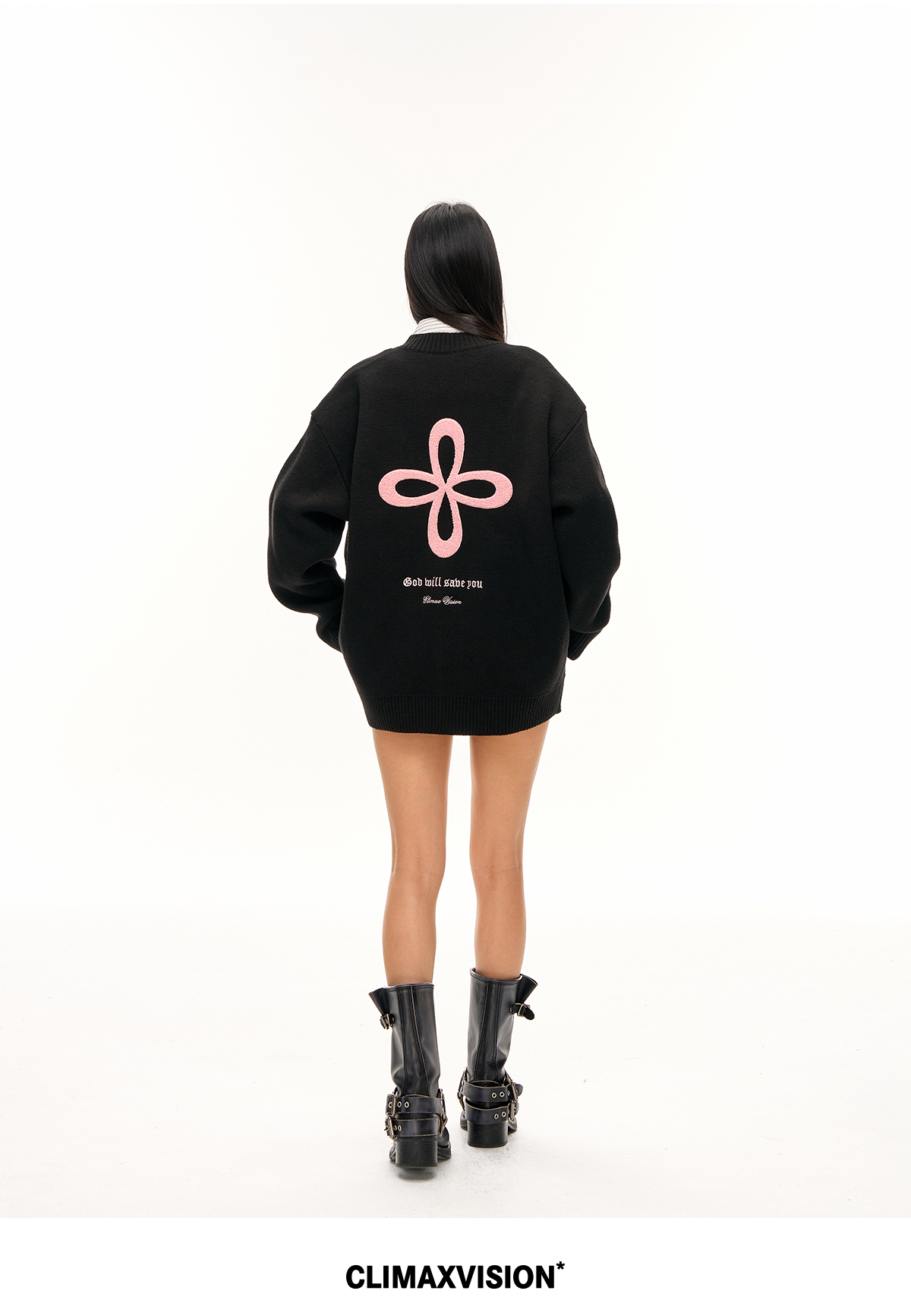 Climax Vision Lazy Style Towel Embroidered Cross Pattern Versatile Knitted Cardigan Sweater Unisex Style Jacket