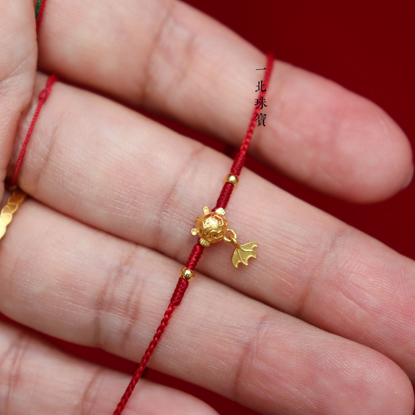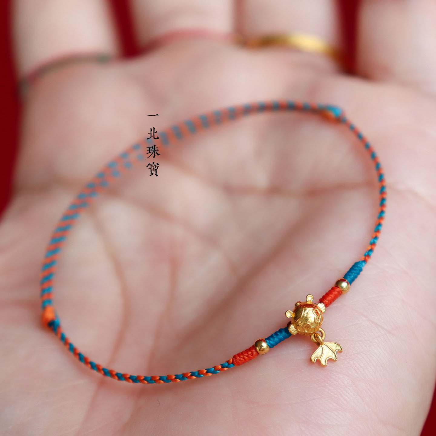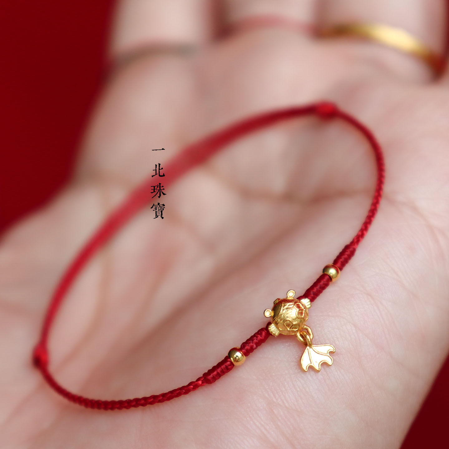 Pure Gold 999 [Golden Jade Alliance] Extremely Thin Red String Adjustable Handmade Finely Woven Gold Small Goldfish Bracelet for the Year of One's Birth Sign