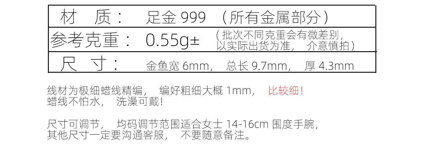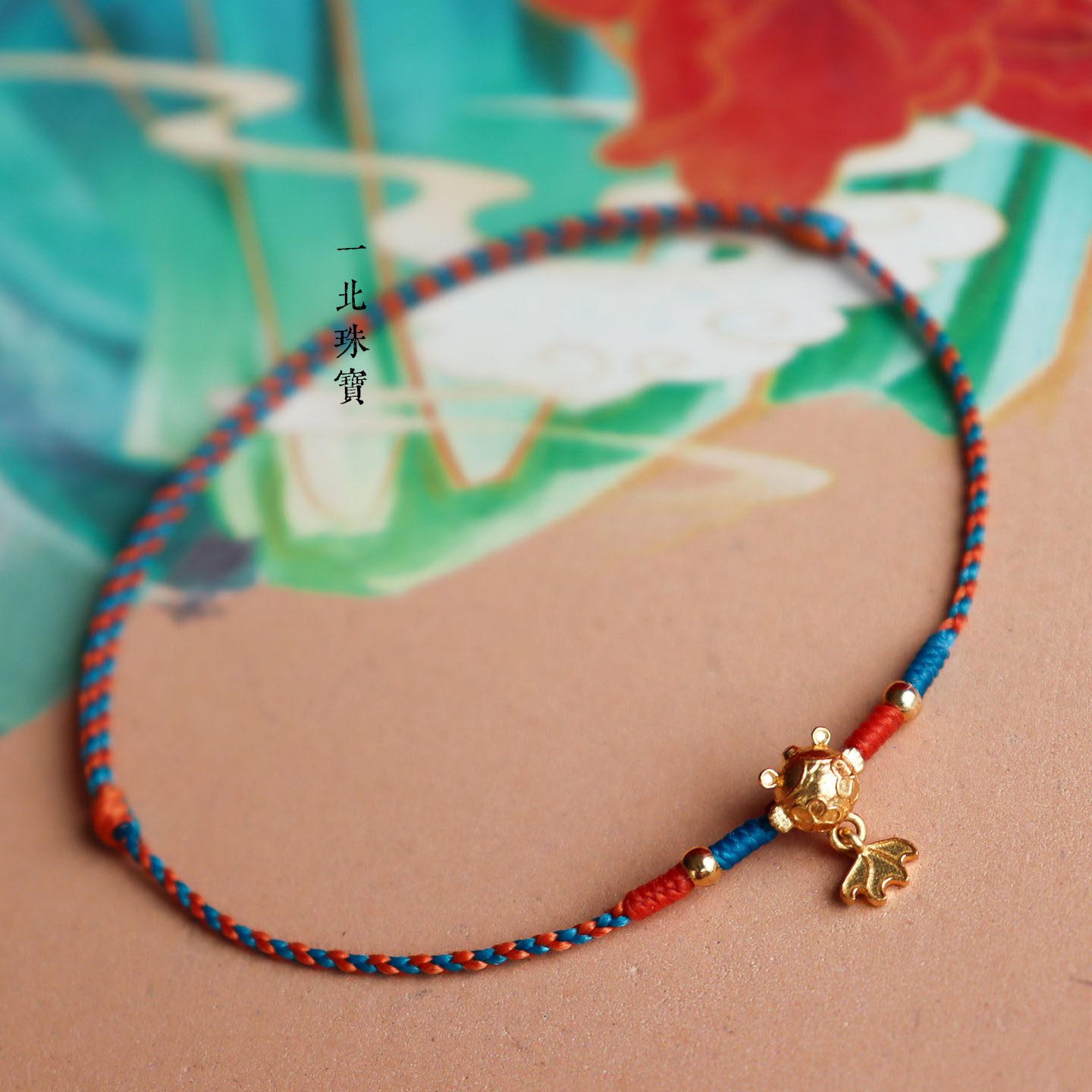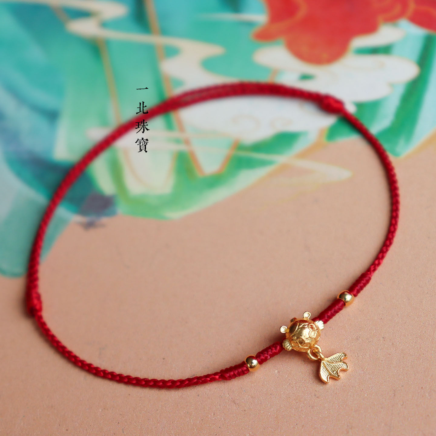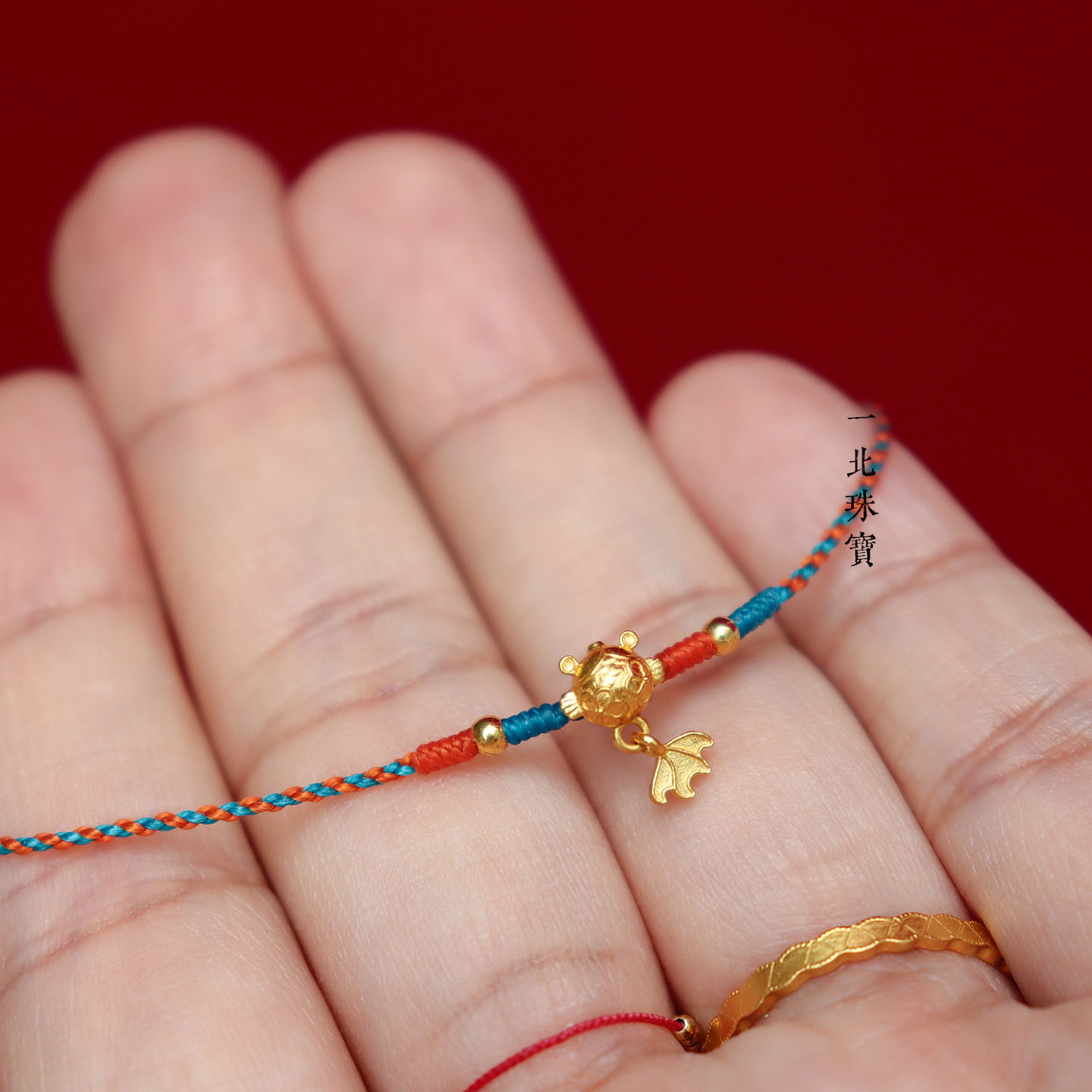 Pure Gold 999 [Golden Jade Alliance] Extremely Thin Red String Adjustable Handmade Finely Woven Gold Small Goldfish Bracelet for the Year of One's Birth Sign