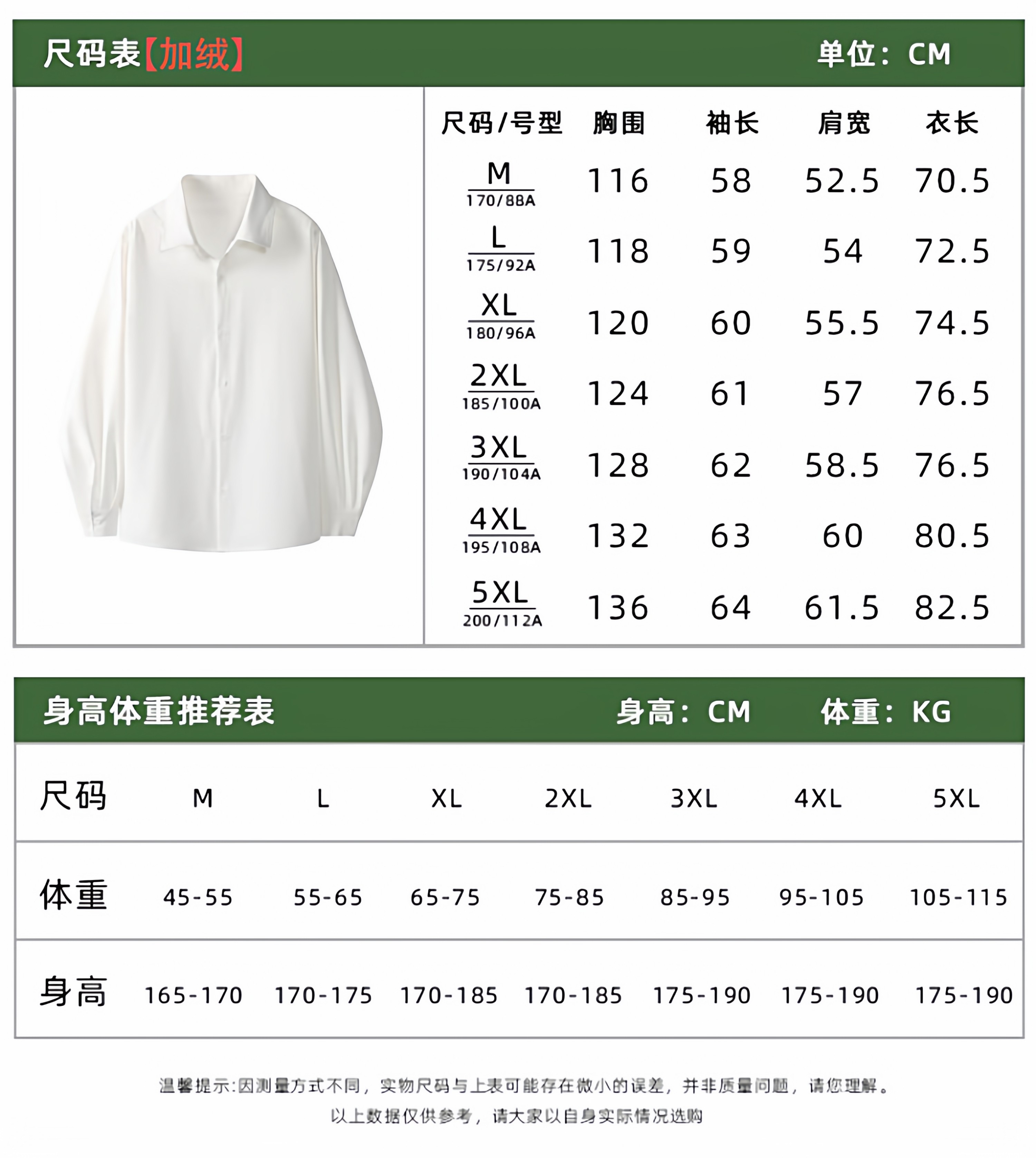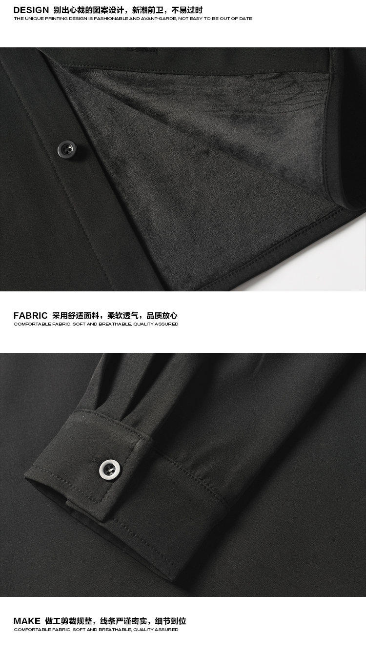 College Style White Shirt for Men, Long-Sleeved Formal Wear, Fleece-Lined and Thickened, High-End Shirt for Layering under a Suit, Winter Base Layer