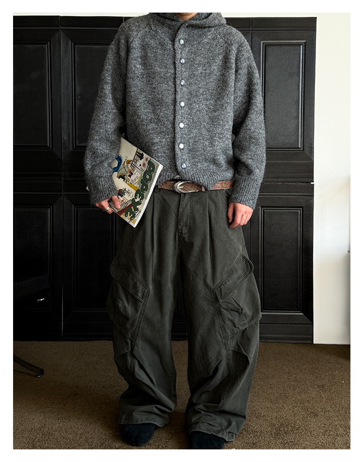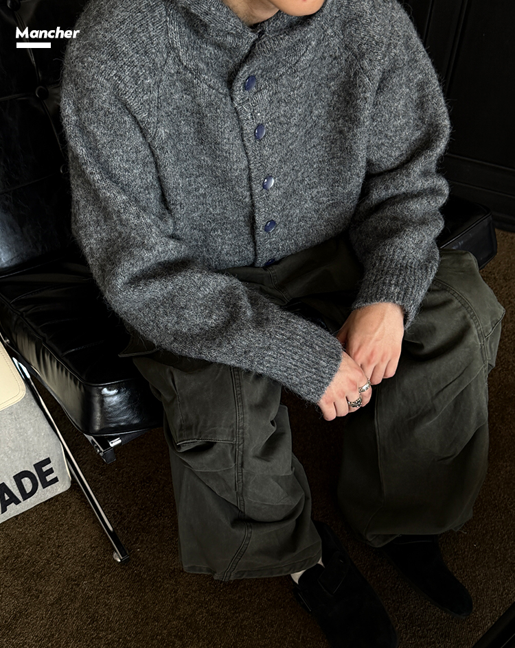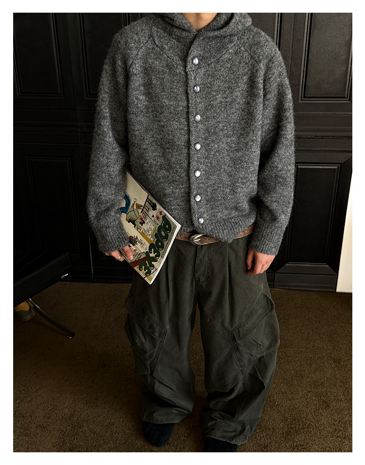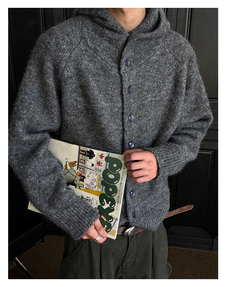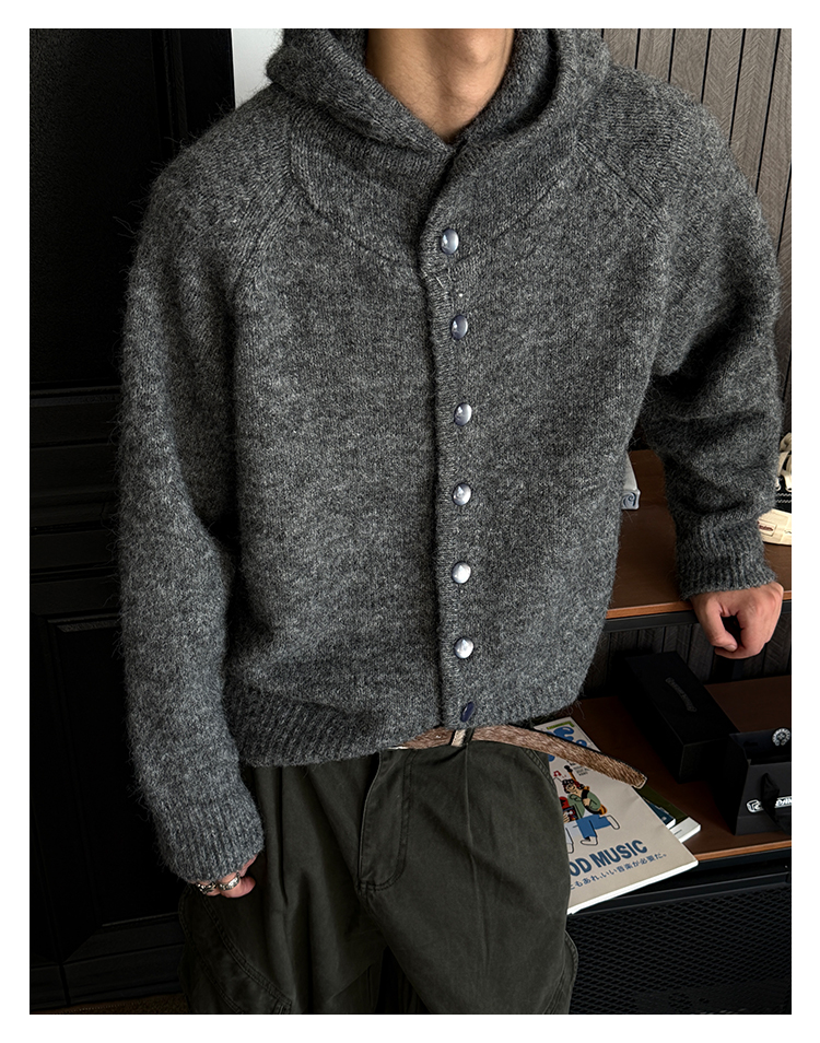 Mancher 925g Wool Blend Hooded Button Sweater for Men and Women, Casual and Relaxed Short Knit Jacket Trendy