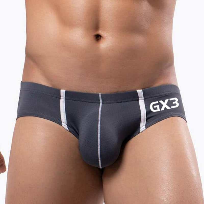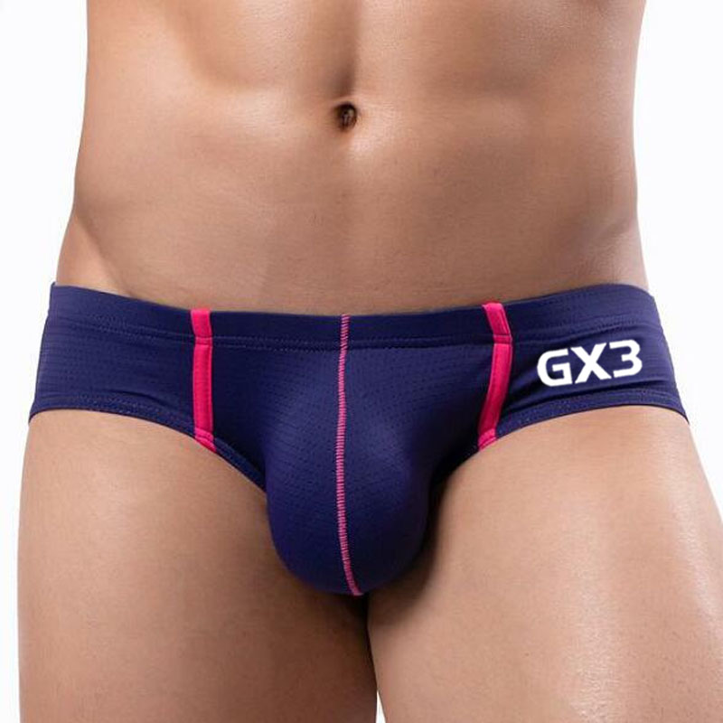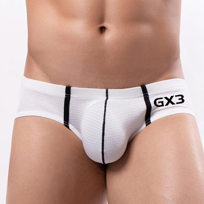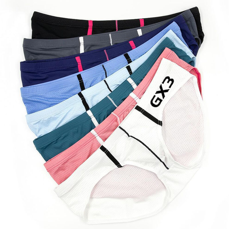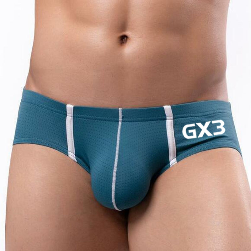 GX3 Japanese Men Large Pocket U Convex Breathable Briefs Mesh Sports sexy Low Waist Plaid Inner Pants Summer