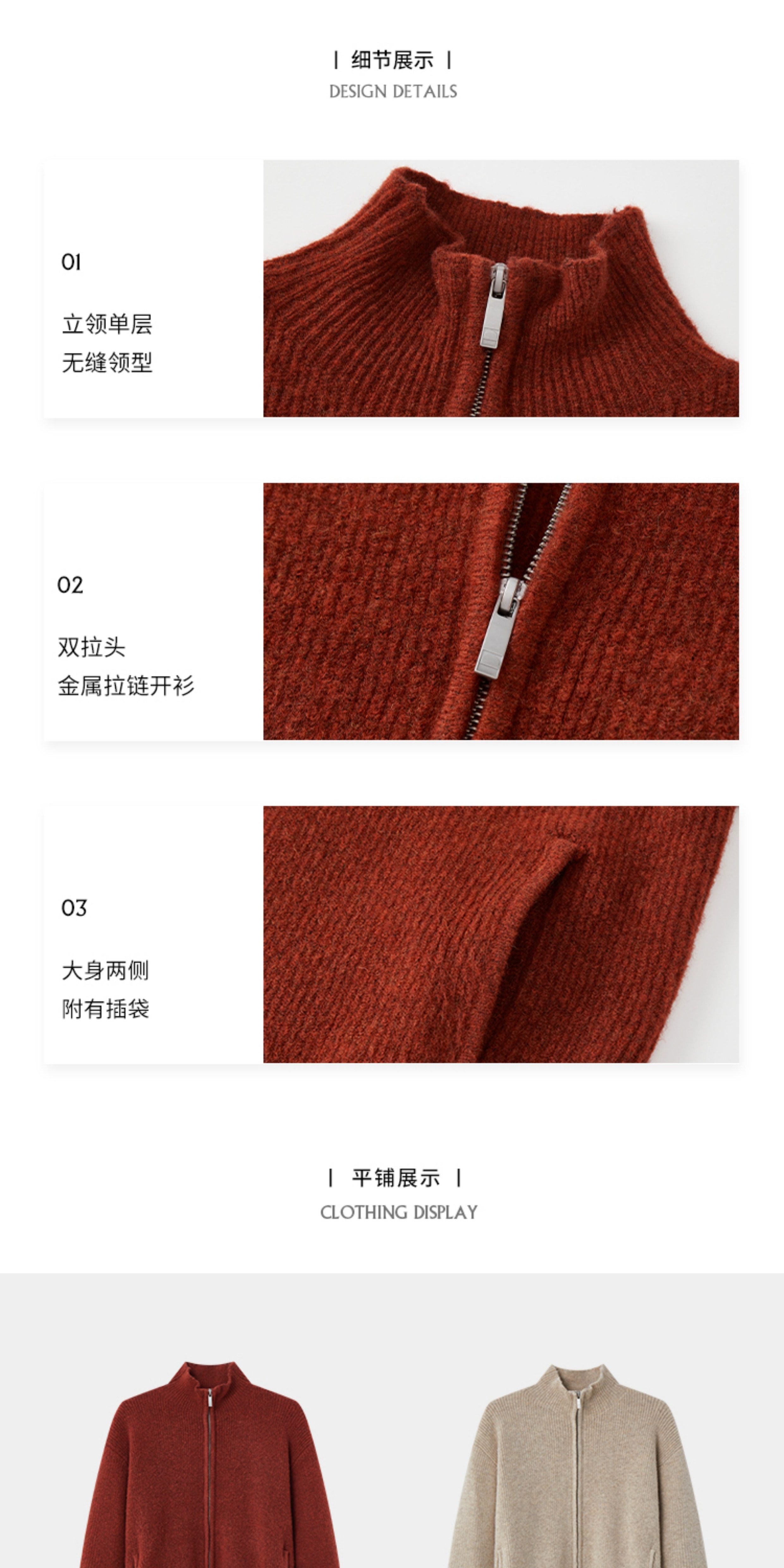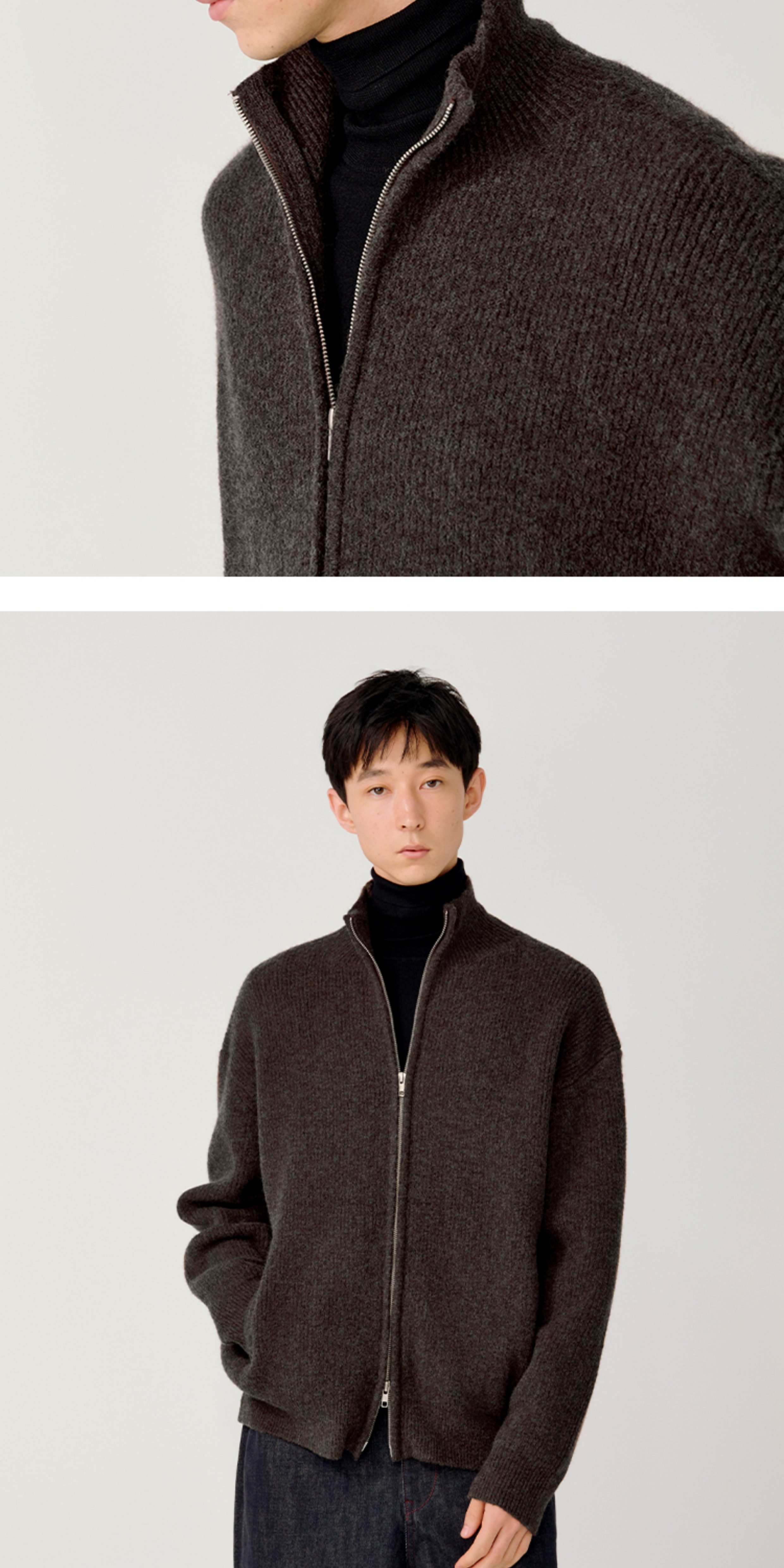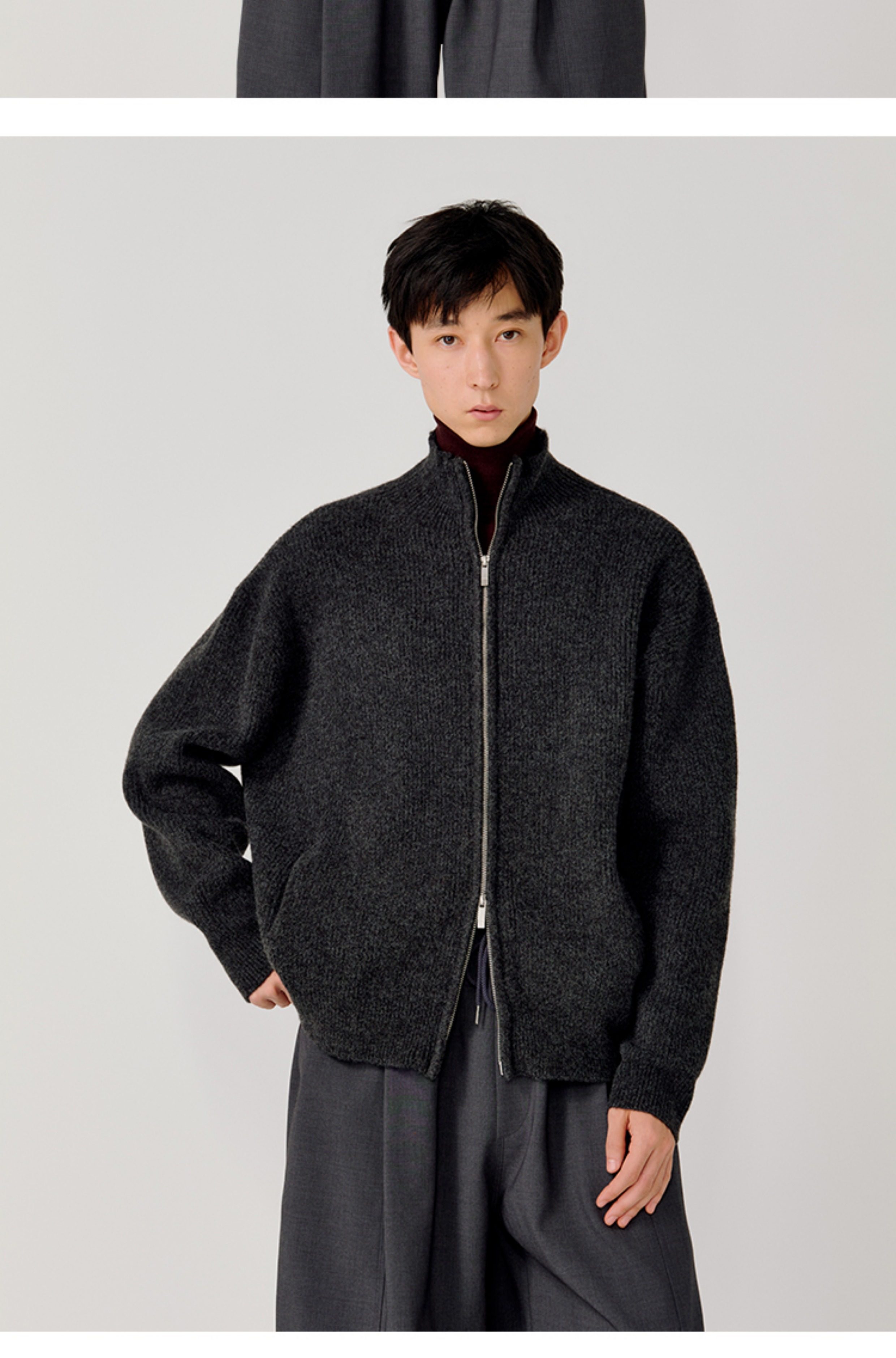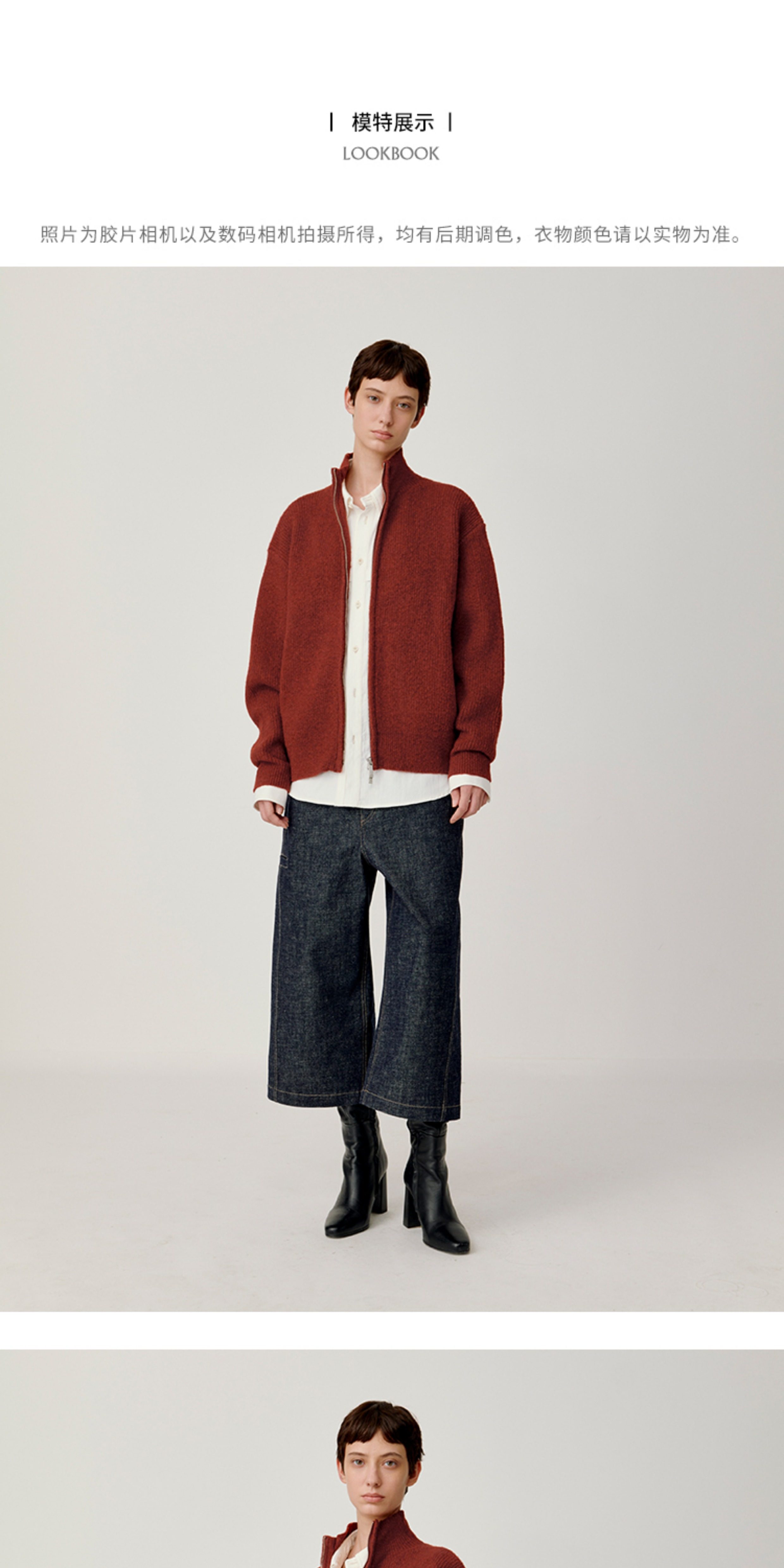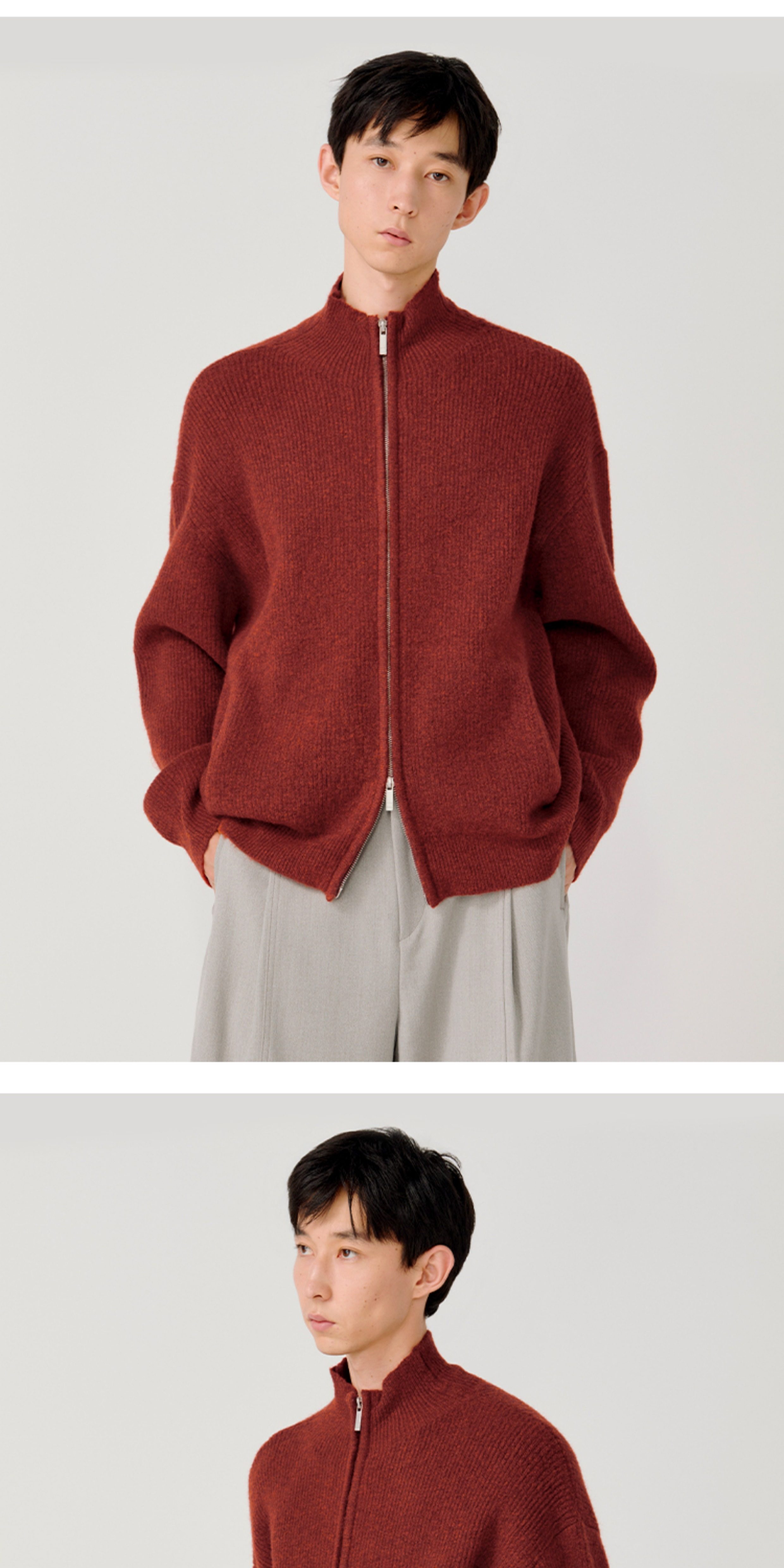 Opicloth/Opic Four-Color Stand-Up Collar Double Zipper Loose Skin-Friendly Basic Casual Long-Sleeve Cardigan Sweater Jacket