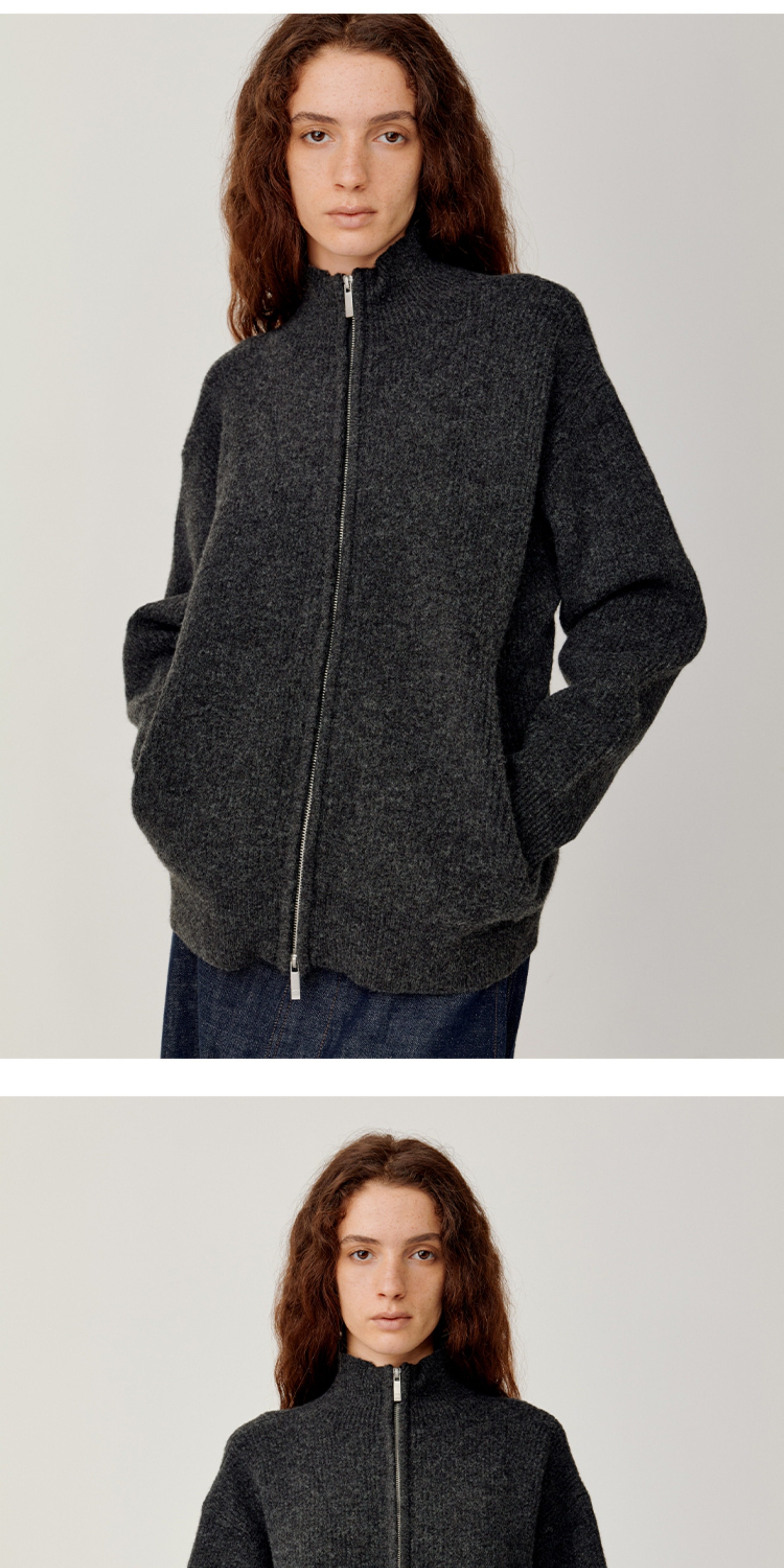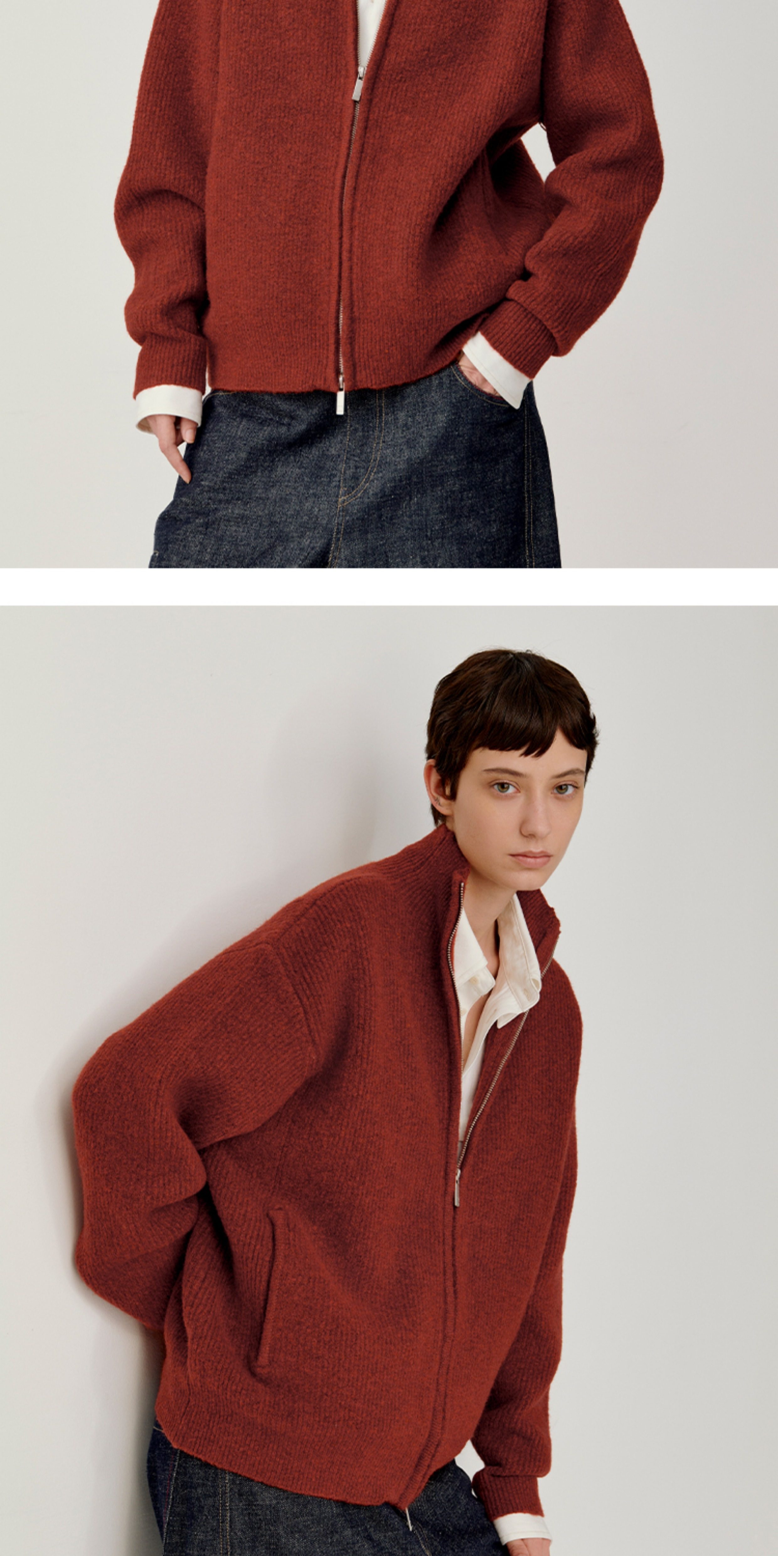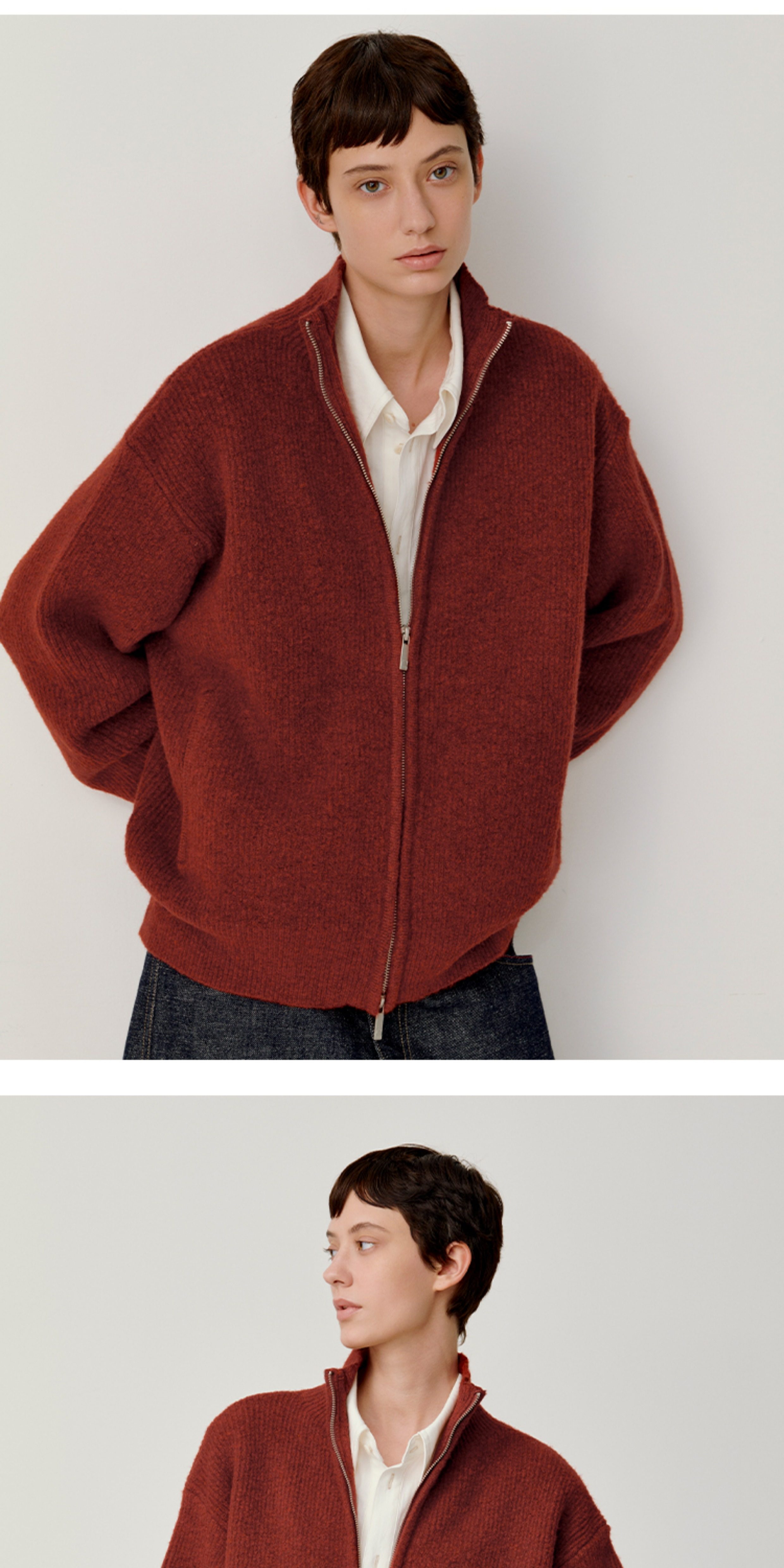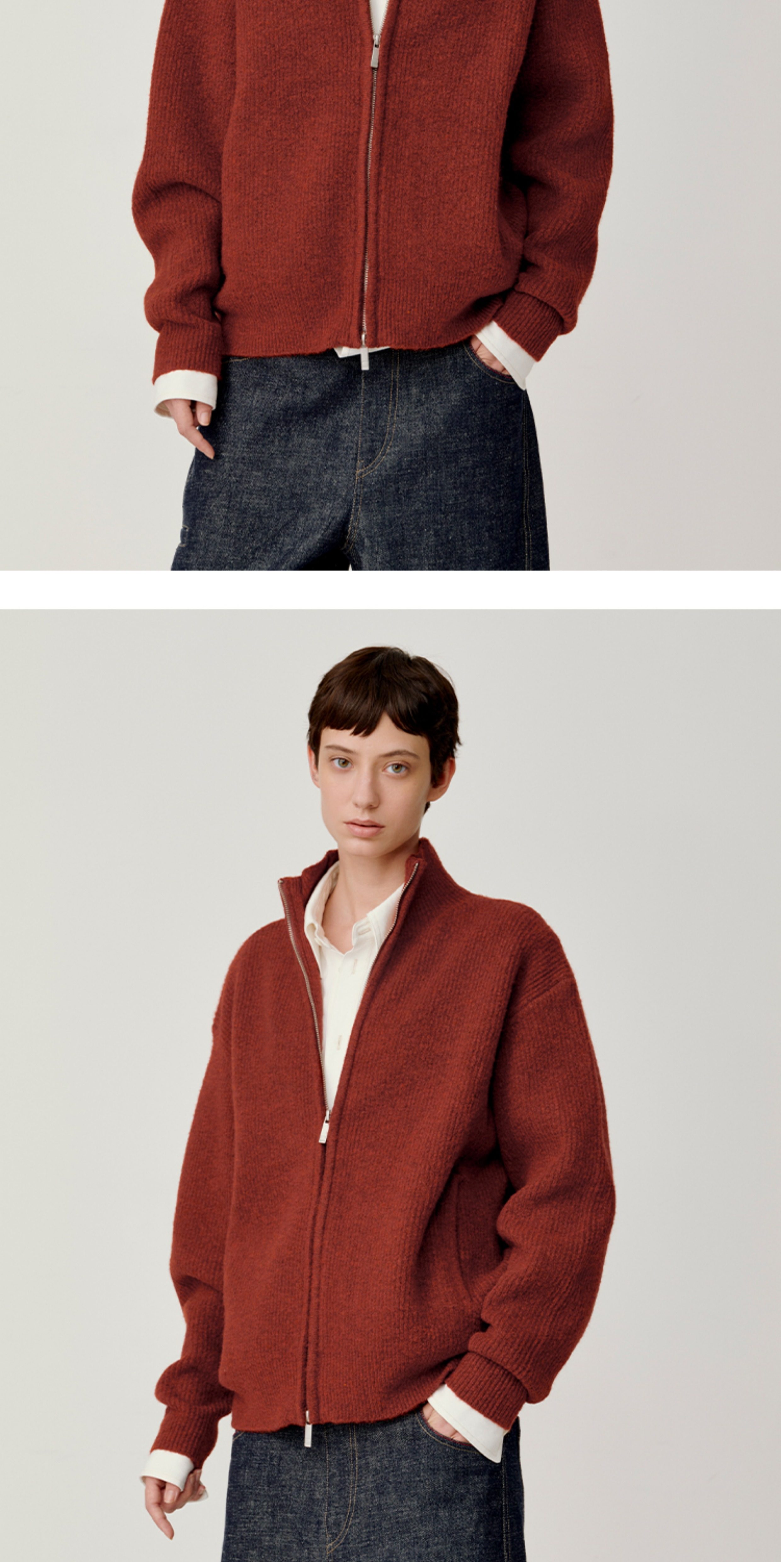 Opicloth/Opic Four-Color Stand-Up Collar Double Zipper Loose Skin-Friendly Basic Casual Long-Sleeve Cardigan Sweater Jacket