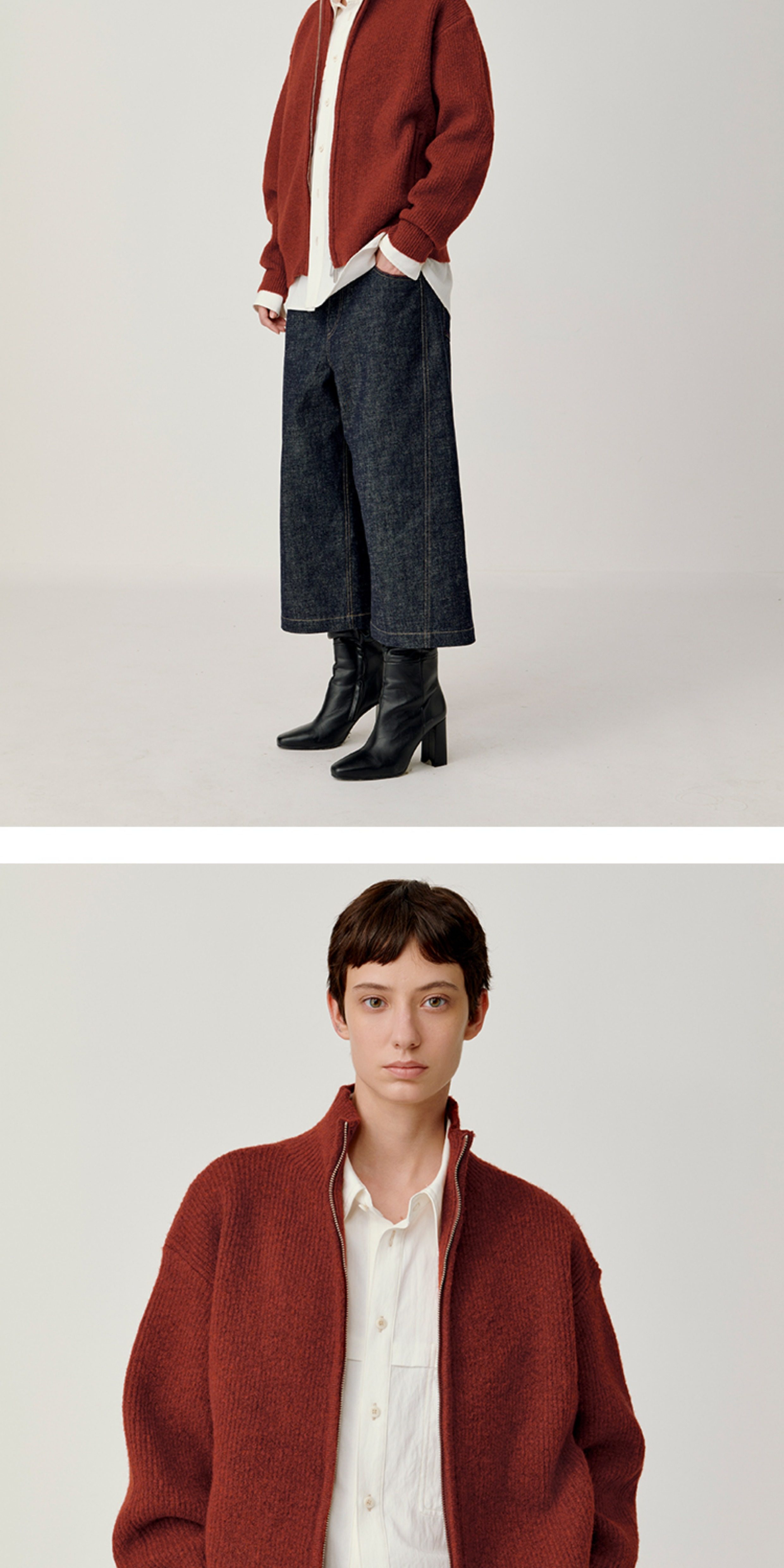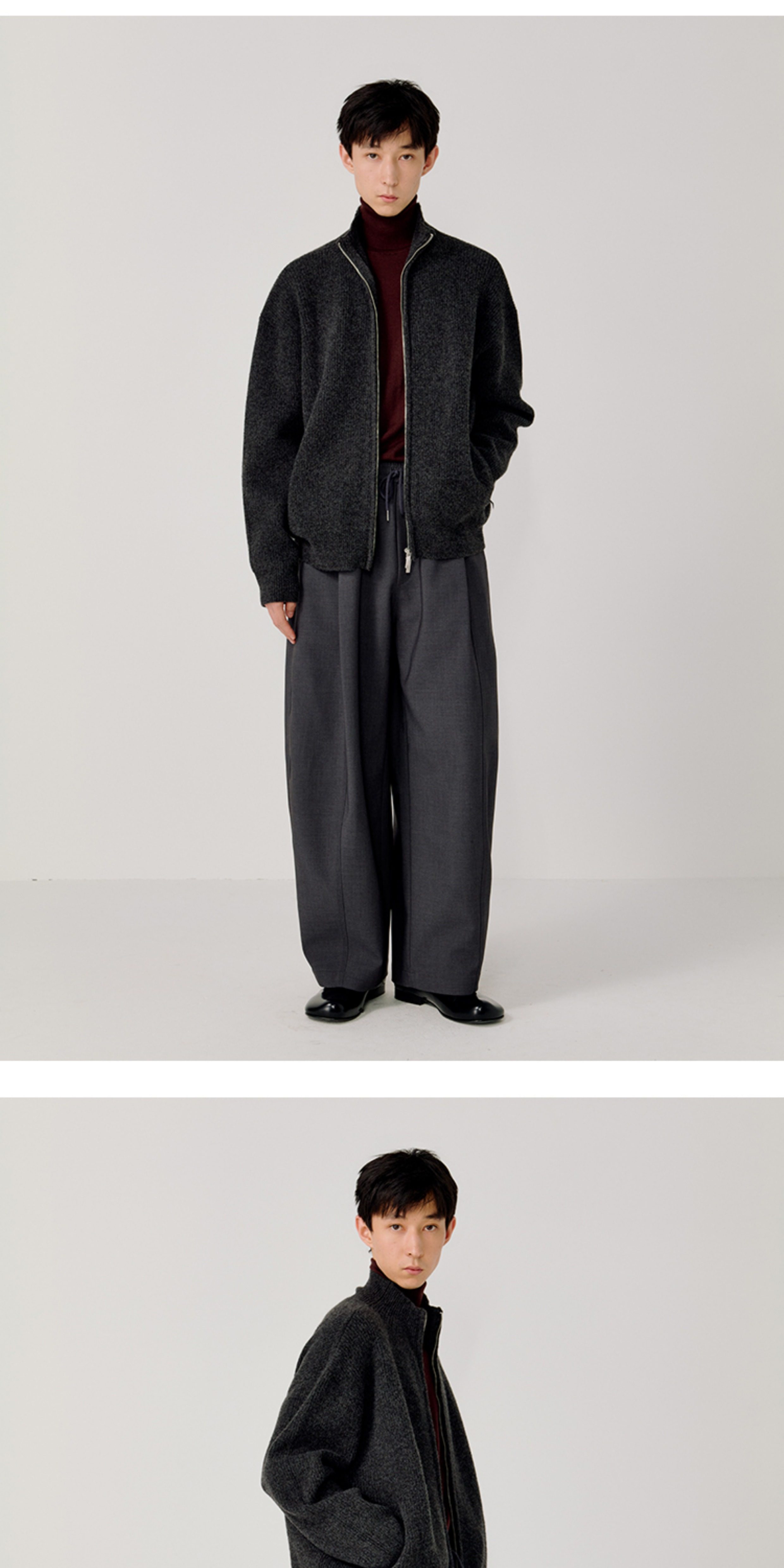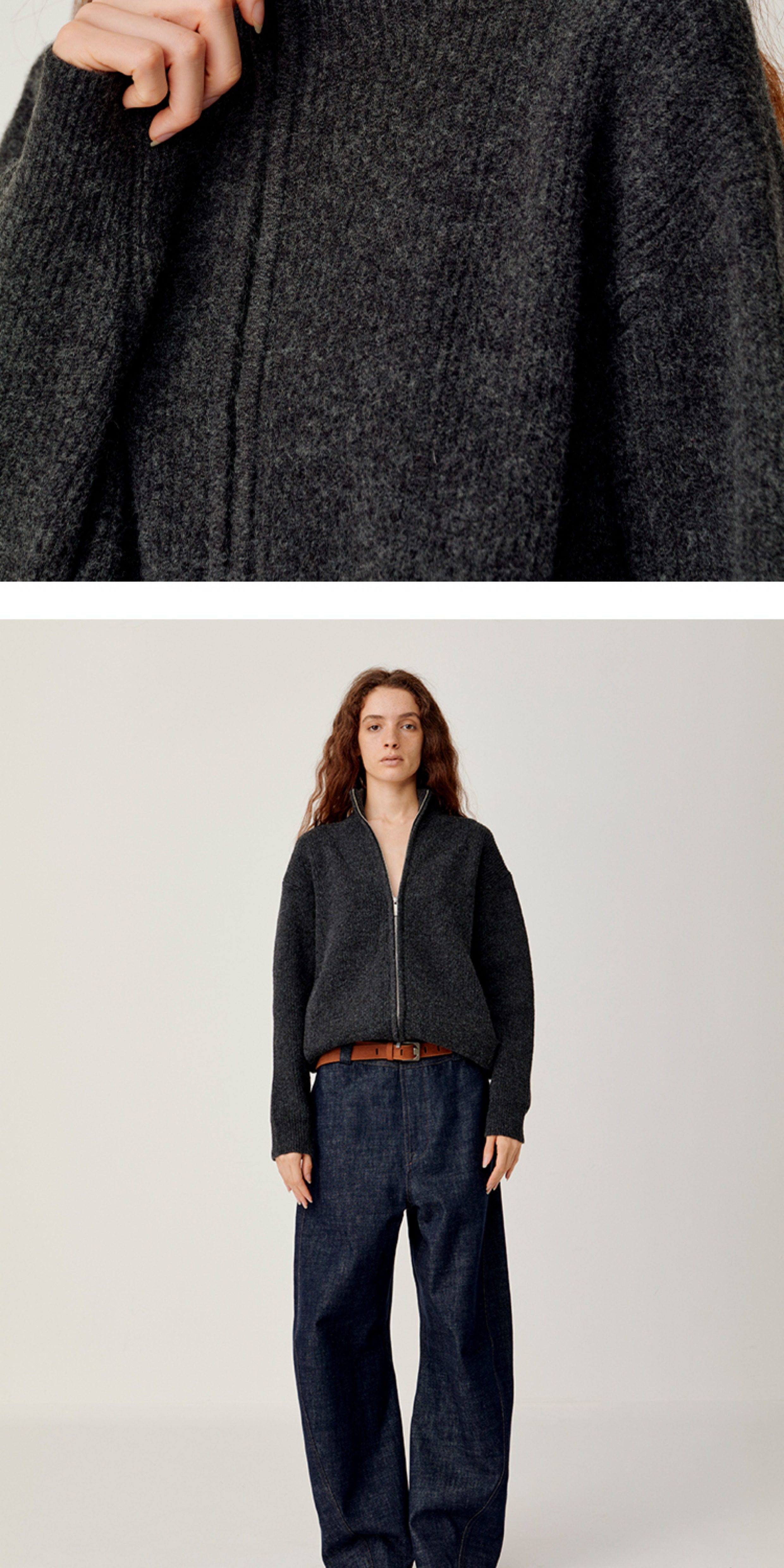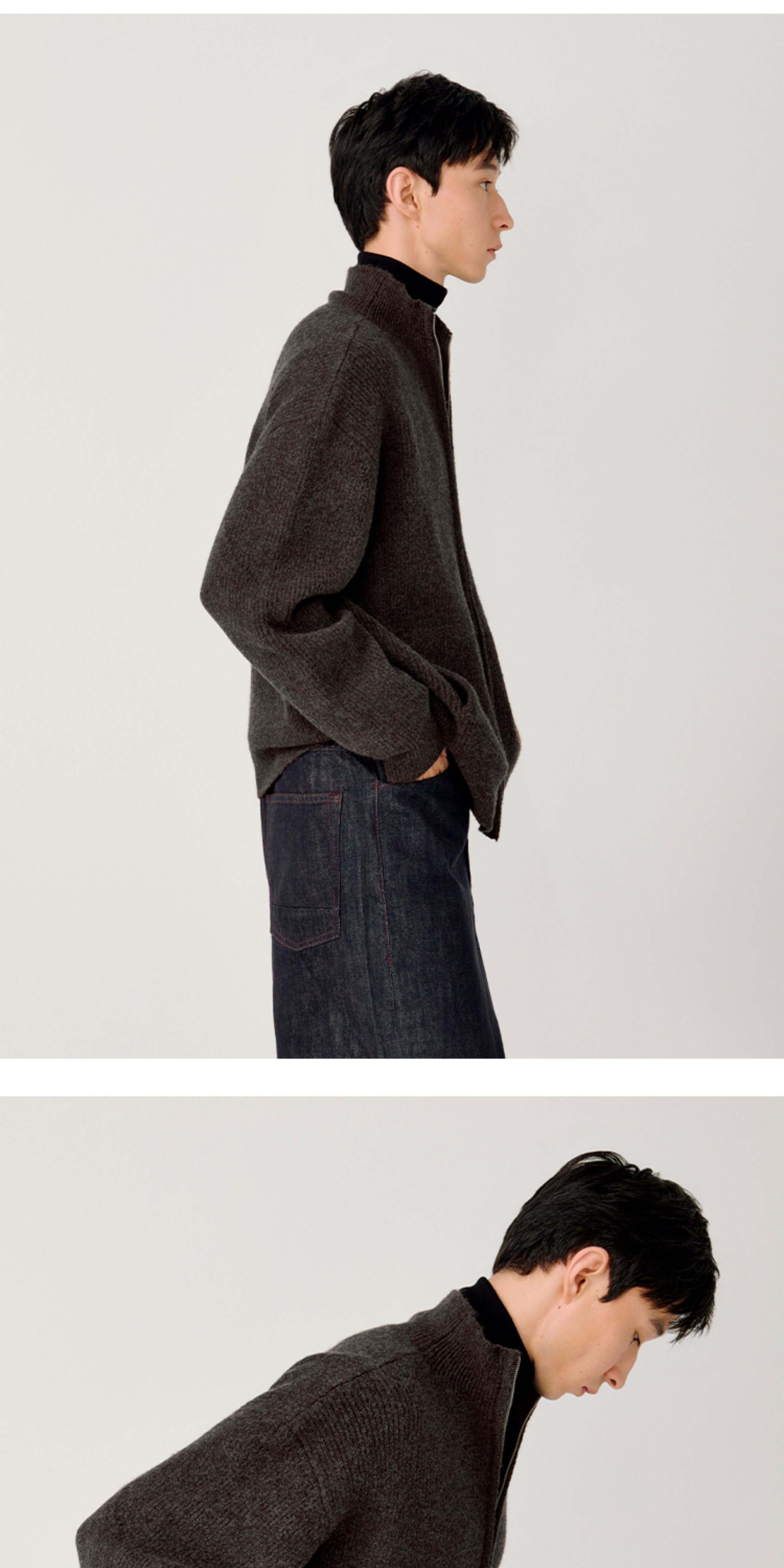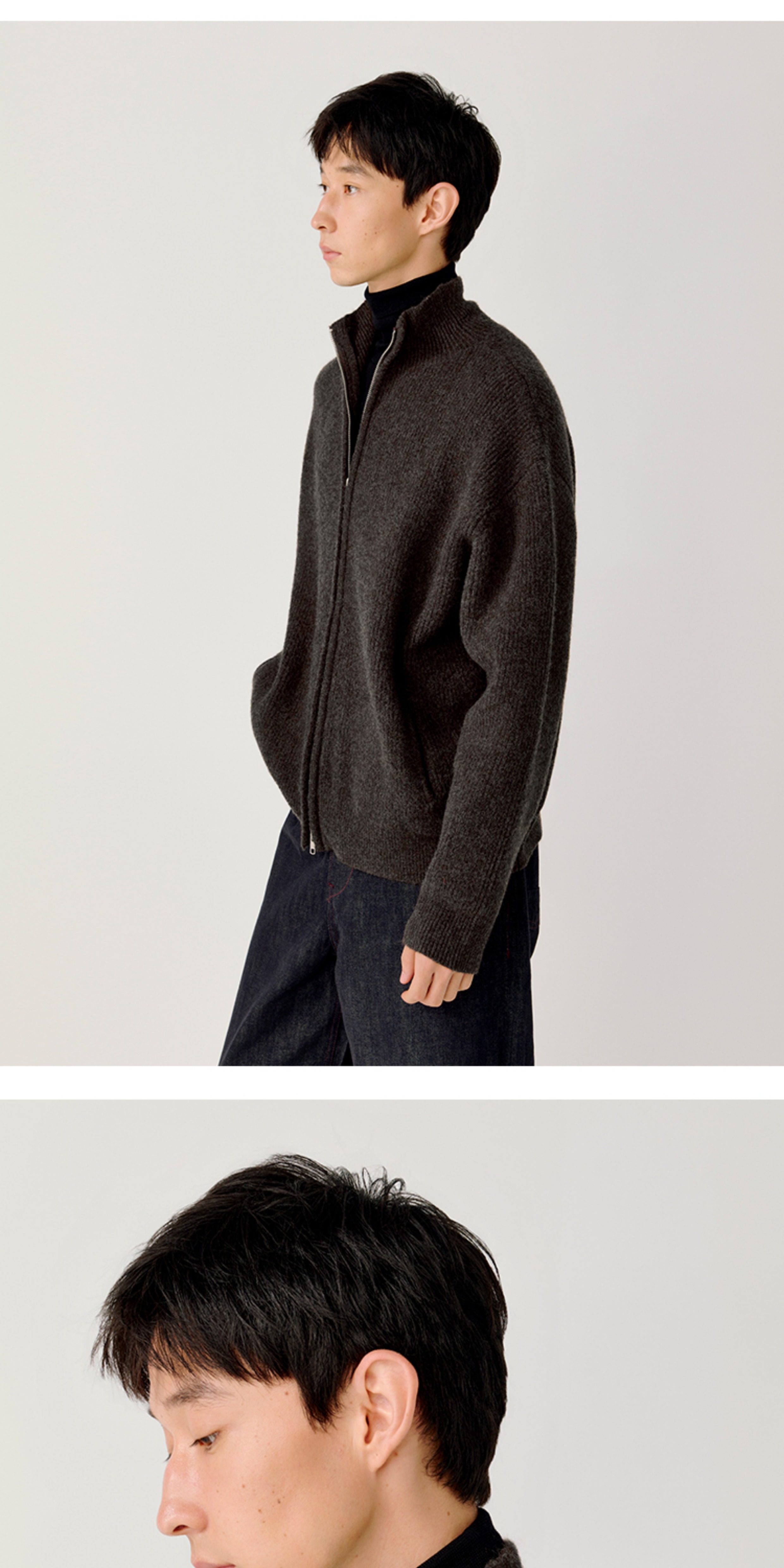 Opicloth/Opic Four-Color Stand-Up Collar Double Zipper Loose Skin-Friendly Basic Casual Long-Sleeve Cardigan Sweater Jacket