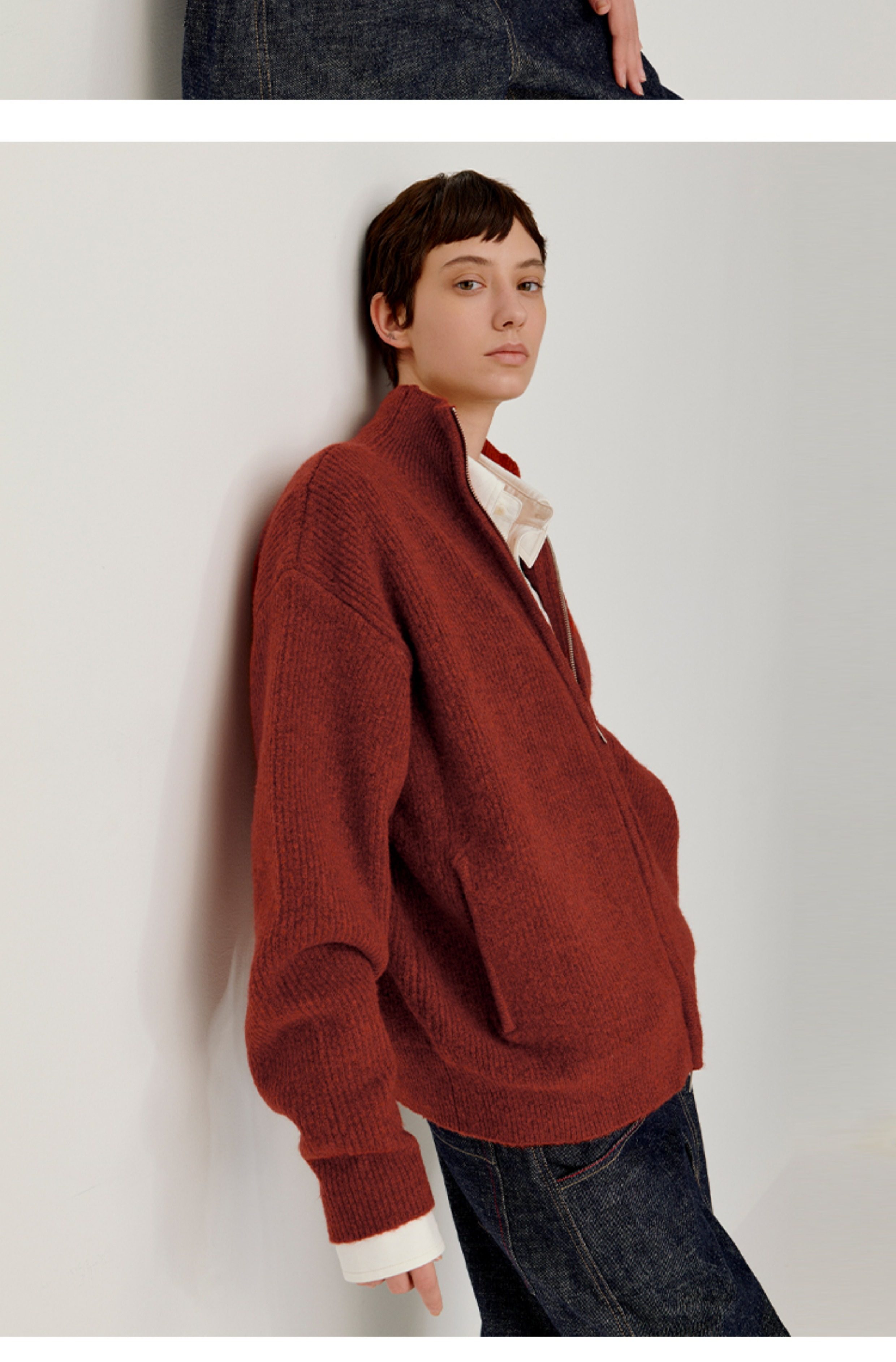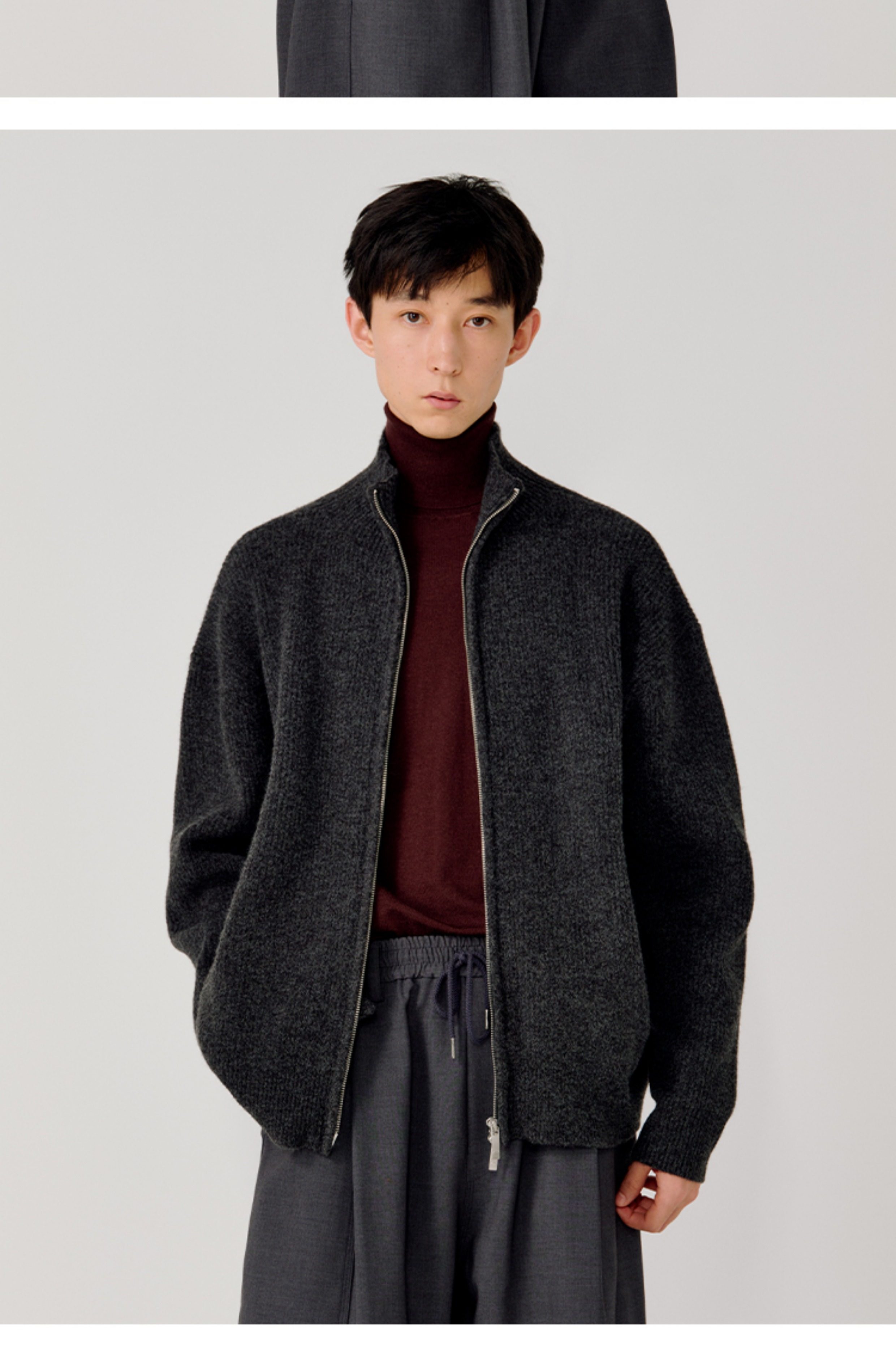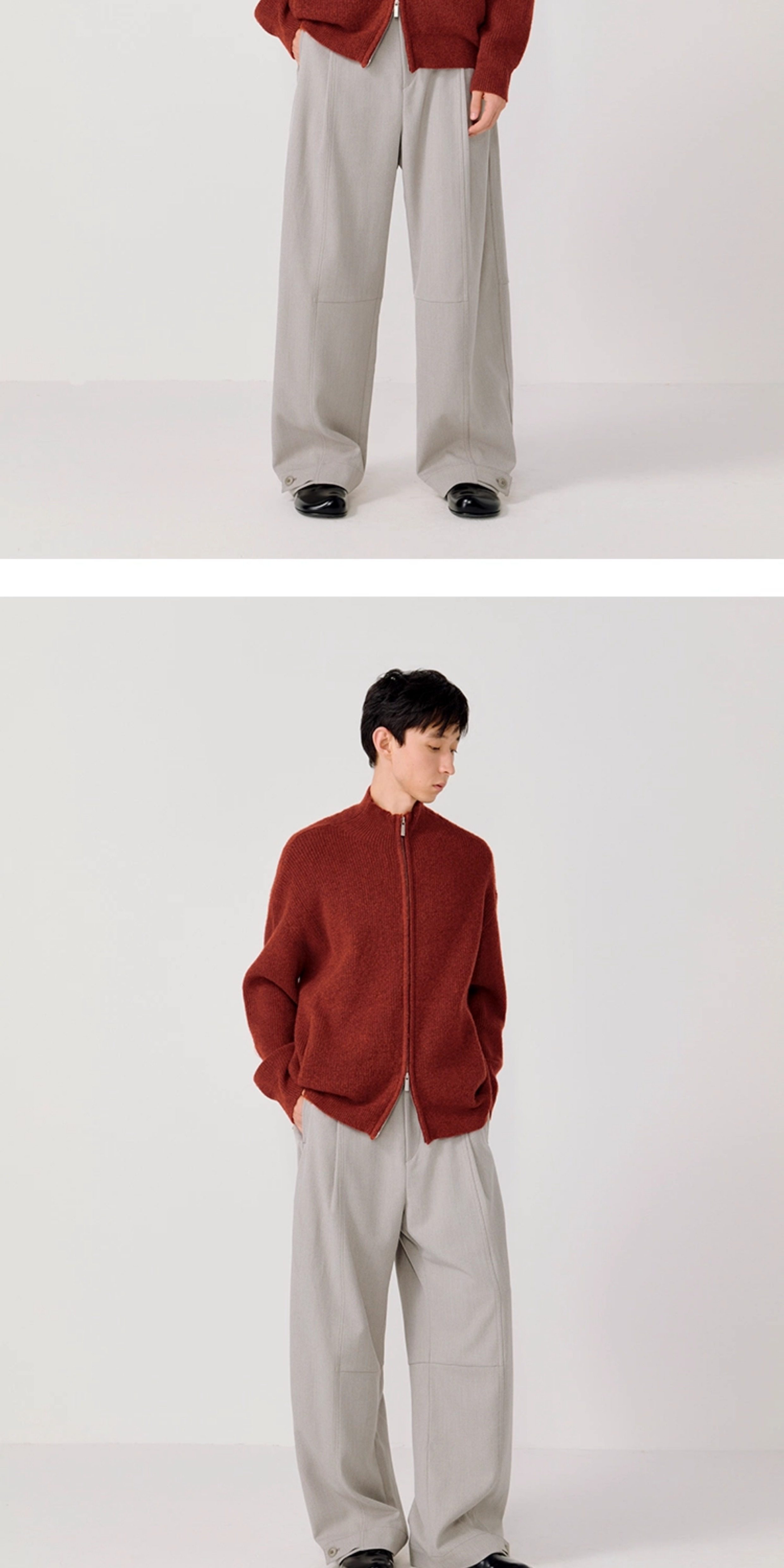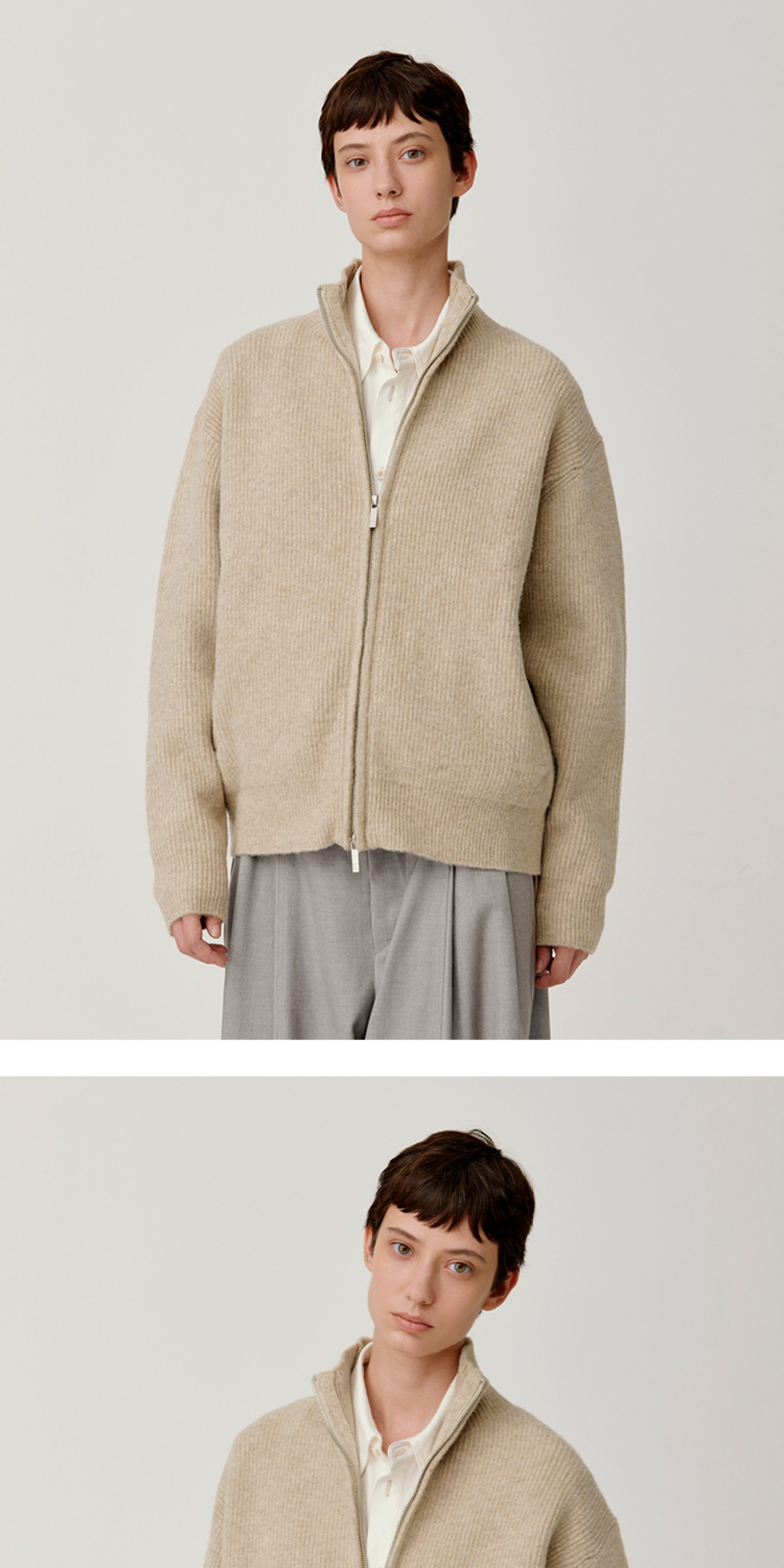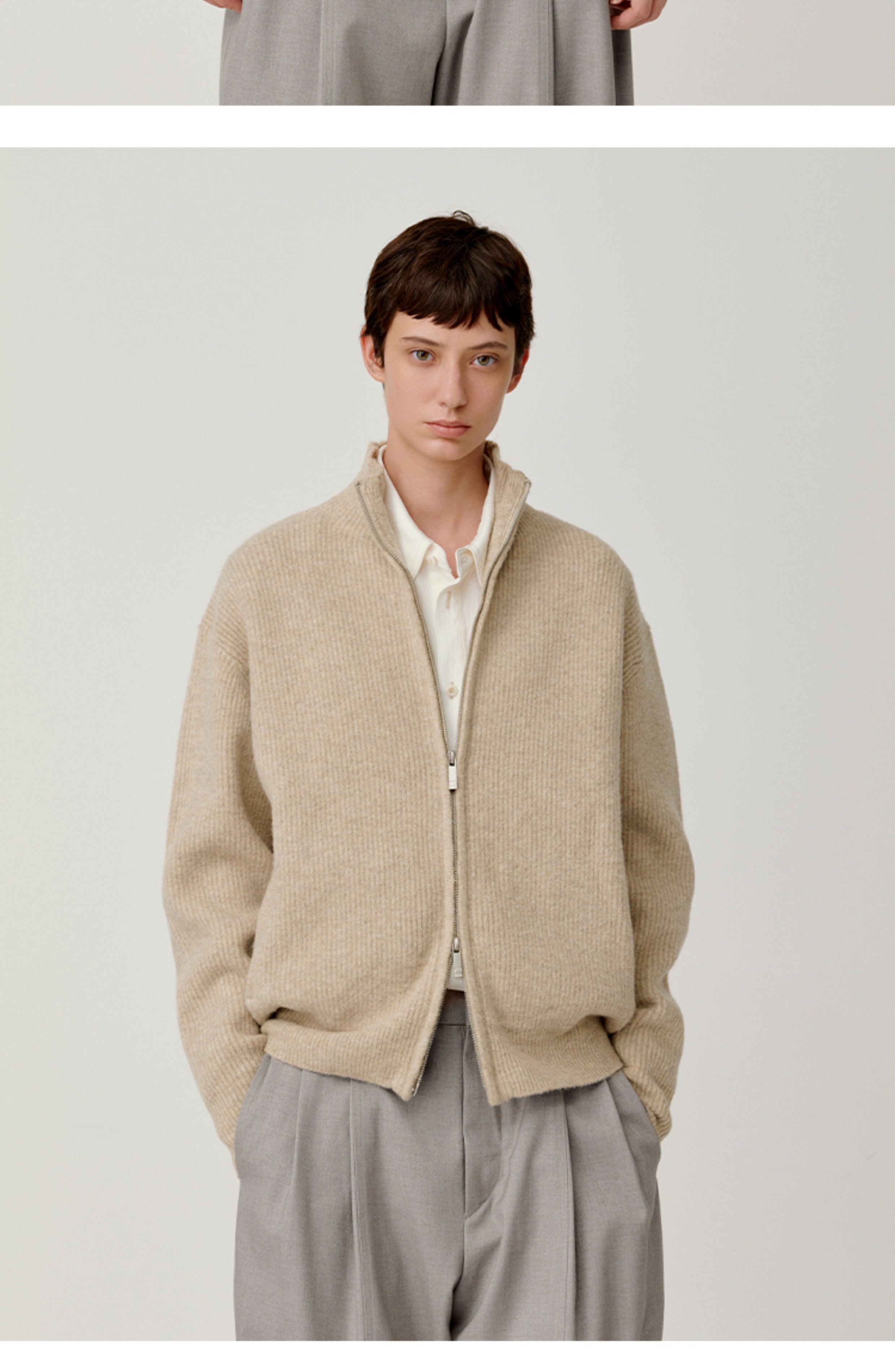Opicloth/Opic Four-Color Stand-Up Collar Double Zipper Loose Skin-Friendly Basic Casual Long-Sleeve Cardigan Sweater Jacket