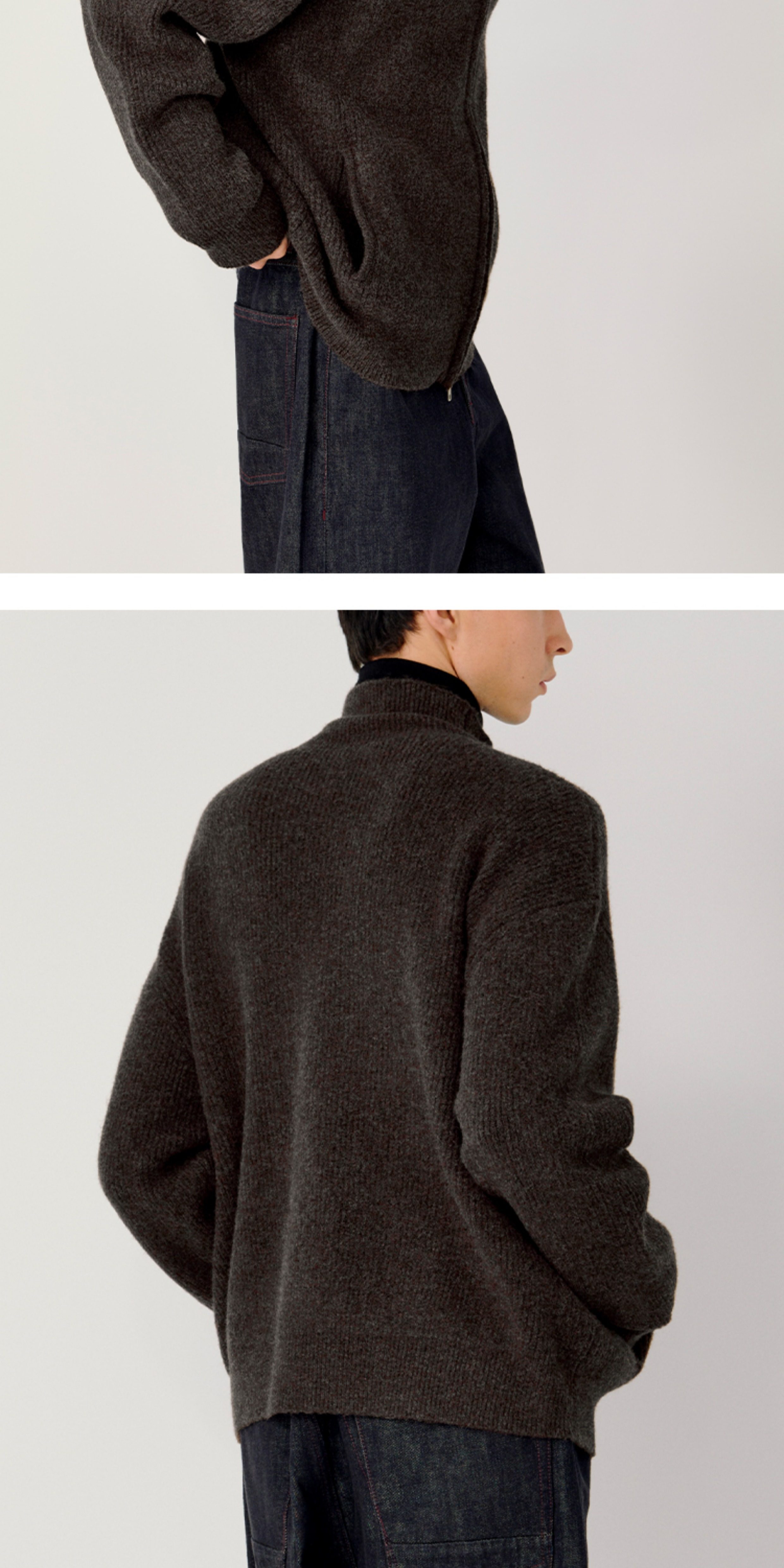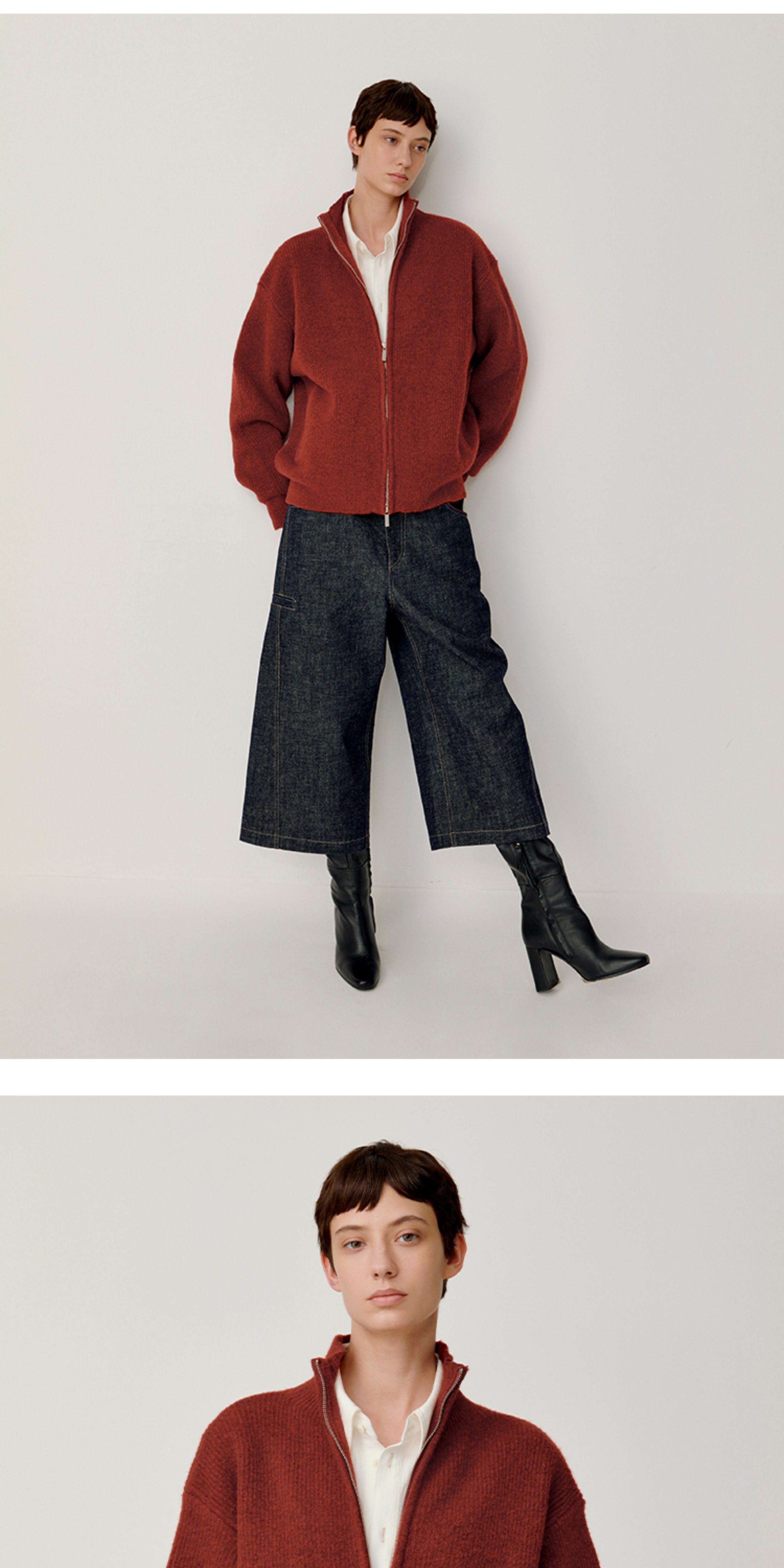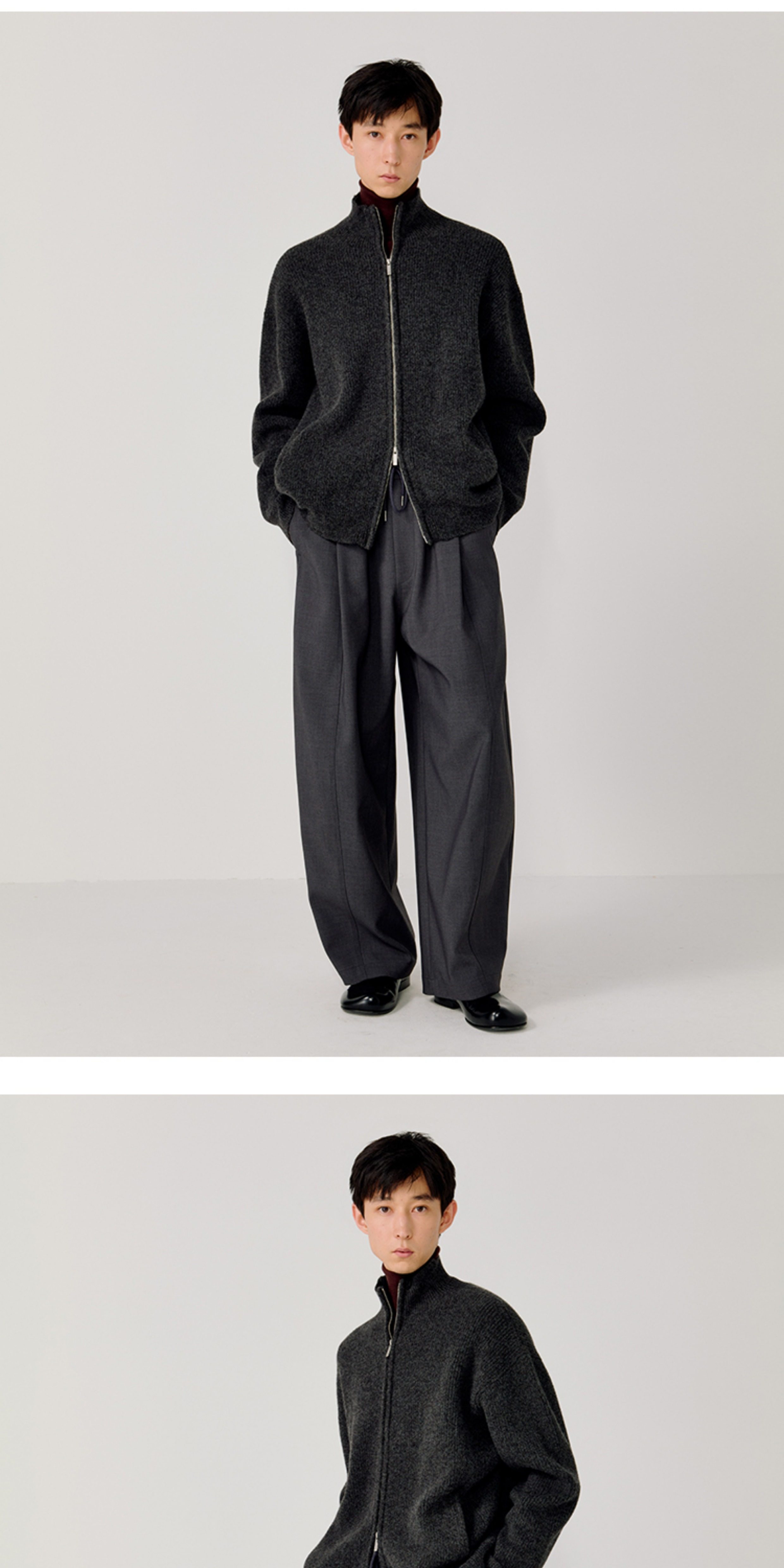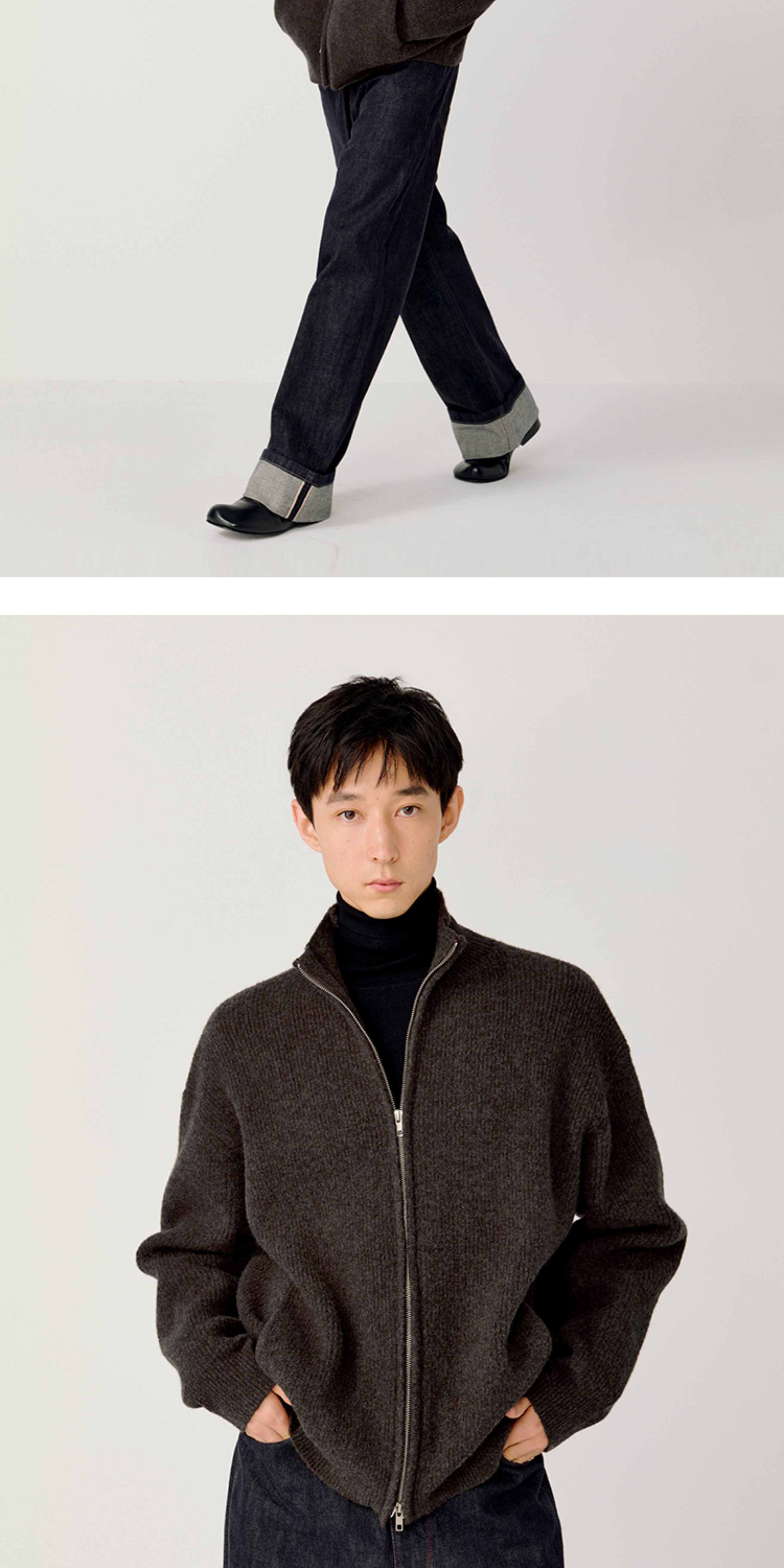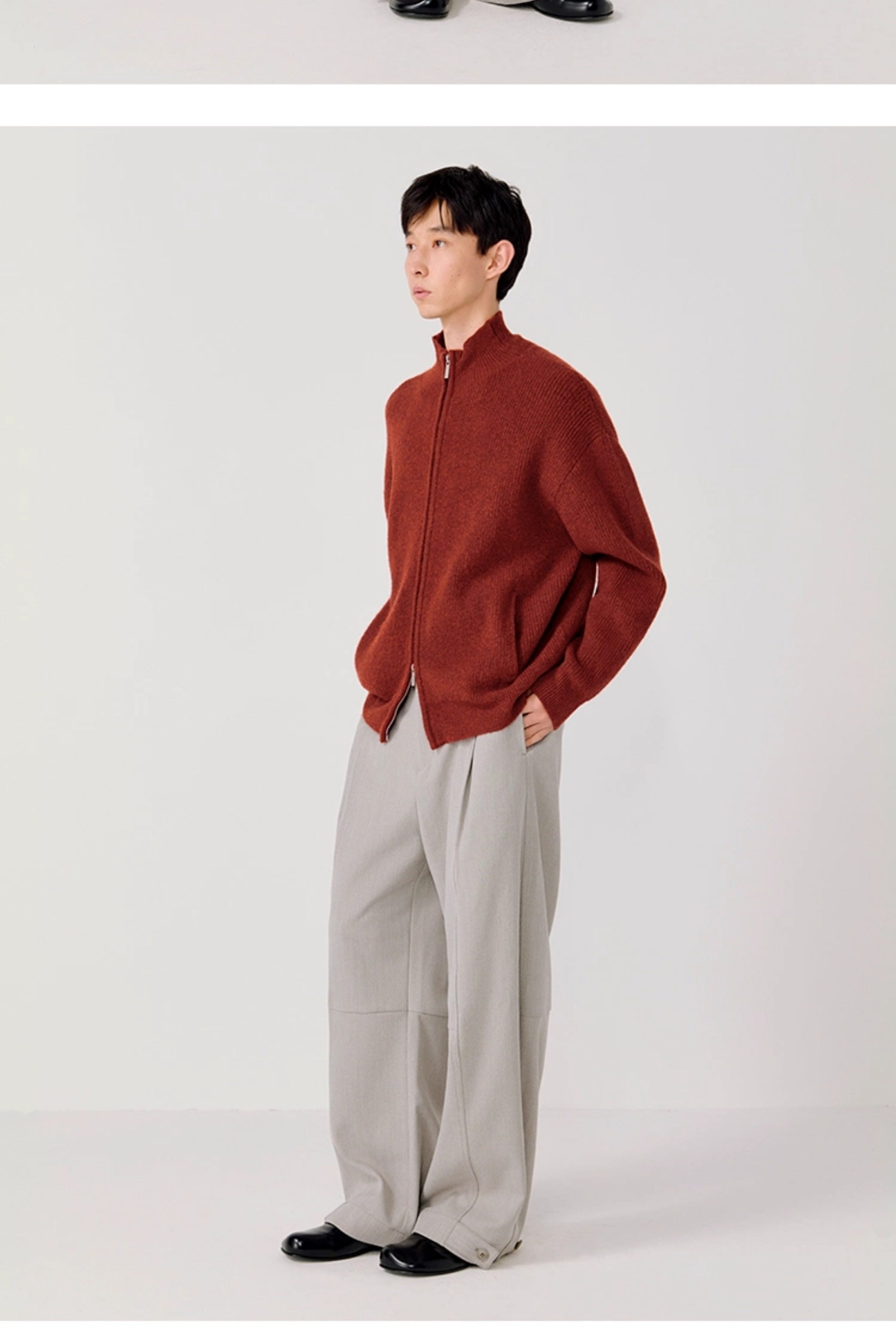 Opicloth/Opic Four-Color Stand-Up Collar Double Zipper Loose Skin-Friendly Basic Casual Long-Sleeve Cardigan Sweater Jacket
