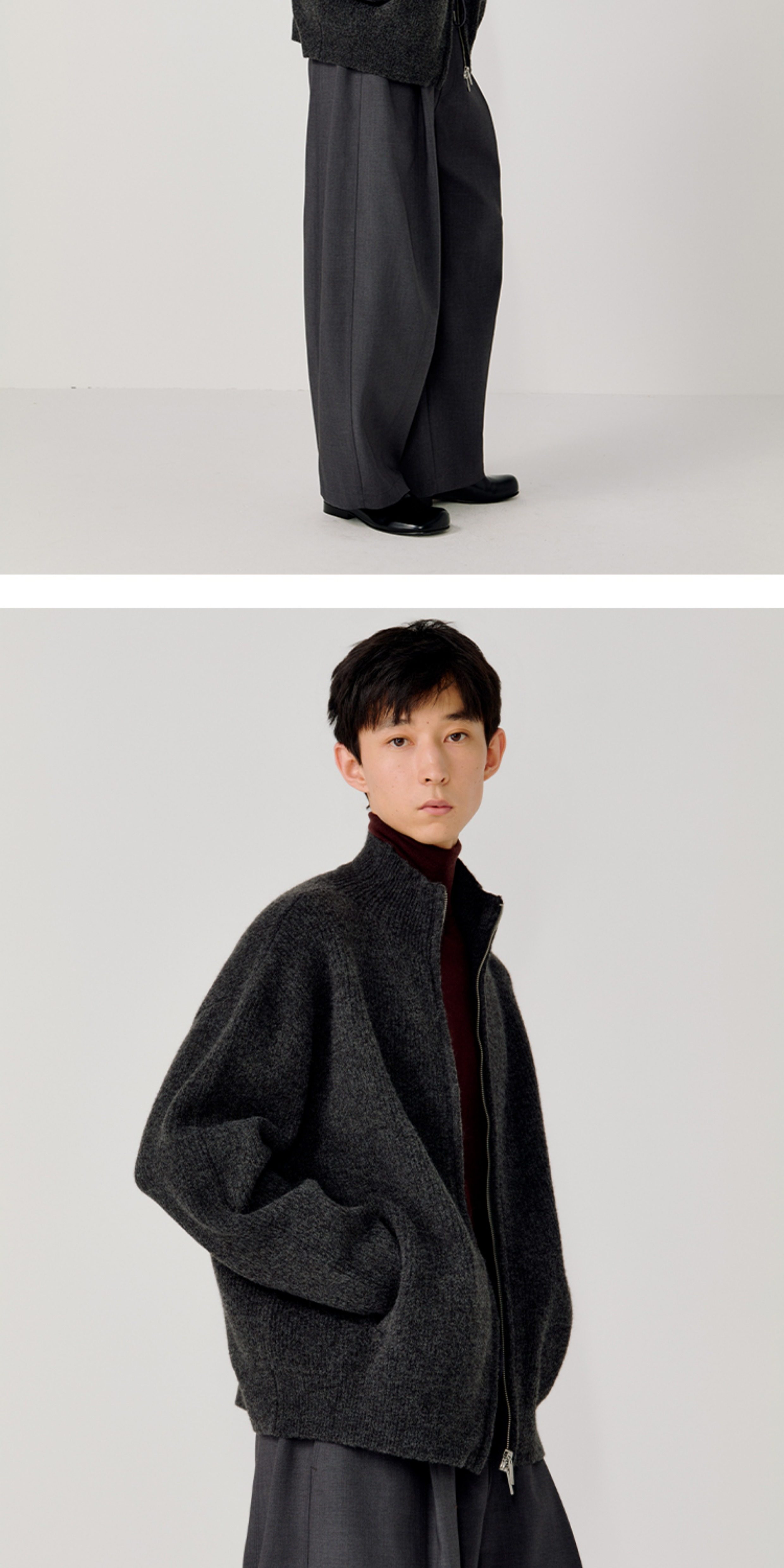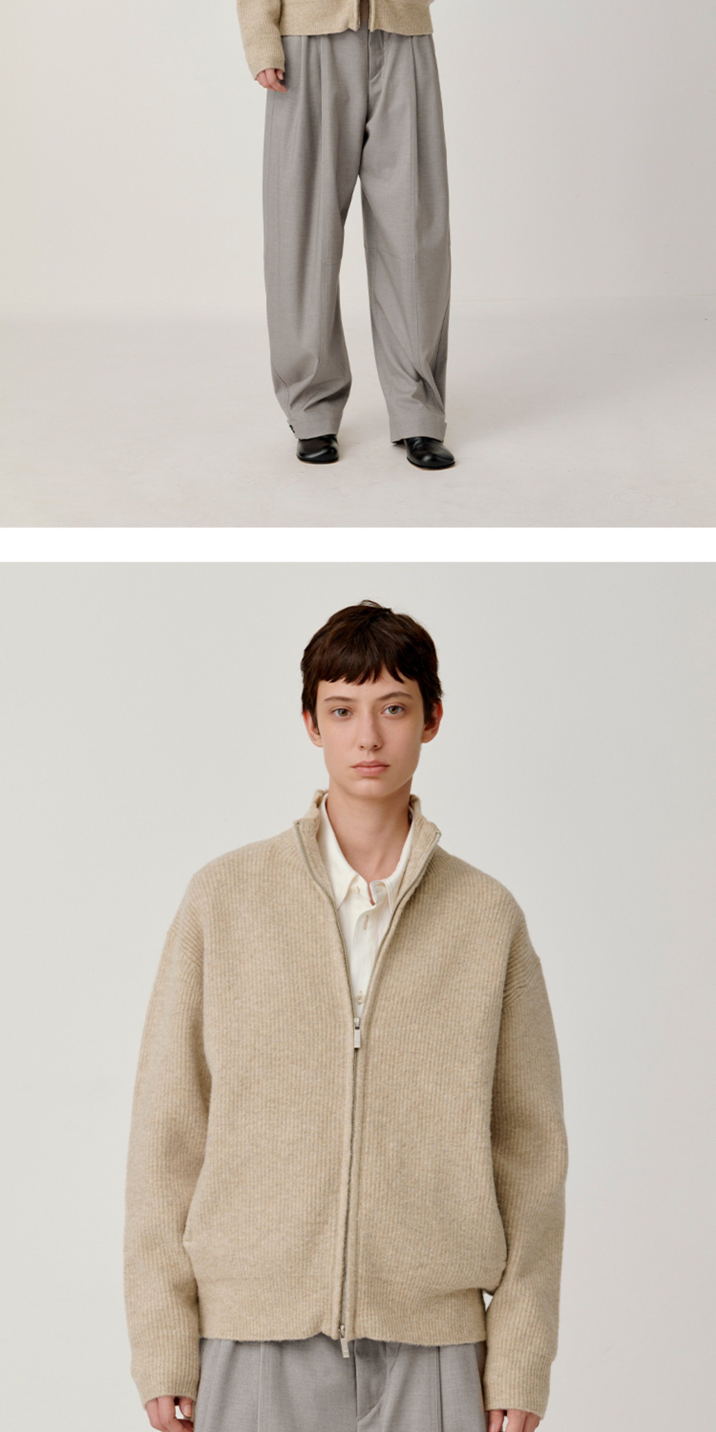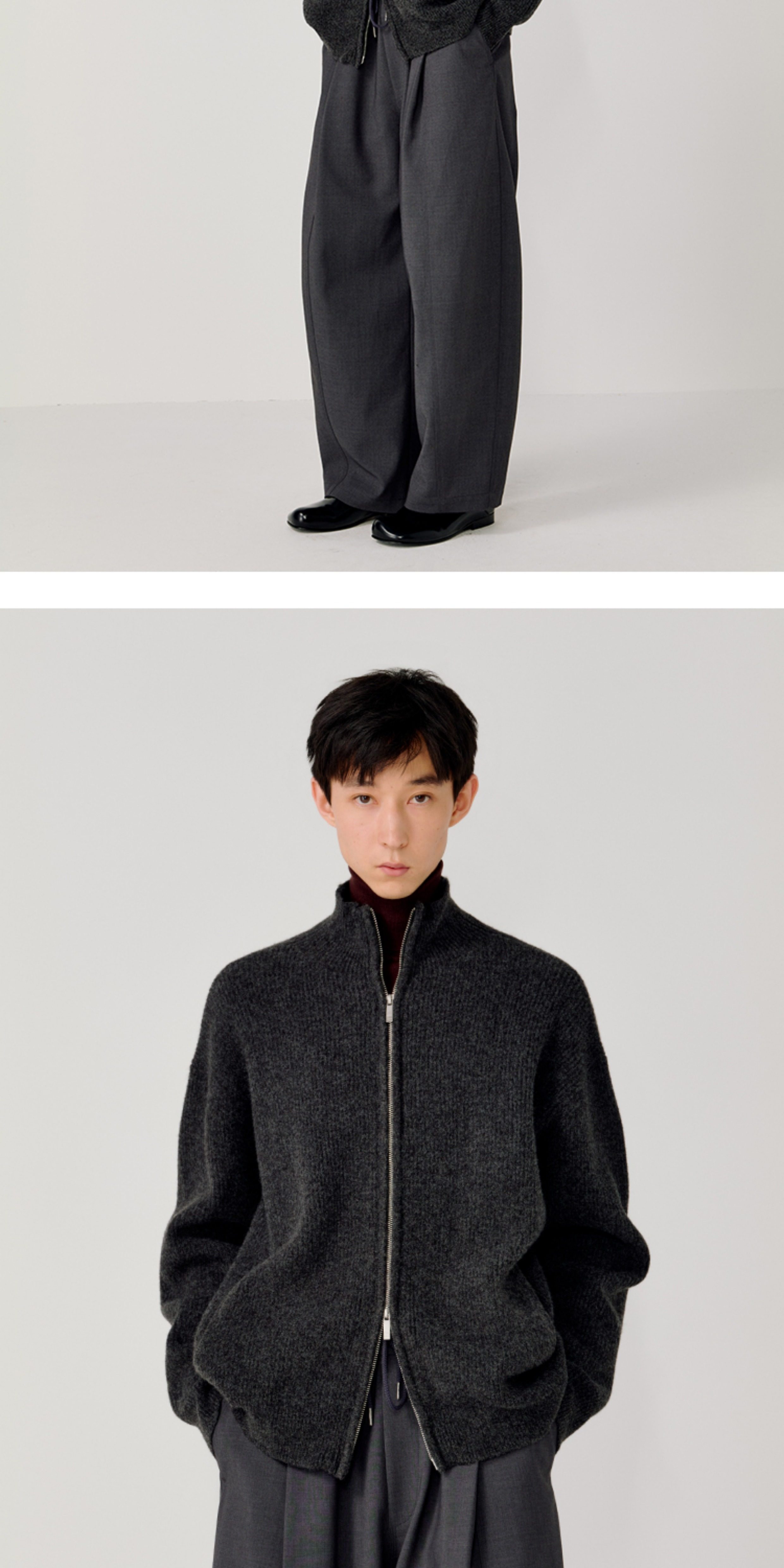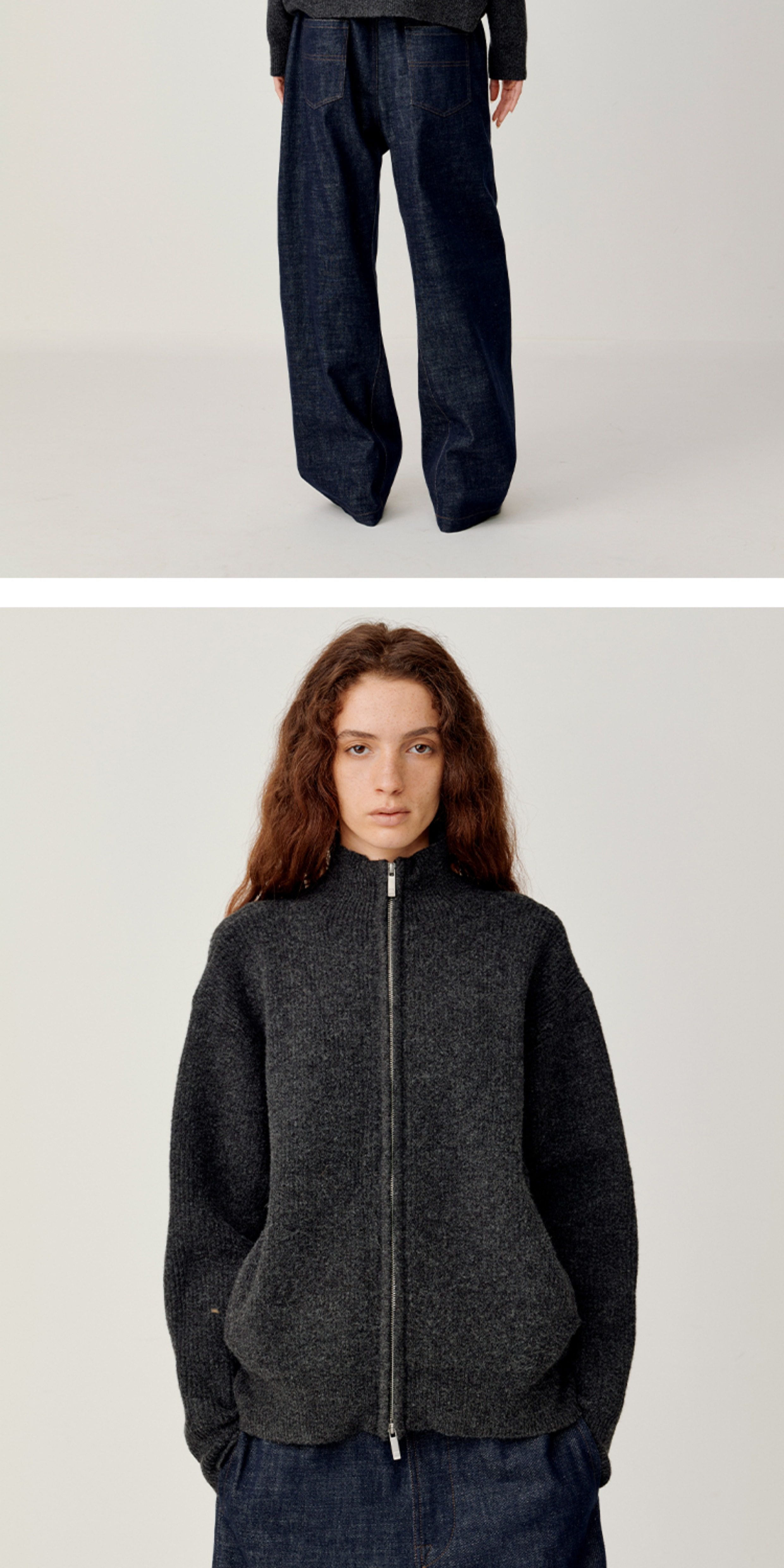 Opicloth/Opic Four-Color Stand-Up Collar Double Zipper Loose Skin-Friendly Basic Casual Long-Sleeve Cardigan Sweater Jacket