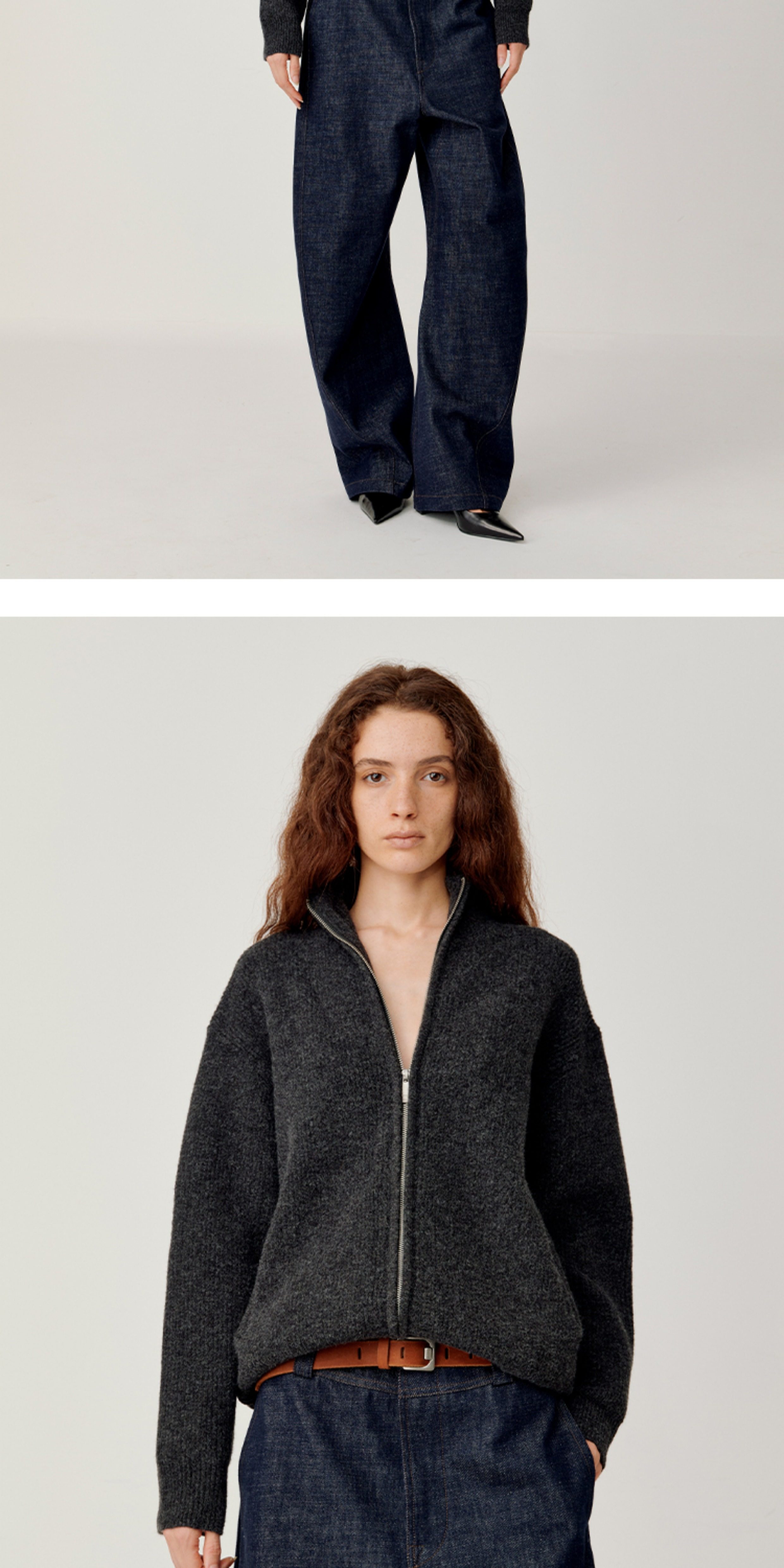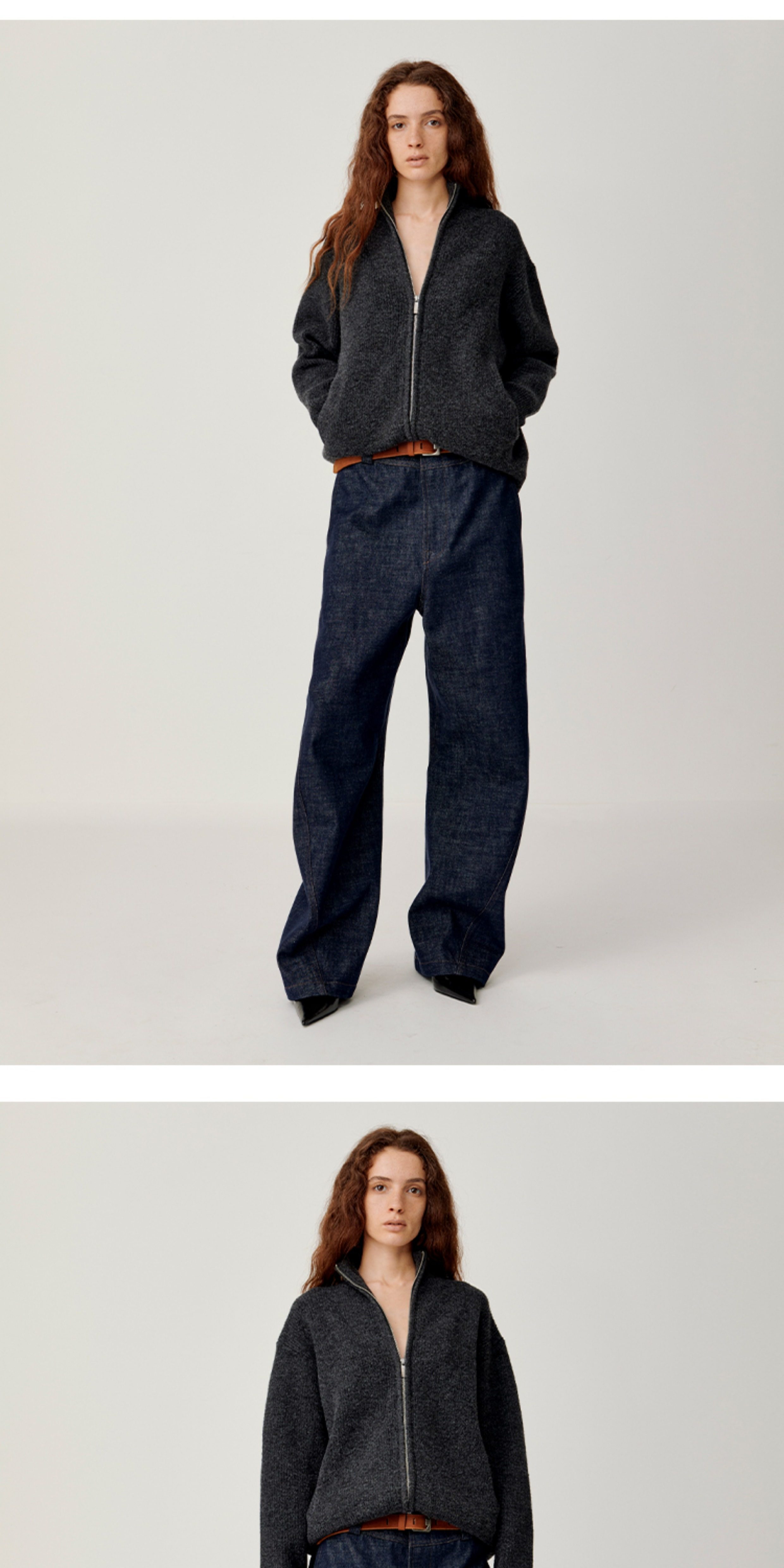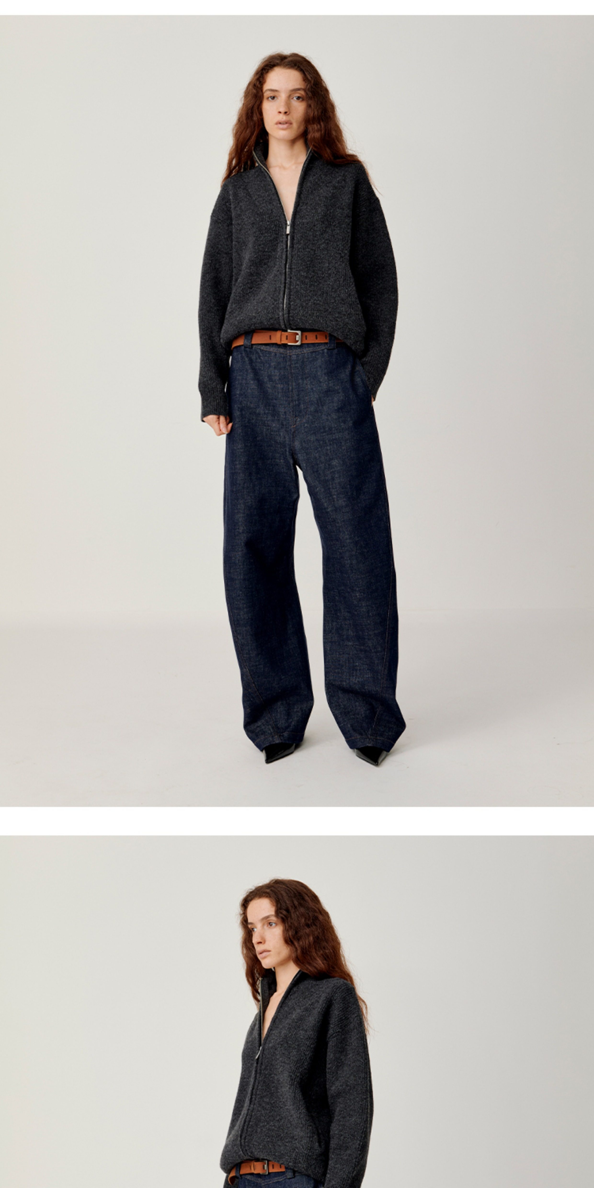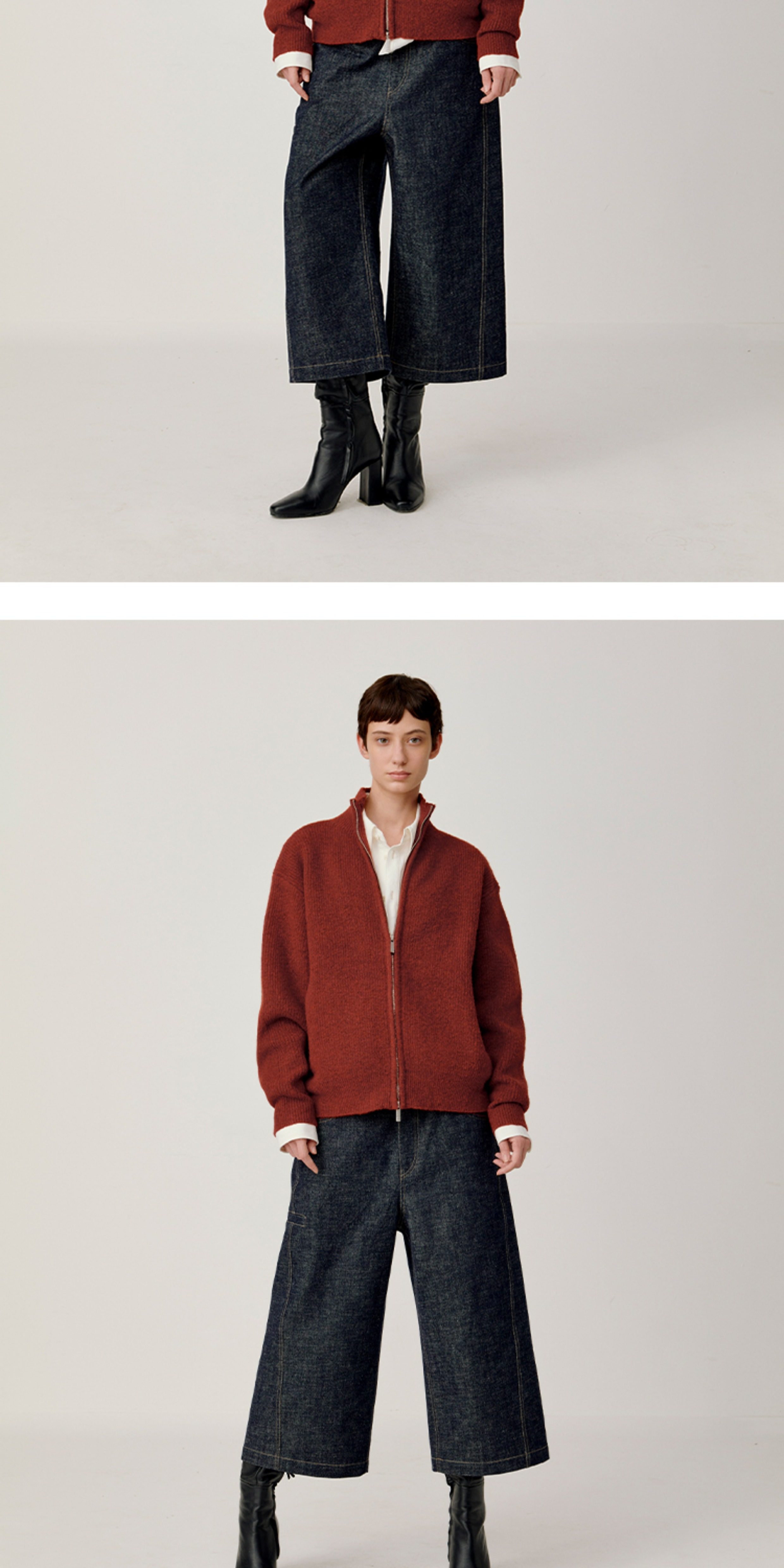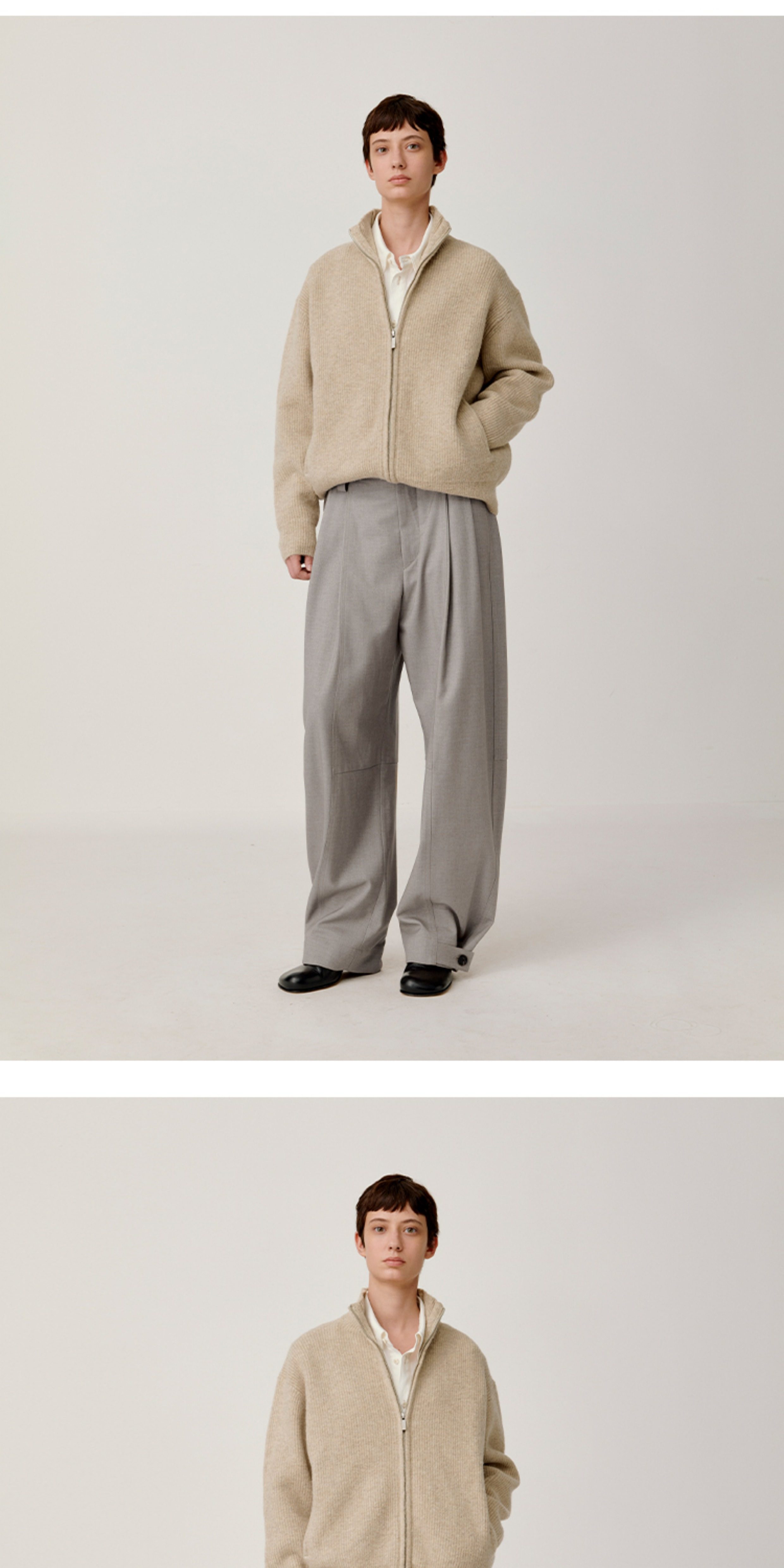 Opicloth/Opic Four-Color Stand-Up Collar Double Zipper Loose Skin-Friendly Basic Casual Long-Sleeve Cardigan Sweater Jacket