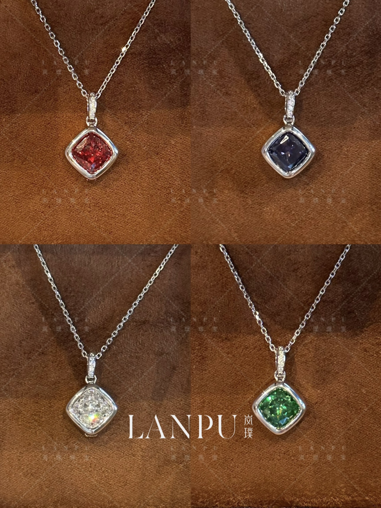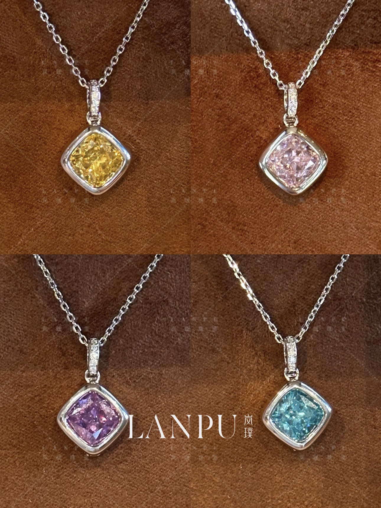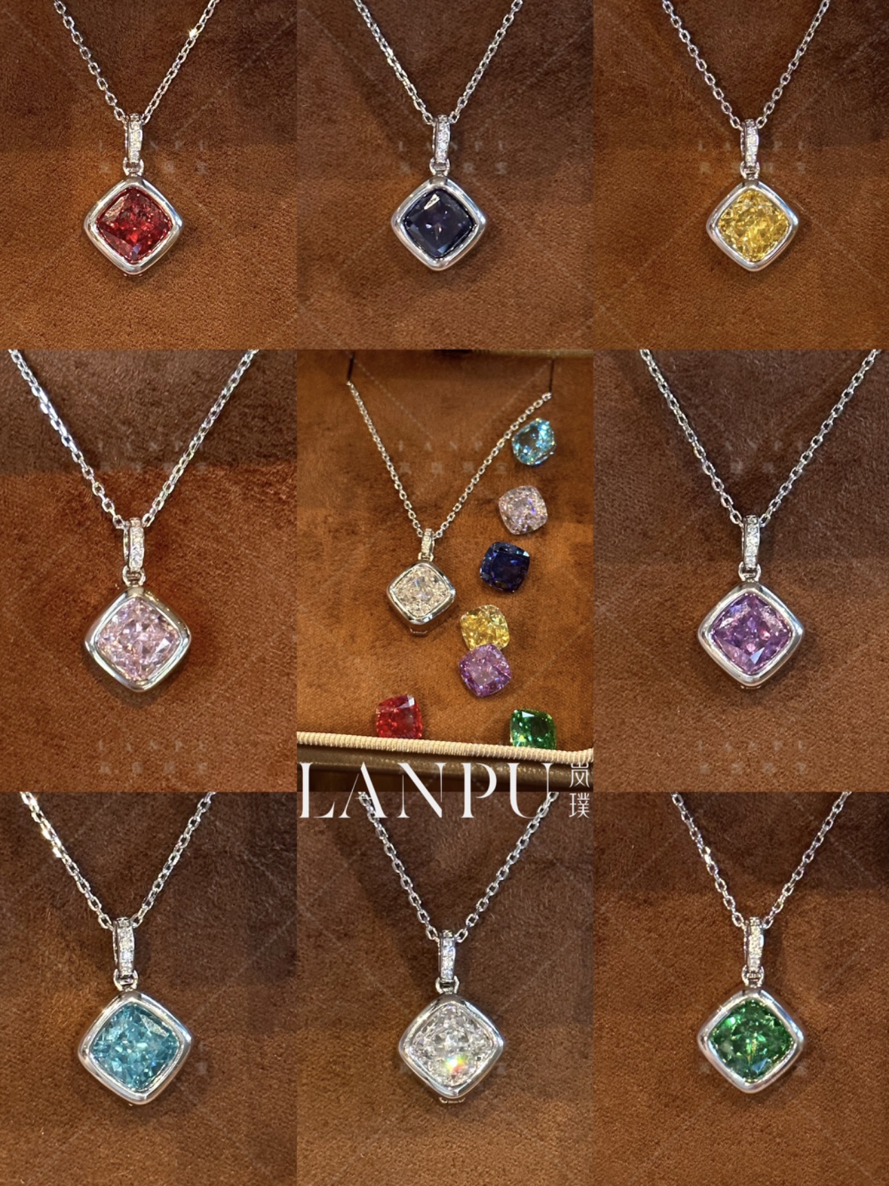 A Necklace with Eight Interchangeable Stones | Weekly Color Change, 3-Carat Pillow-Shaped Square Diamond Necklace, 925 Silver Gold-Plated, Non-Fading