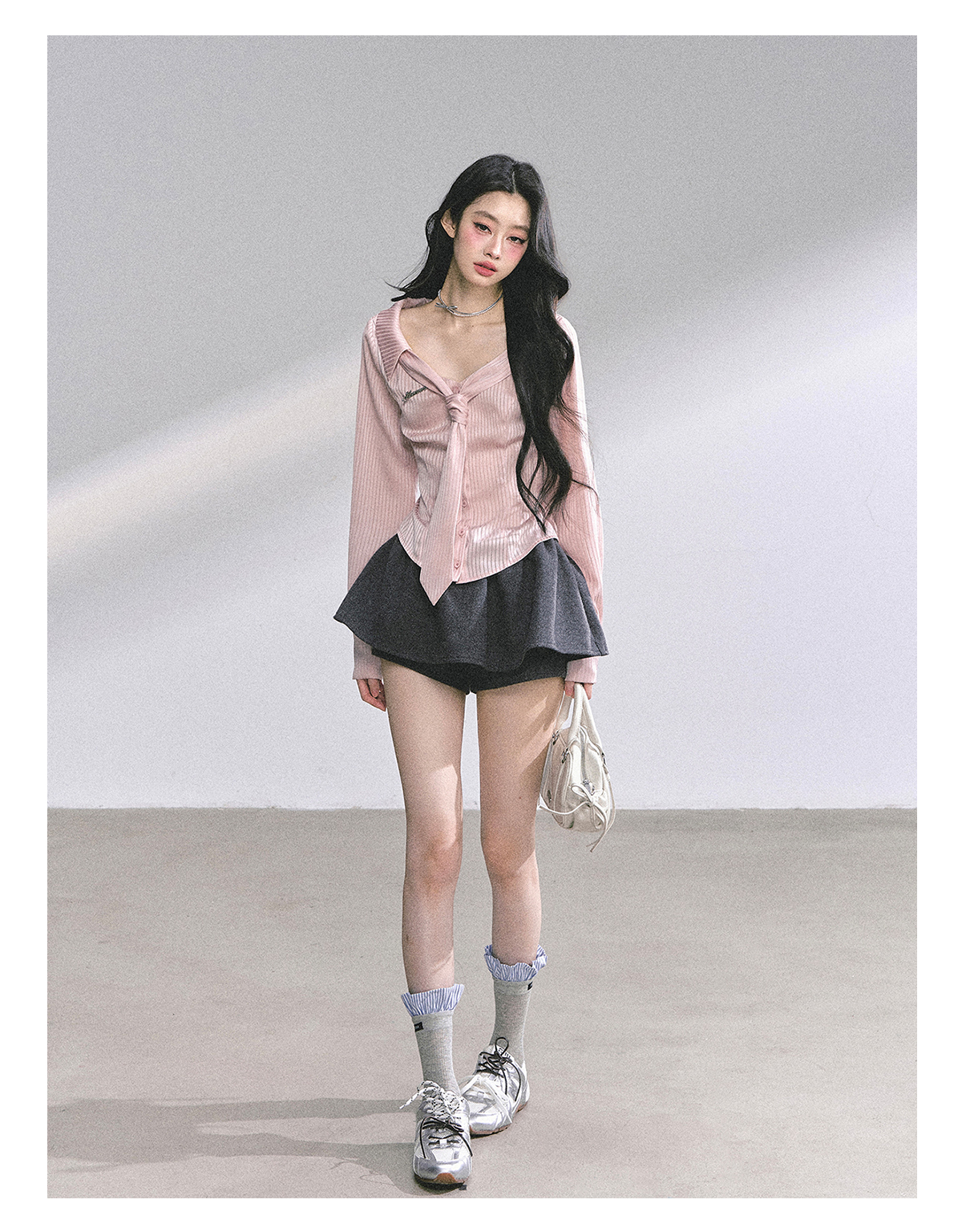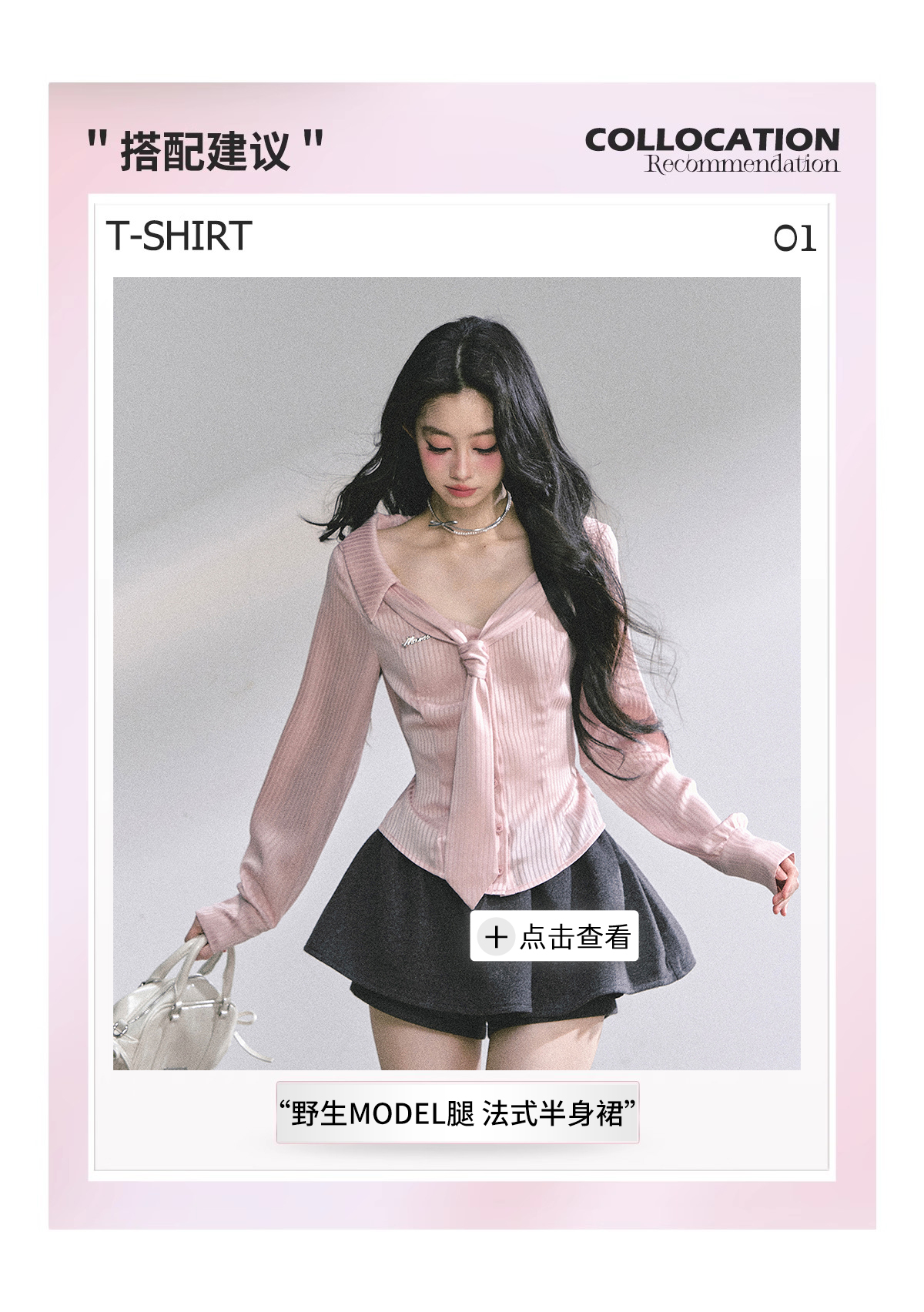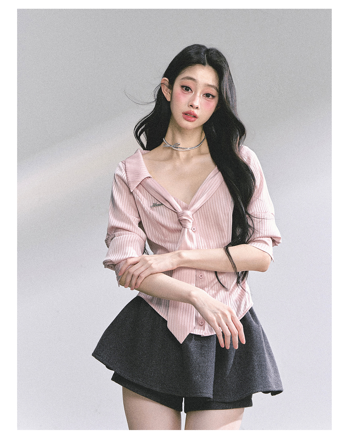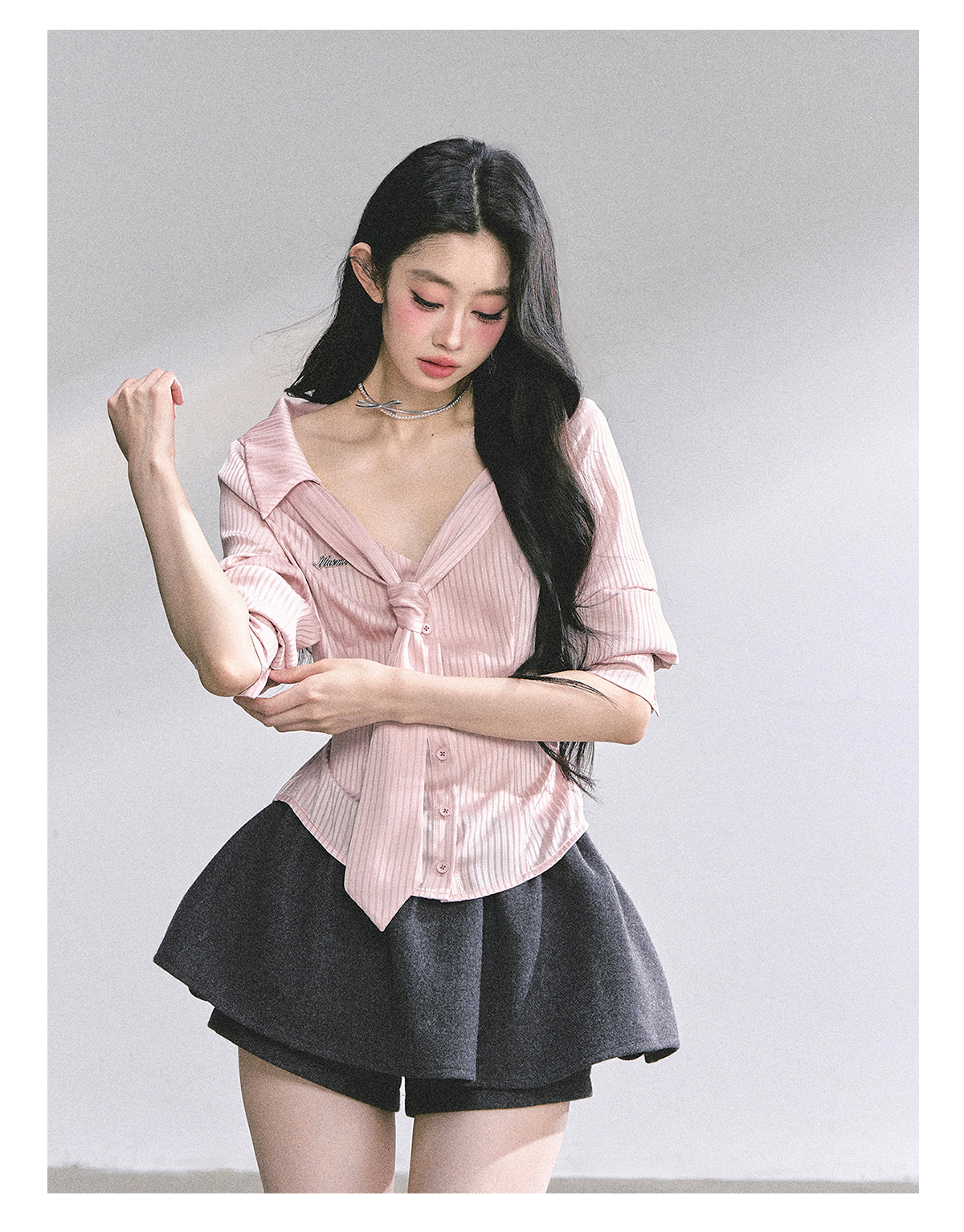 Shao Ye Yankou College % High-End French-Style Polo Collar Striped Shirt for Women, Autumn Waist-Cinching Slimming Sweet Top