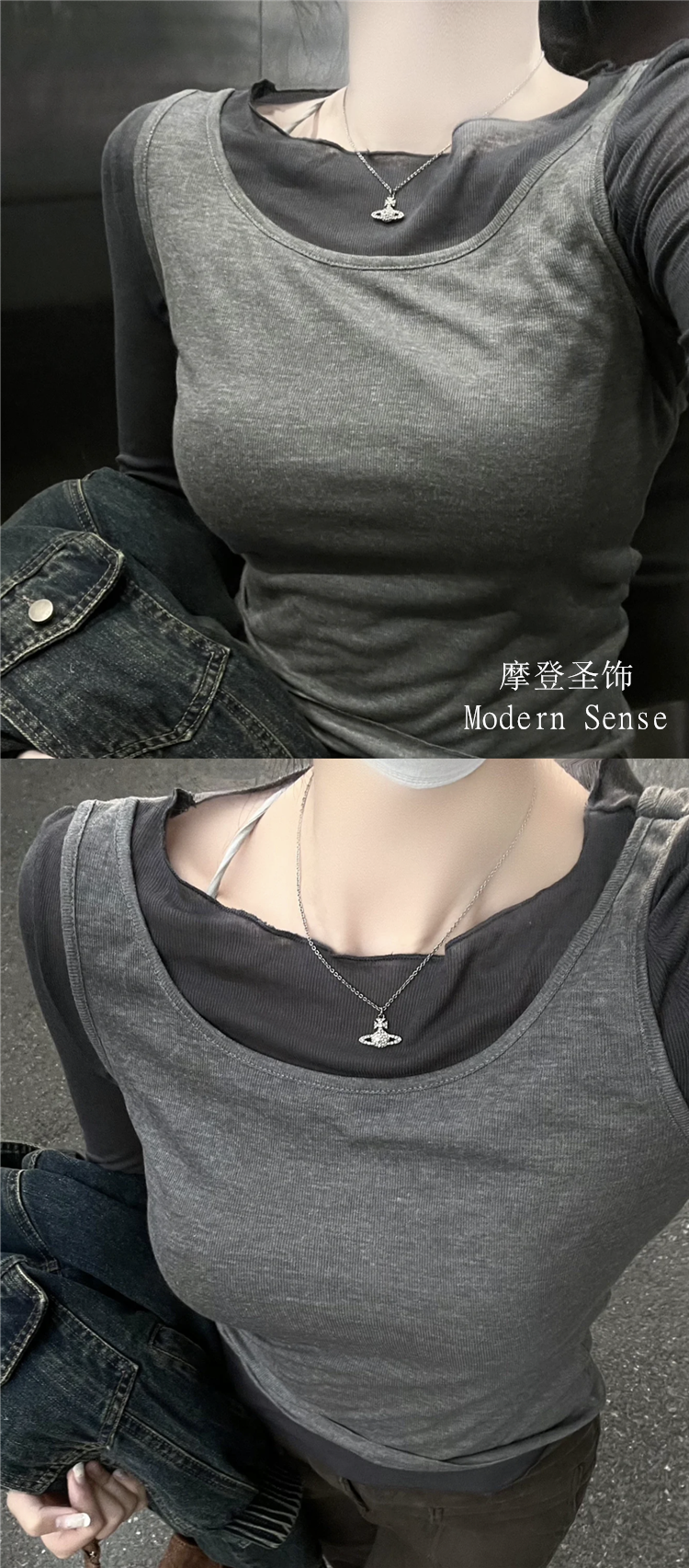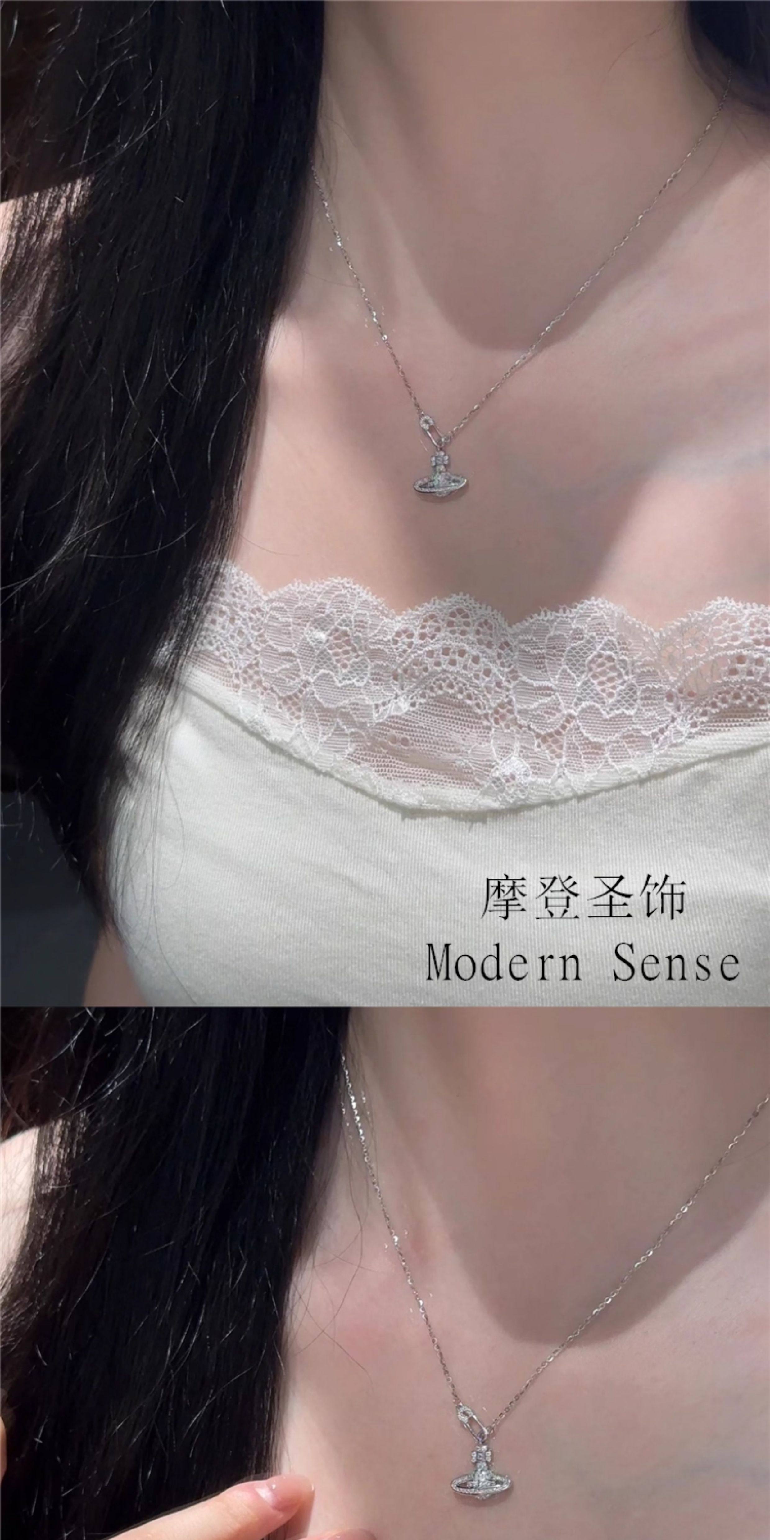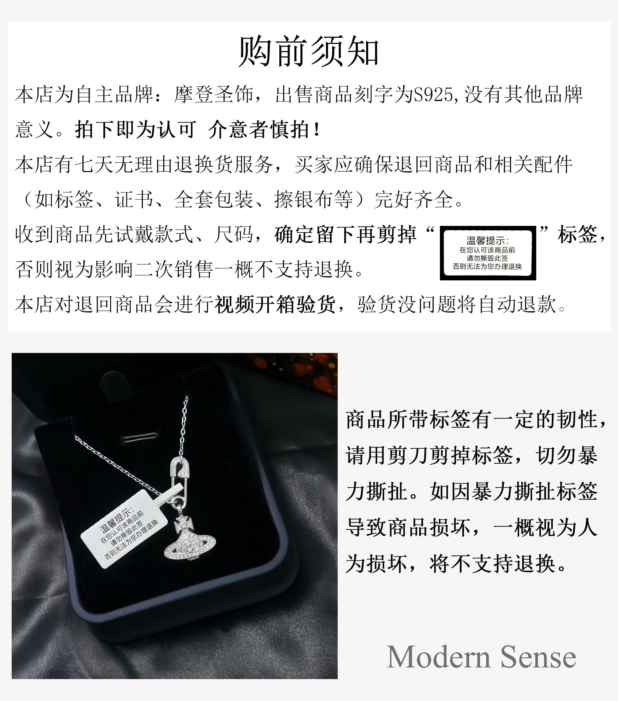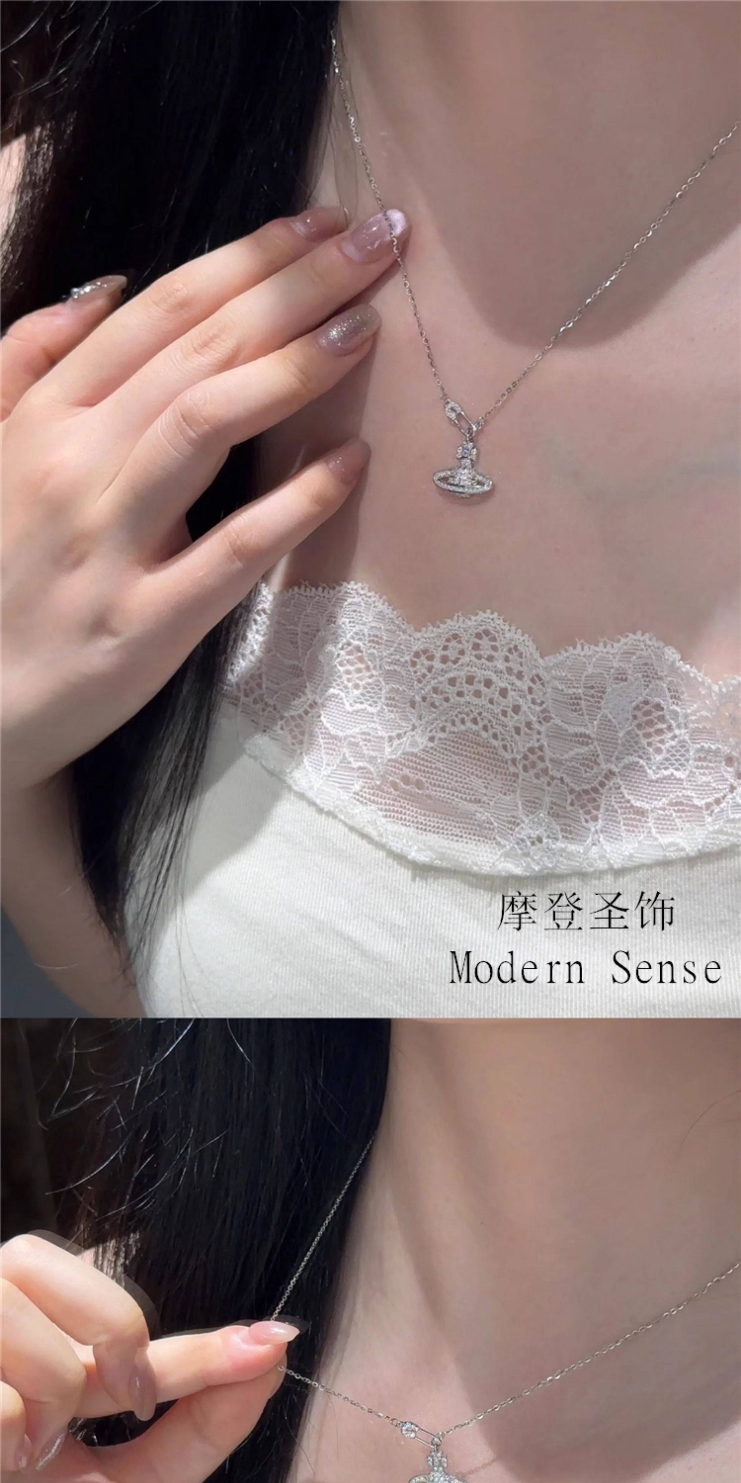 Modern Jewelry S925 Sterling Silver Saturn Pin Full Diamond Necklace Women's Clavicle Chain Valentine's Day Birthday Gift for Best Friend