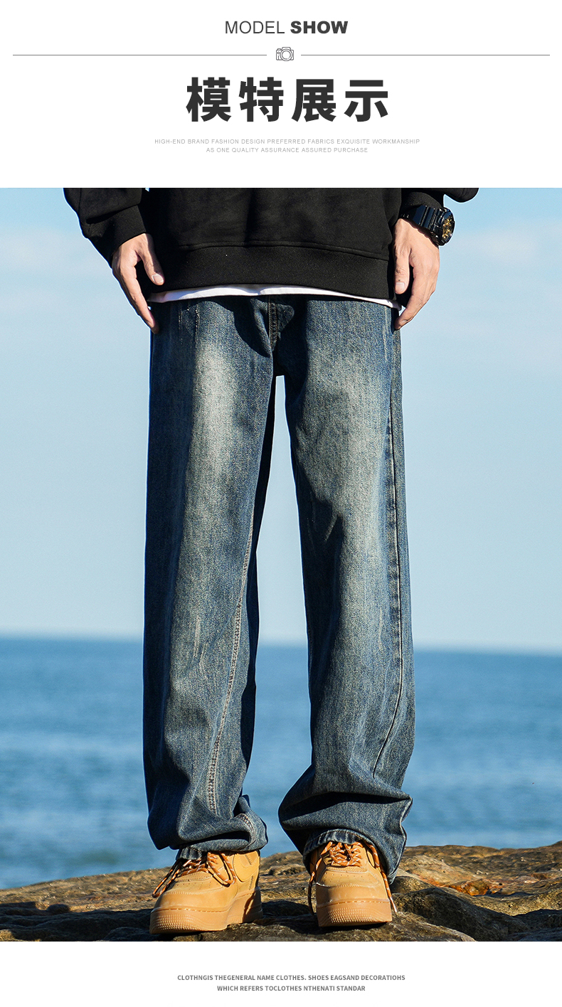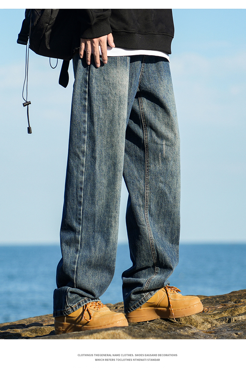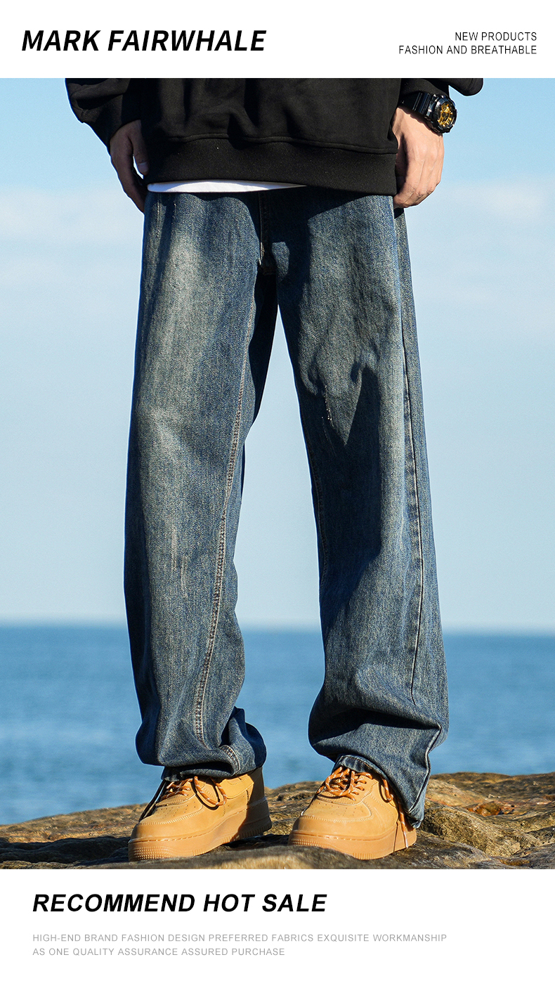 Mark Hua Fei Men's Jeans 2025 Autumn and Winter New Loose Fit Fleece-Lined Thickened American-Style Straight Long Pants for Men