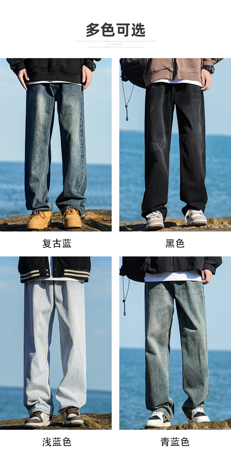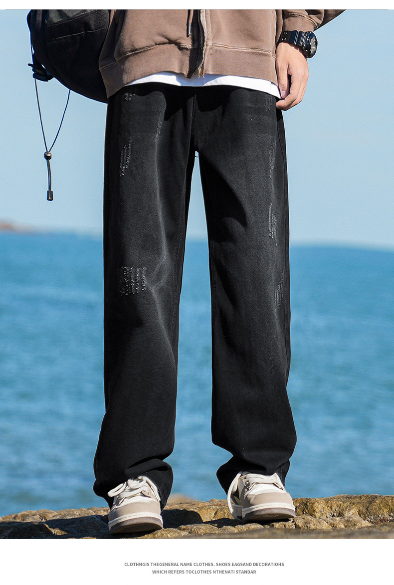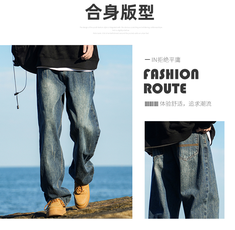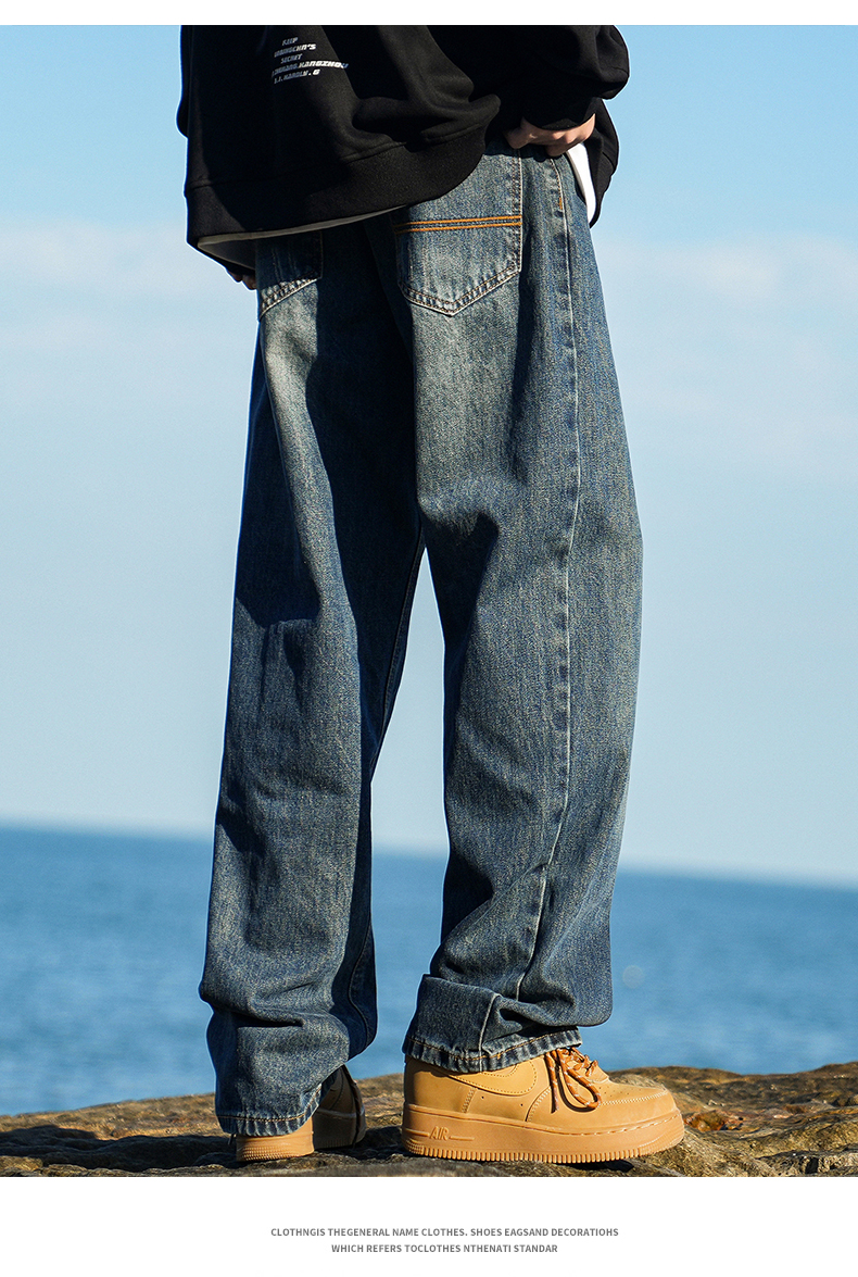 Mark Hua Fei Men's Jeans 2025 Autumn and Winter New Loose Fit Fleece-Lined Thickened American-Style Straight Long Pants for Men