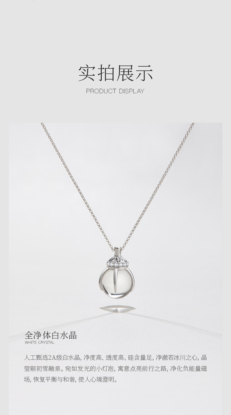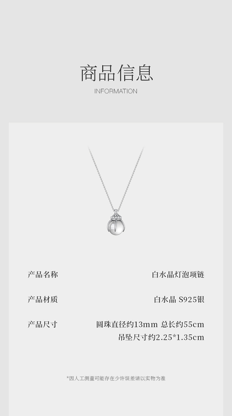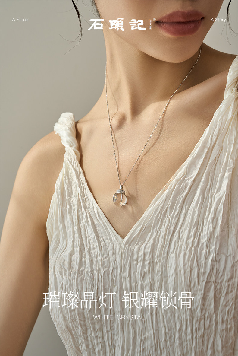 iSTONE Small Light Bulb Necklaces, High-End, Light Luxury, Simple and Versatile, Sterling Silver Natural White Crystal Pendant