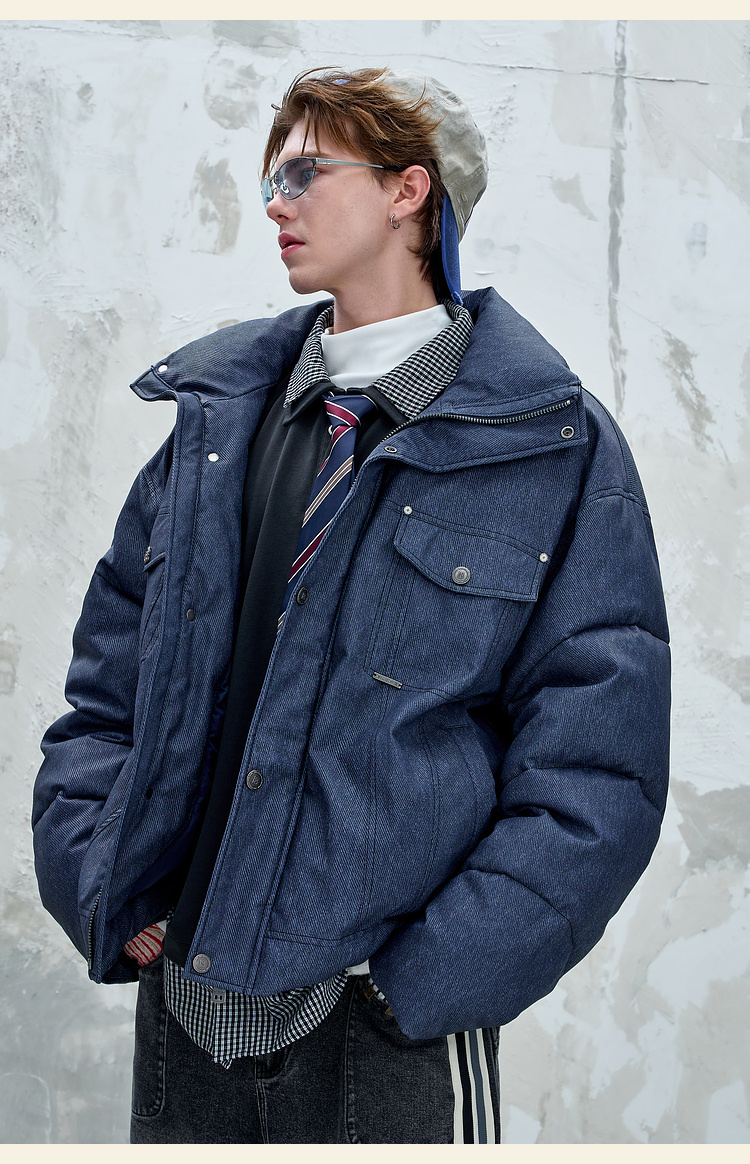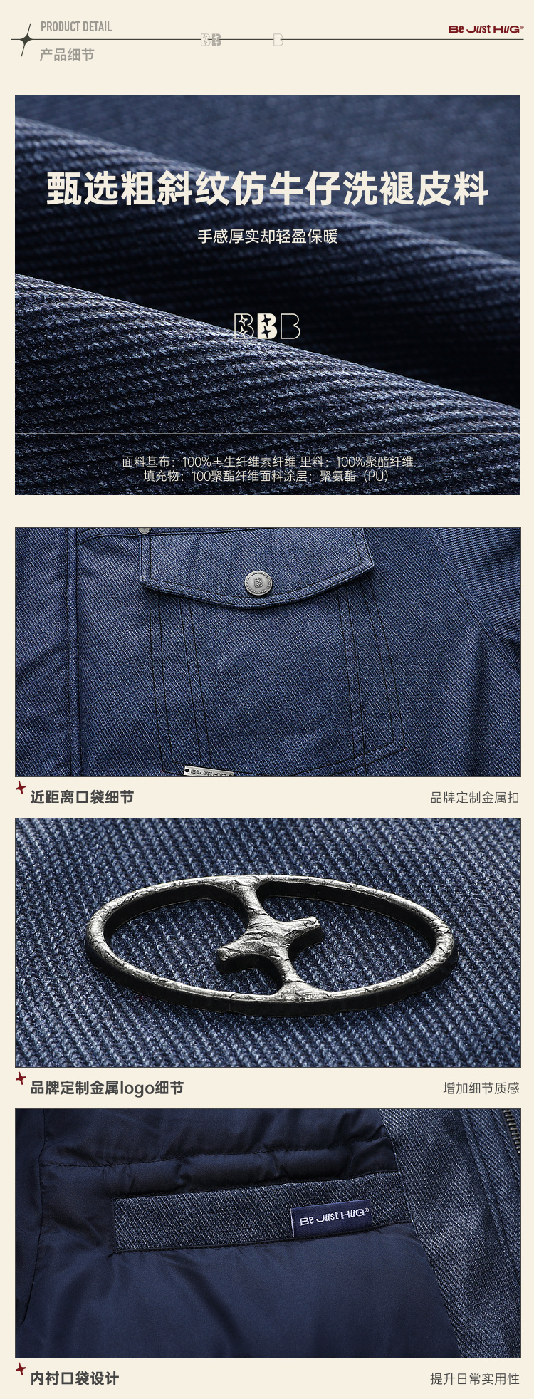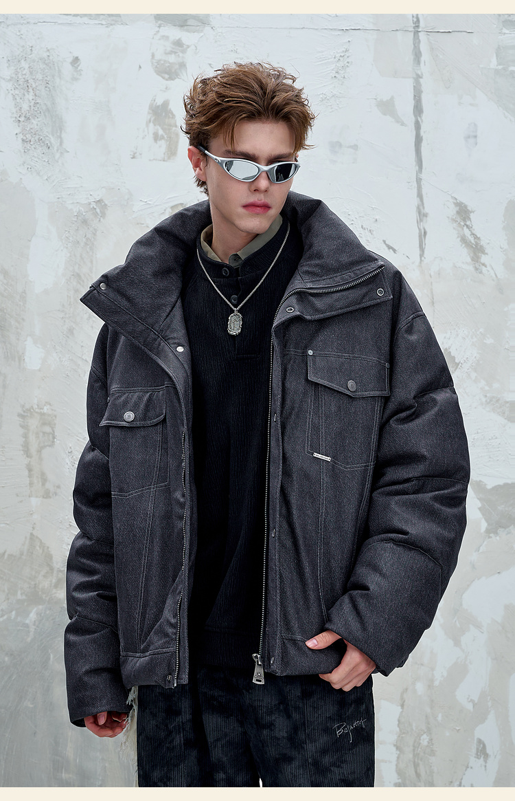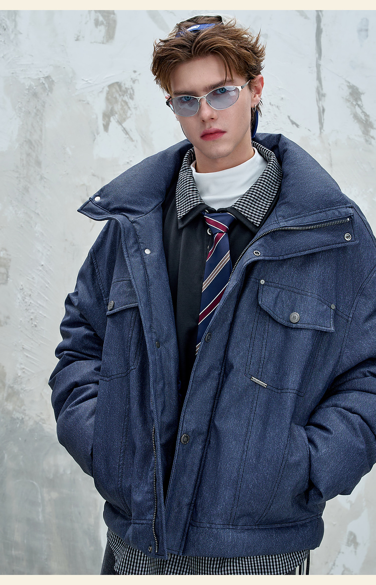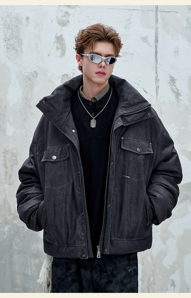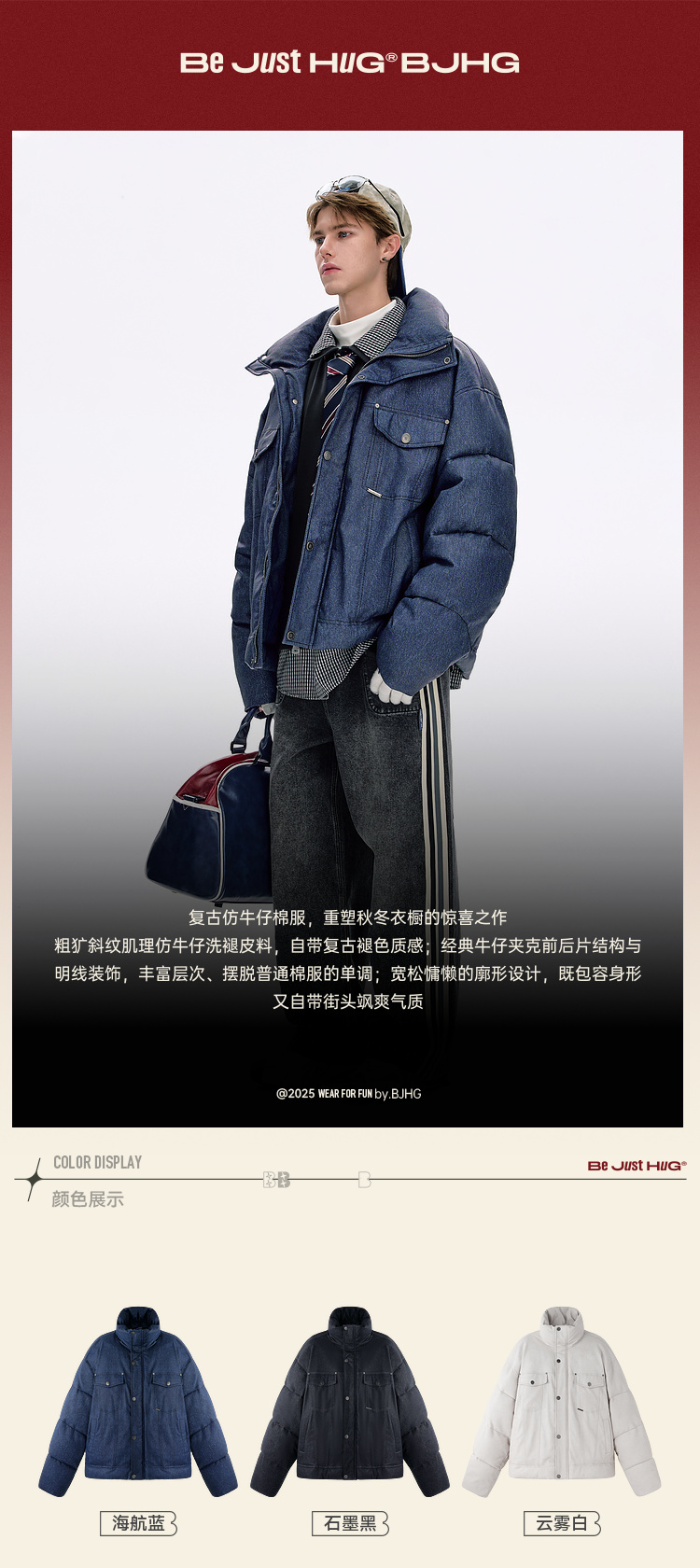 Bjhg Reckless Workwear Jacket Cotton Coat Men's Winter American-Style Faux Denim Cotton Jacket Pu Leather Cotton-Padded Jacket Men's