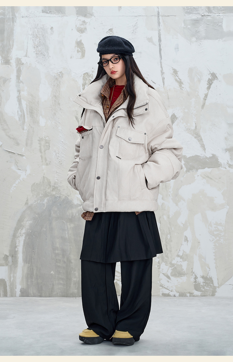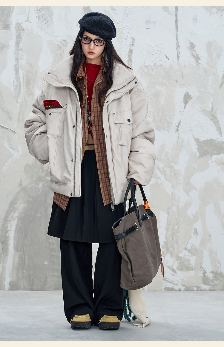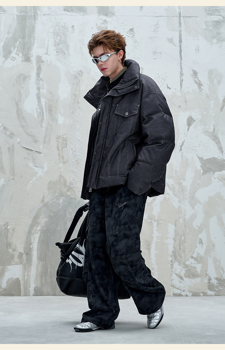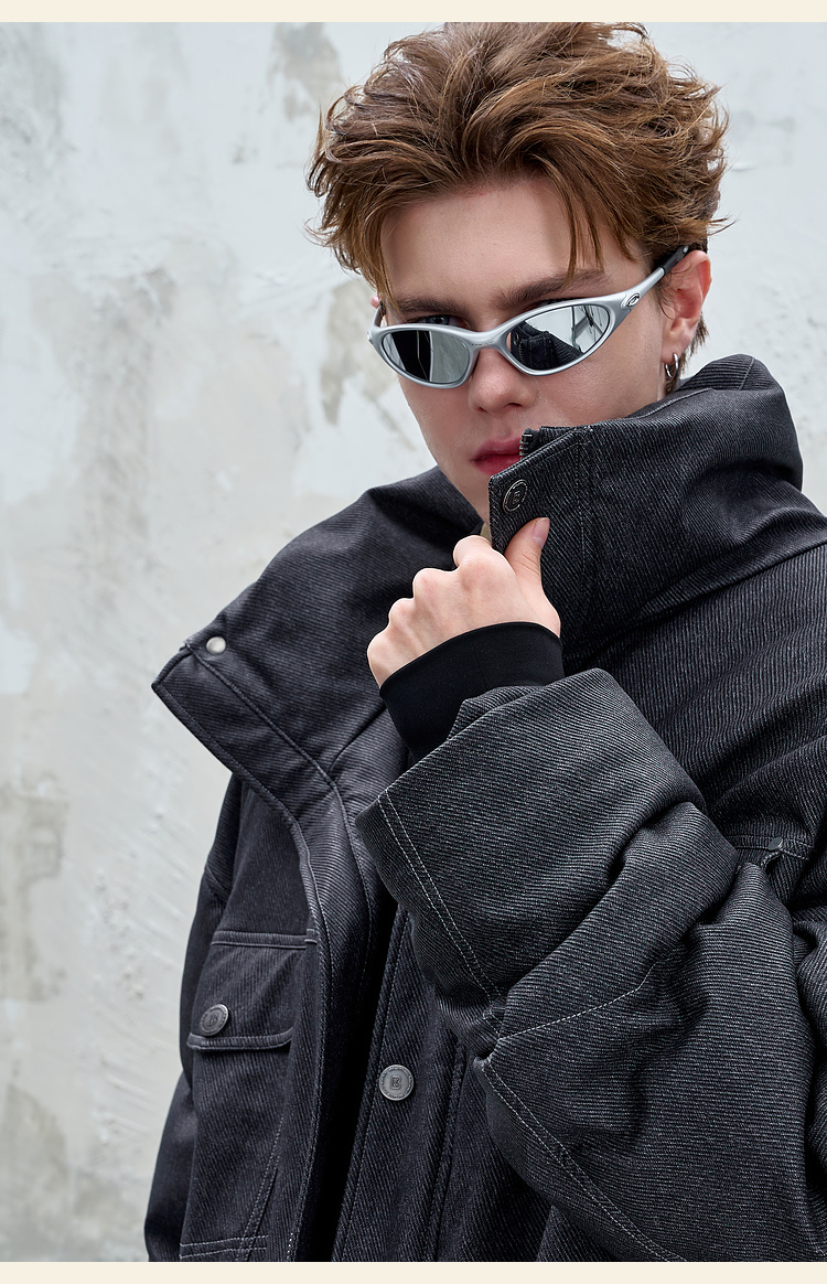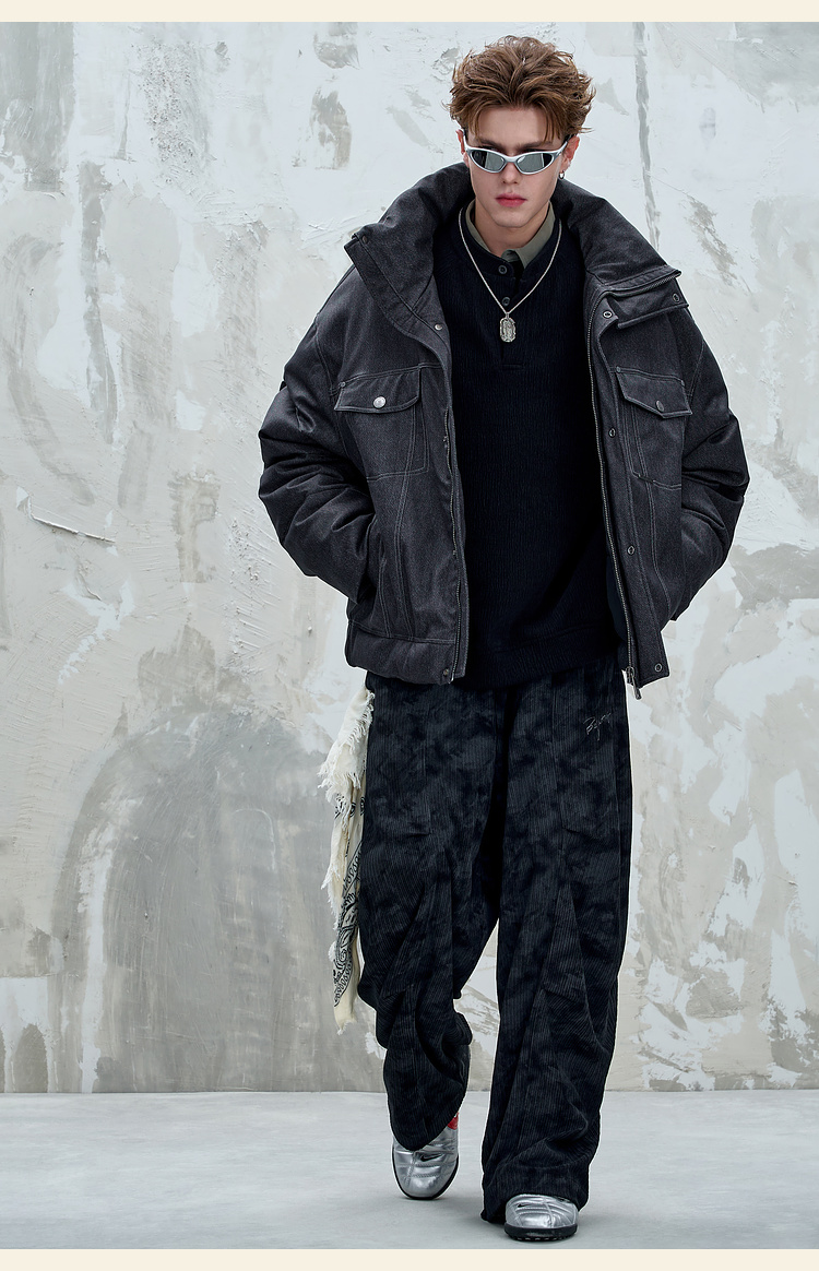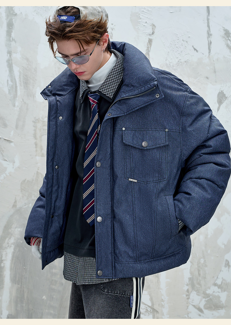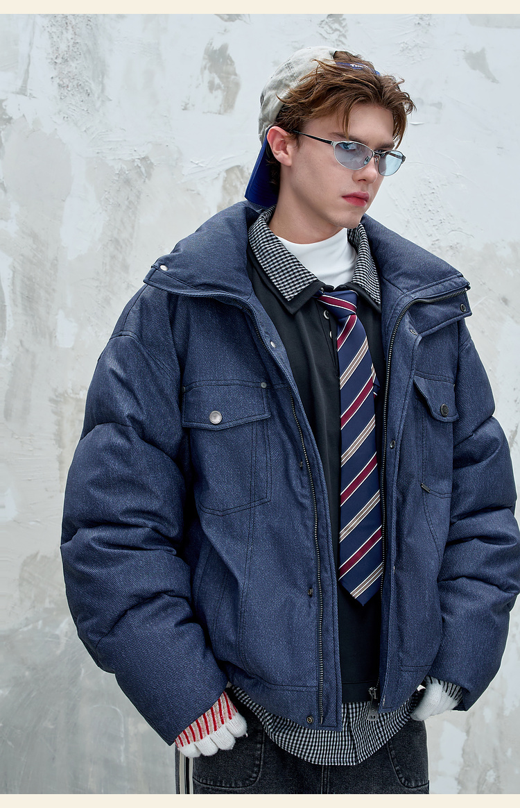 Bjhg Reckless Workwear Jacket Cotton Coat Men's Winter American-Style Faux Denim Cotton Jacket Pu Leather Cotton-Padded Jacket Men's