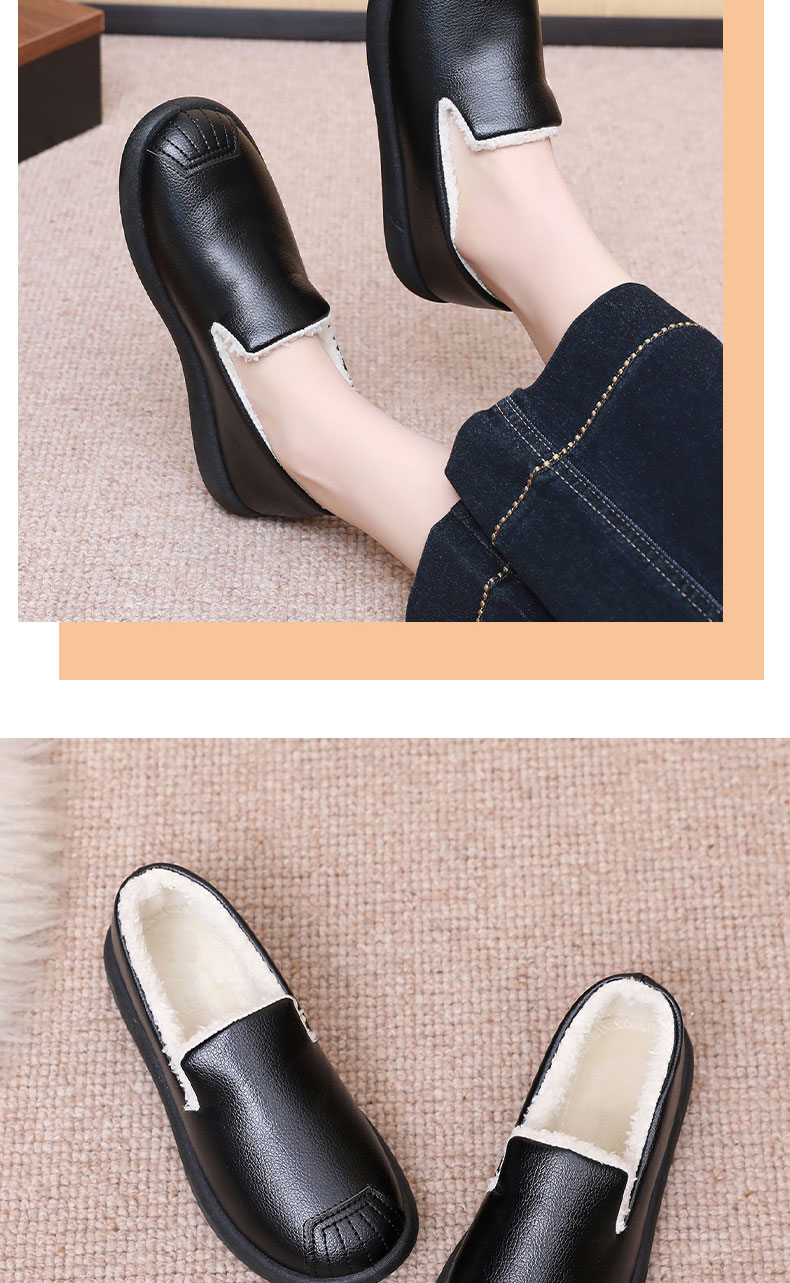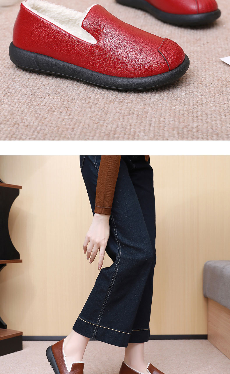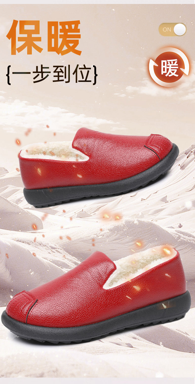 Cotton Slippers for Women, Indoor and Outdoor Winter Slippers for Mothers, Home Thick-Soled Warm Pu Surface Waterproof Slippers for Middle-Aged and Elderly People