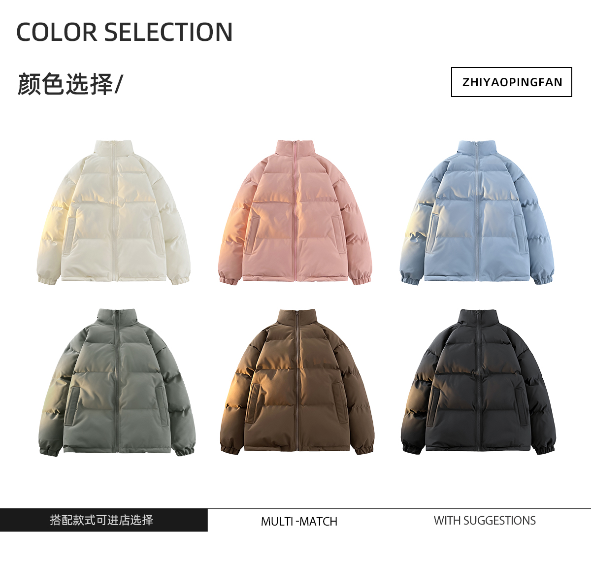 As long as ordinary 2025 winter New arrival men and women pure color Casual Fashion cotton-padded jacket stand collar Fleece-lined thickened bread clothing Outwear
